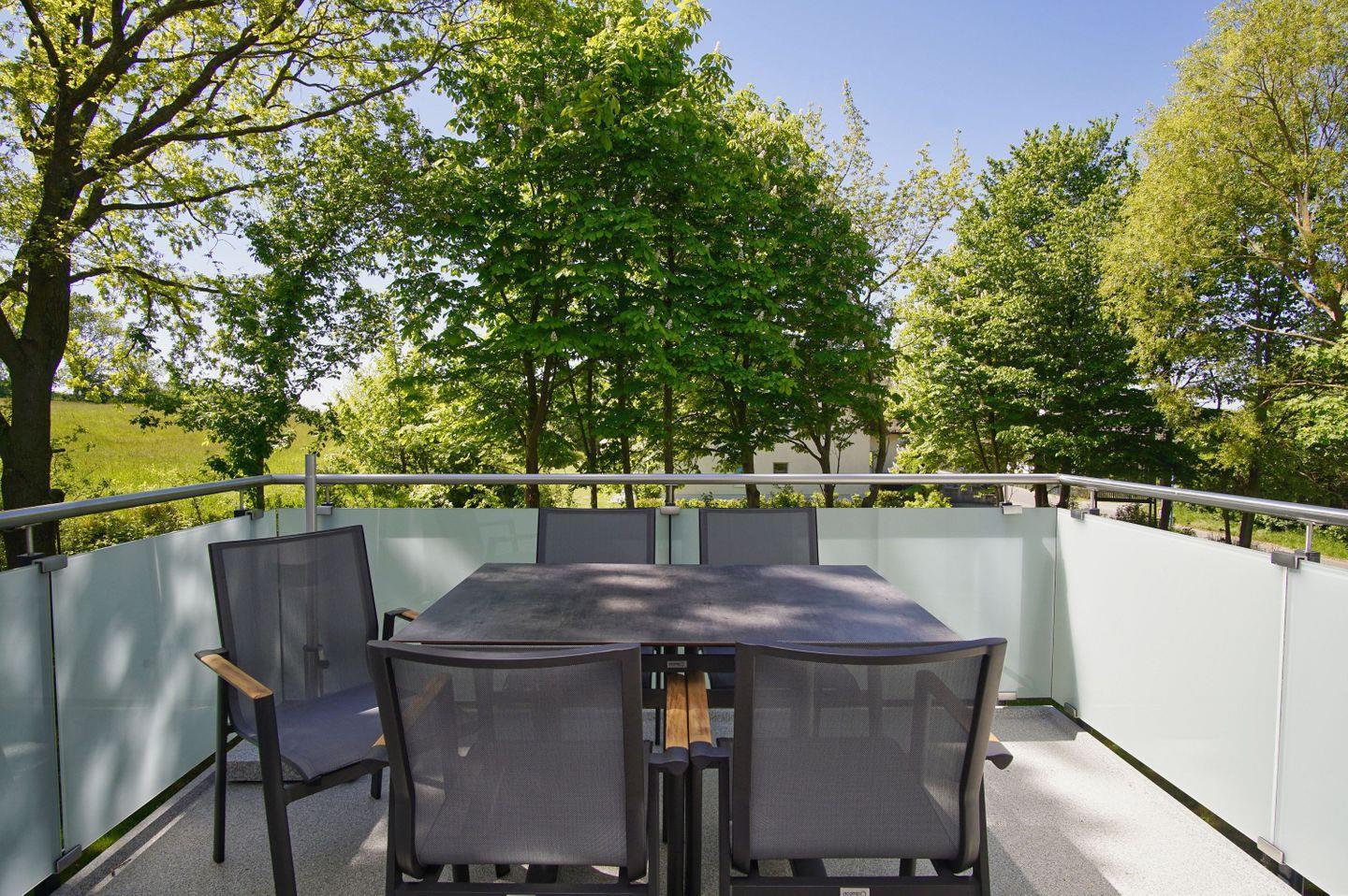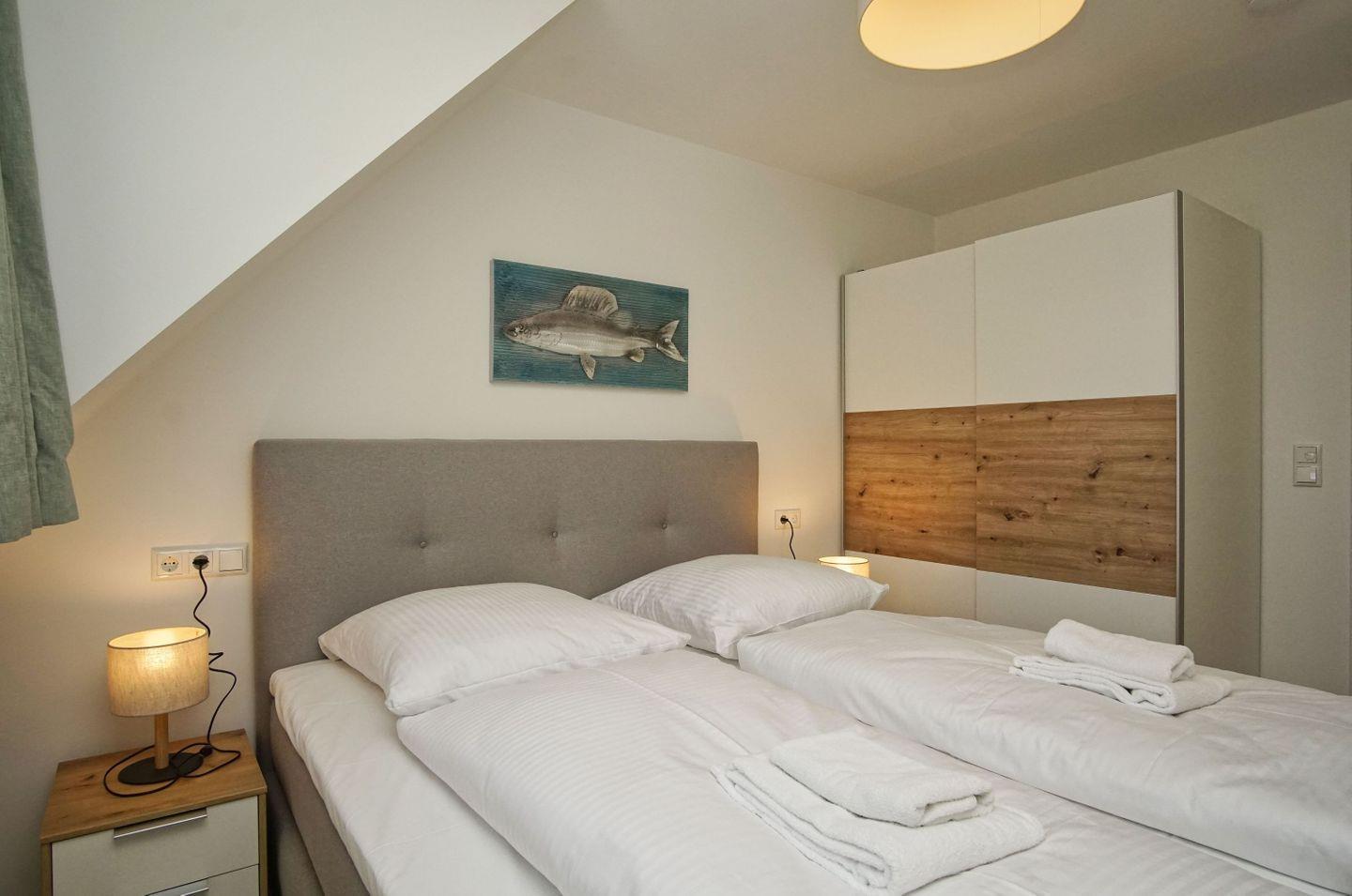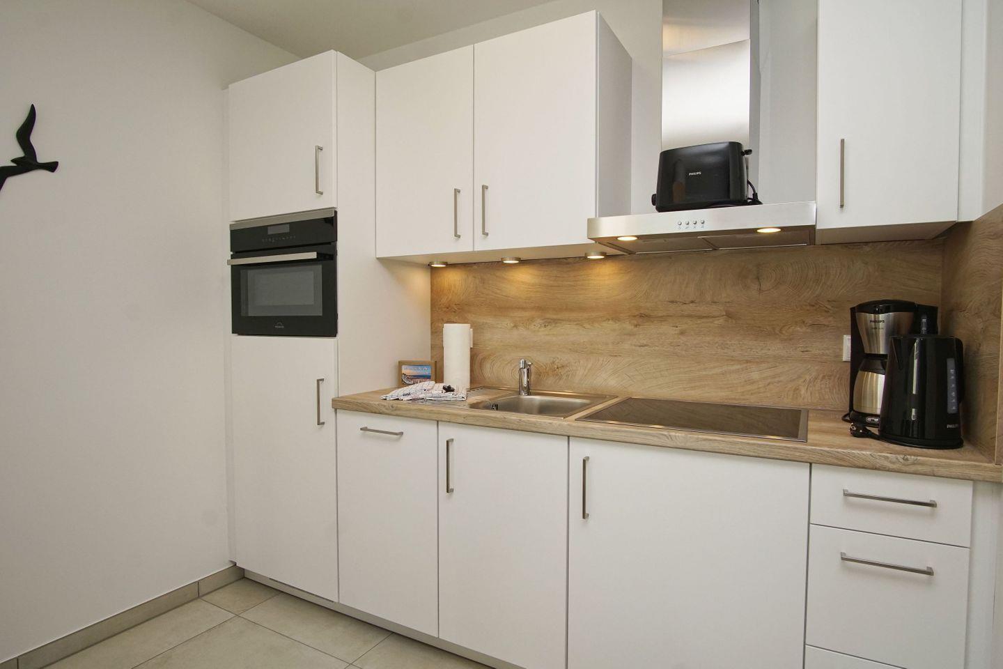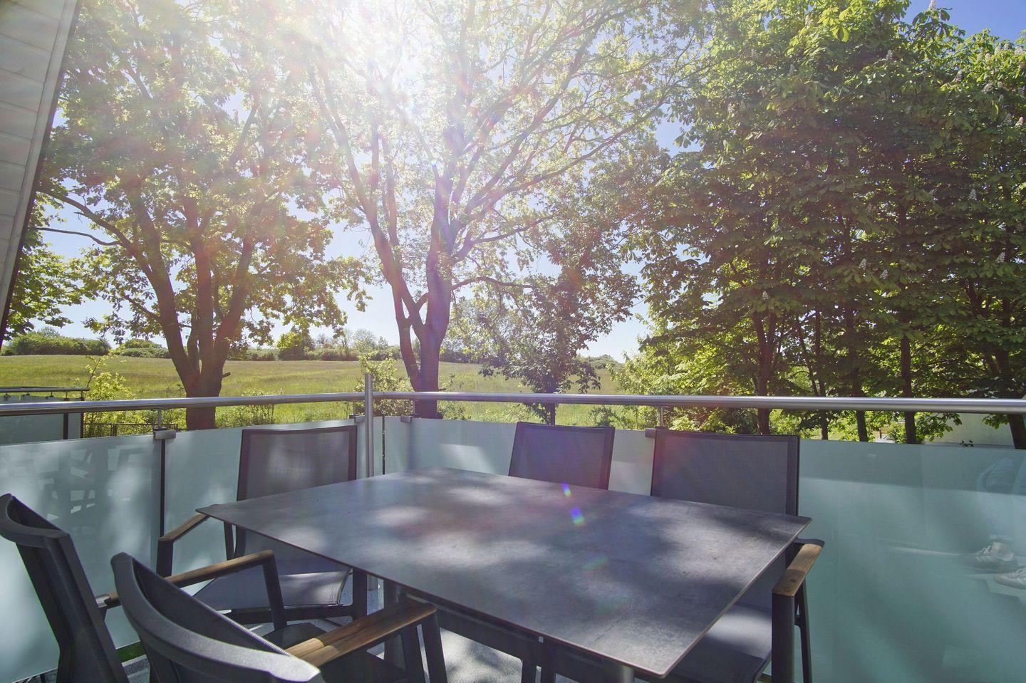 Moderne strandnahe Ferienwohnung mit Balkon und kostenfreiem Zugang zu Schwimmbad und Sauna.