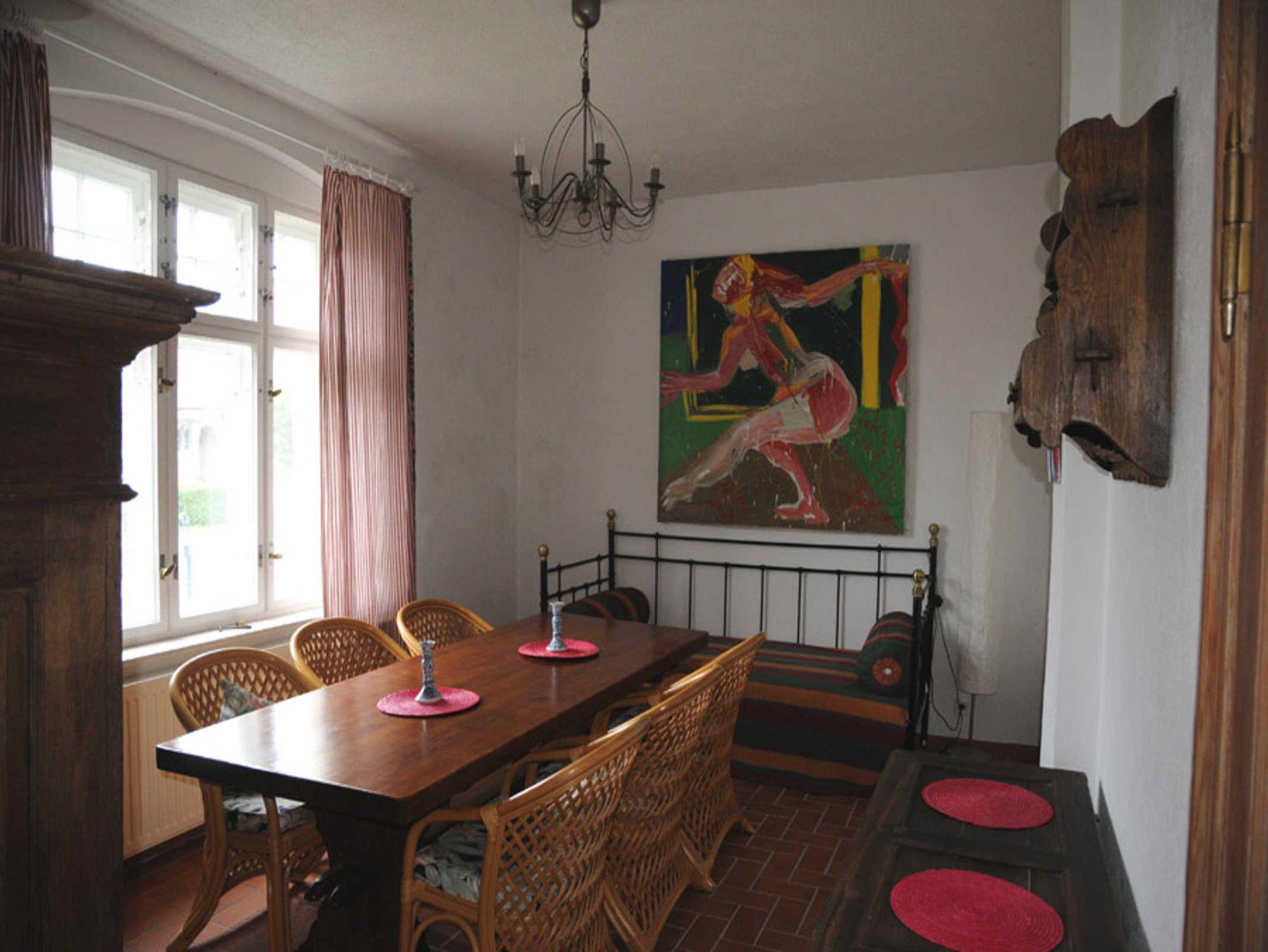 Ferienwohnung mit viel Platz im Haupthaus. Diese großzügig und stilvoll eingerichtete Fewo verfügt u. a. über einen Flur, hochwertig ausgestatteter Küche (Ceranfeld, Backofen, Kühl-/Gefrierkombi)) mit Sitzmöglichkeit für 3 Personen, ein Wohnzimmer mit großem Esstisch und Schlafmöglichkeit im Einzelbett. Die Veranda mit zwei Ledersofas und Spieltisch ist beheizbar und beliebter Treffpunkt. Zwei Schlafzimmer (1x Doppelbett, 1x Schlafcouch für 2 Personen). WLAN.