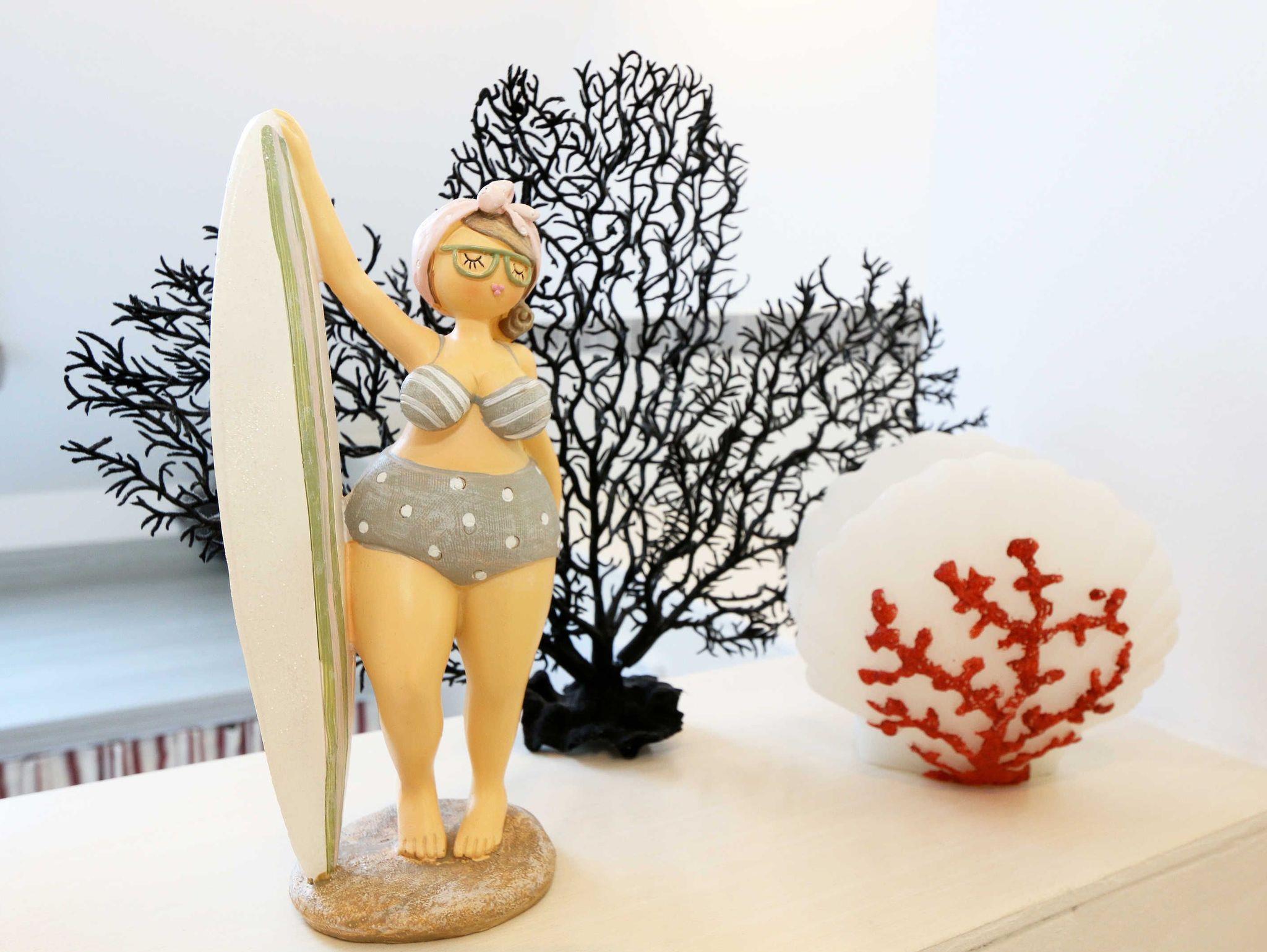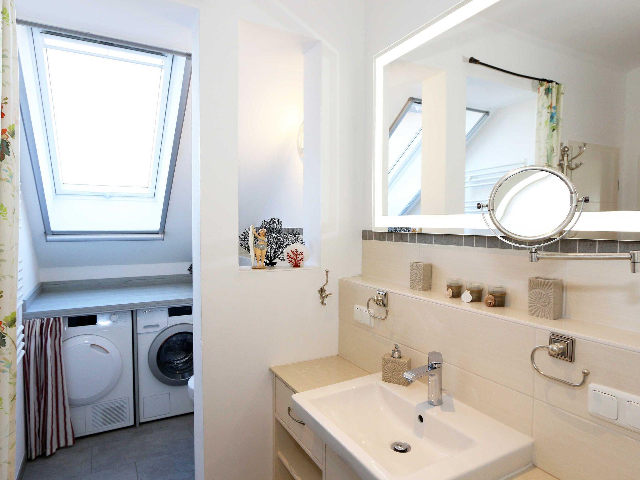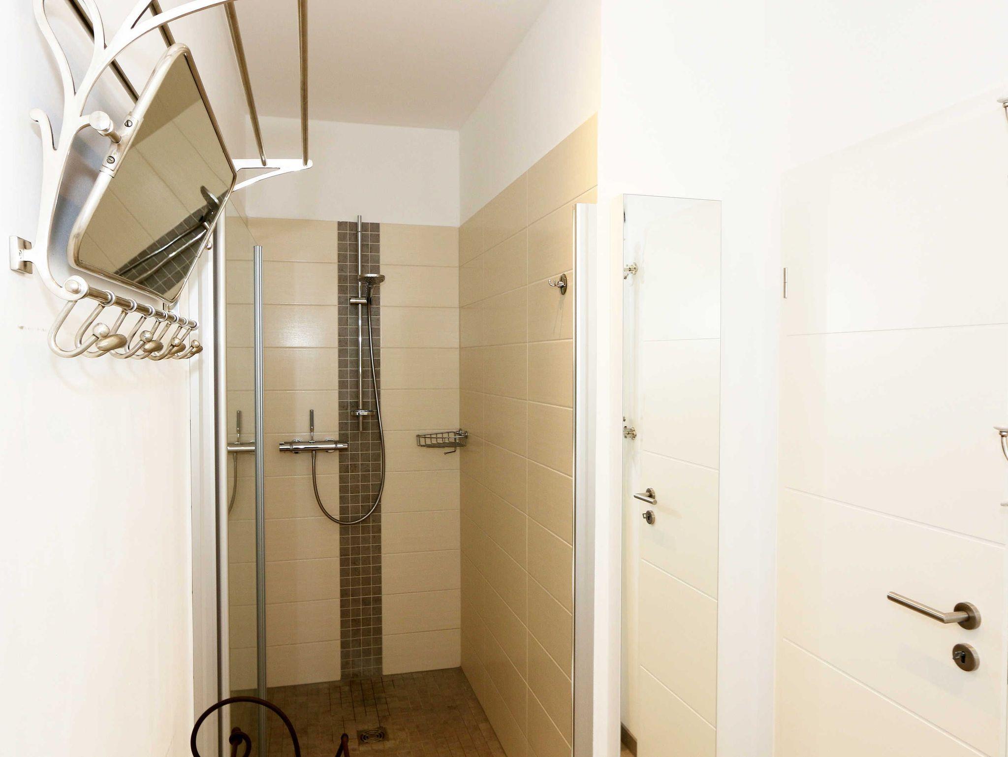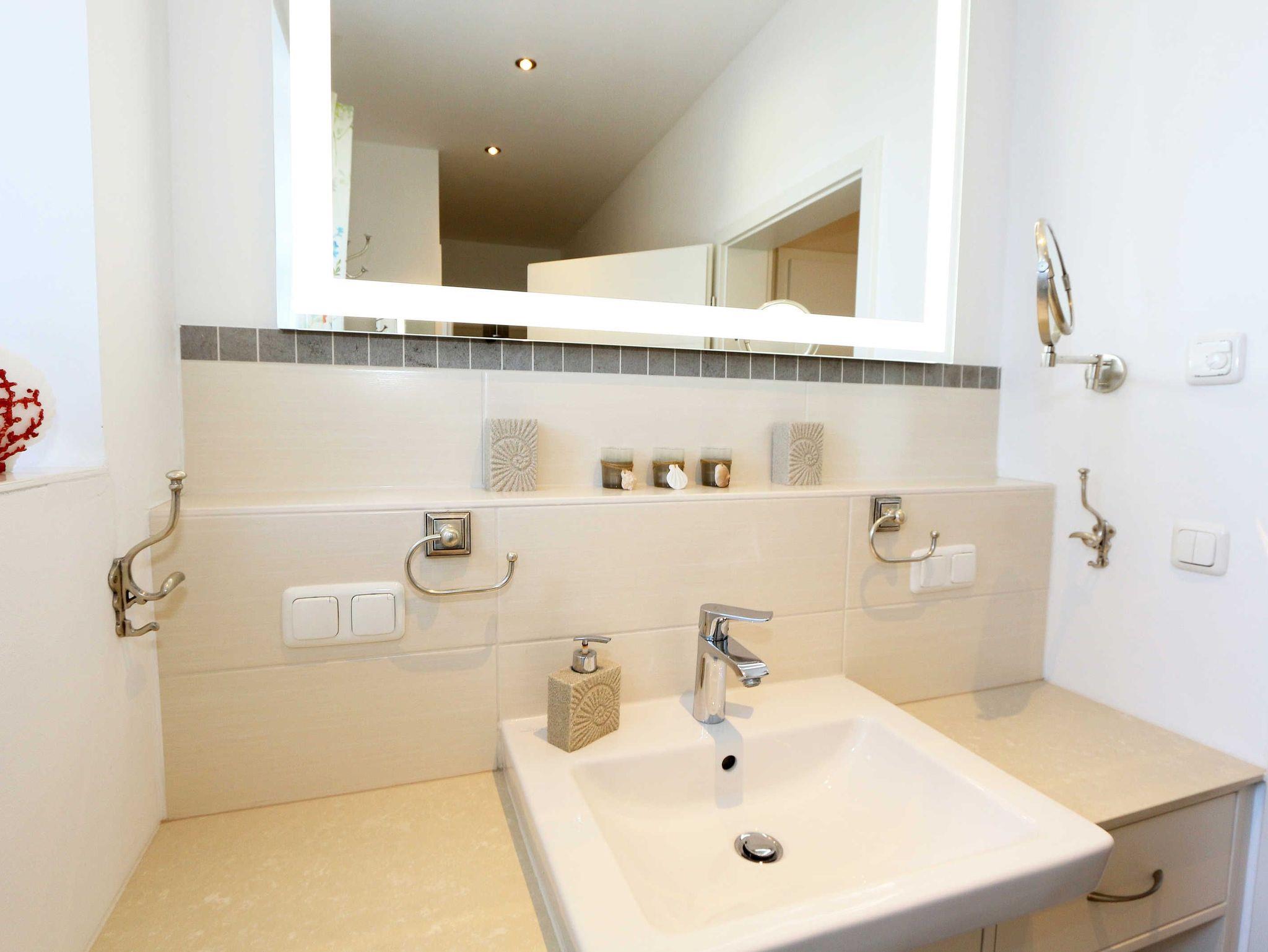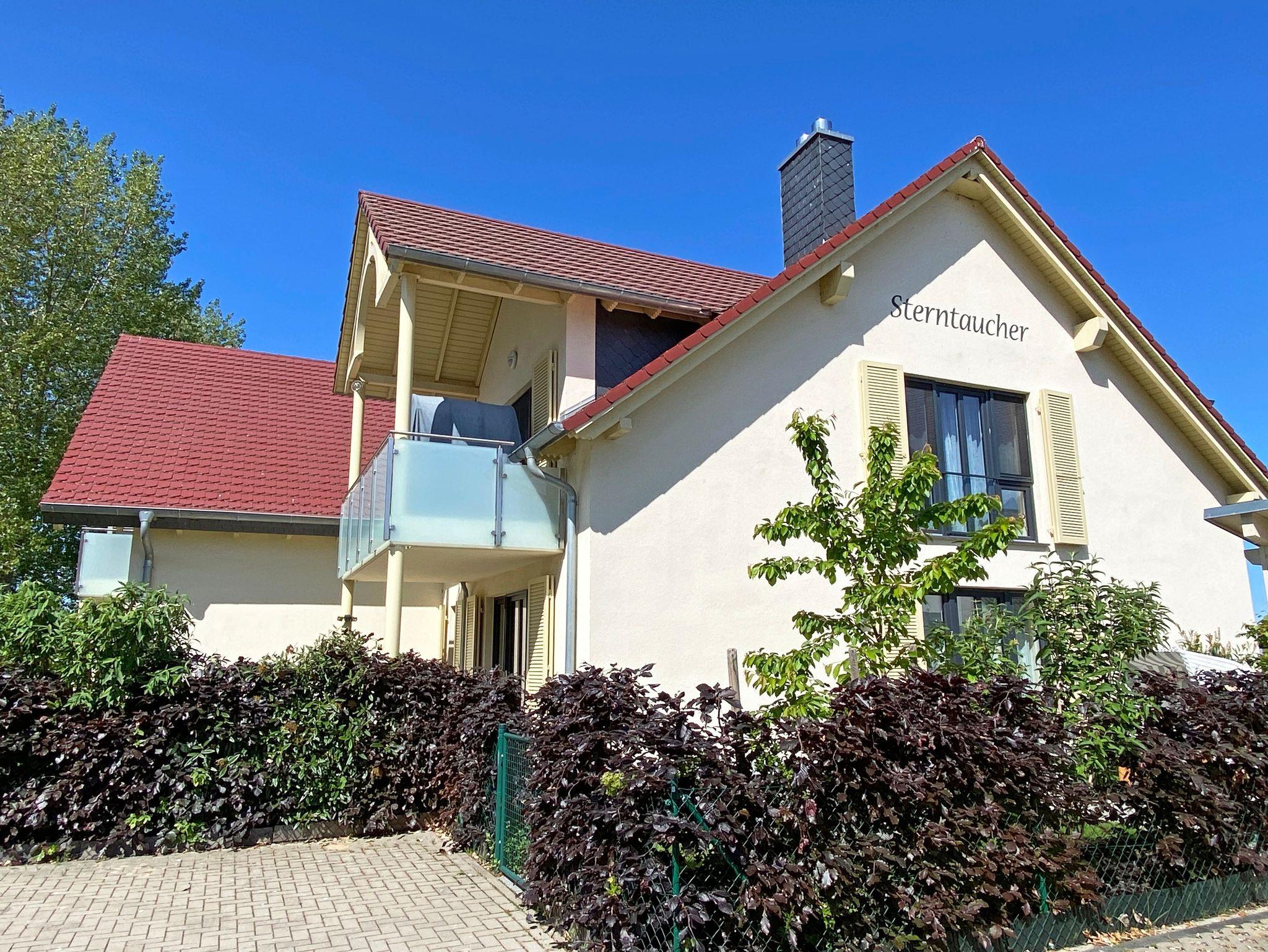 Die ca. 81m² große Ferienwohnung befindet sich im Dachgeschoss (1.OG) des Appartementhauses Sterntaucher. Die Nichtraucherwohnung wurde mit hochwertigen Massivholzmöbeln ausgestattet und bietet Ihnen ausreichend Platz für max. 2 bis 4 Erwachsene + 1 Kleinkind bis 3 Jahre im Kinderreisebett. Im Flur finden Sie eine maritime Garderobe mit einem Schuhschrank, einer Sitzbank, ein Highboard sowie einen Ganzkörperspiegel. Die gemütliche Sitzecke im Wohnbereich besteht aus einer bequemen Ledercouch, einem Ledersessel, einen Ohrensessel mit Hocker sowie einem Couchtisch. Ein Sideboard, ein Smart-TV mit Blu Ray-Player, ein Bose-Radio mit CD-Player, eine kleine CD-Auswahl, diverse Spiele, Bücher und Zeitschriften runden den Bereich ab. Auch auf einen Internetanschluss (WLAN) brauchen Sie im Urlaub nicht verzichten, dieser steht Ihnen inklusive zu Ihrer Verfügung. Eine angenehme und wohlige Wohnatmosphäre wird zusätzlich durch einen Kaminofen und verschiedene Lichtquellen geschaffen. Vom Wohnbereich gelangen Sie auf den überdachten und bestuhlten Süd-Balkon. Für die Gemütlichkeit sorgen ein zusätzlicher Strandkorb sowie ein Sonnenschirm. Innerhalb des offenen Wohn- und Essbereiches befindet sich die komfortable Einbau-Küche mit Granitarbeitsflächen, einem Induktionskochfeld mit Abzugshaube, einem Backofen, einer Mikrowelle, einem Geschirrspüler, einer Keramik-Spüle, einem Kühl- und Gefrierschrank, einem Toaster, einem Wasserkocher, einer Kaffeemaschine mit Thermoskanne, einer Lavazza - Espressomaschine sowie einem Milchaufschäumer, einem Mixer, einem Handrührgerät und weitere Küchenutensilien. Angrenzend befindet sich der Essplatz mit einem runden Granittisch und Korbstühlen. Das erste Schlafzimmer ist mit einem Doppelbett aus Korbgeflecht (1,80 m x 2,00 m), Nachttischablagen mit Tischleuchten, einem Kleiderschrank, einem Kleiderständer, einer Koffer-Kommode und einem kleinen Schaukelstuhl ausgestattet. Das zweite Schlafzimmer, welches im maritimen Stil ausgestattet ist, verfügt über ein Doppelbett (1,80 m x 2,00 m), Nachttischablagen mit Tischleuchten, einen Kleiderschrank und einen Schreibtisch. Abgerundet wird dieses Schlafzimmer mit einem zusätzlichen Flachbild-TV. Beide Schlafzimmer können mit Lammellenfensterläden verdunkelt werden. Im Tageslichtbad gibt es eine großzügige und ebenerdige Dusche mit Glastür, einen Waschtisch mit Einbau-Unterschrank, einen Spiegel, einen Fön, DAB-Radio, einen Vergrößerungsspiegel, einen Handtuchständer, ein WC, einen beheizbaren Handtuchtrockner sowie eine Waschmaschine und einen Trockner. Für unsere ganz kleinen Gäste dient eine Arbeitsplatte als Wickeltisch. Innerhalb des Bades befindet sich der Hauswirtschaftsraum. Hier finden Sie einen Wäscheständer, ein Bügeleisen mit Bügelbrett, einen Staubsauger, einen Hochstuhl, ein Kinderreisebett, Kinderbadewanne, Wickelunterlage, Kinder WC-Aufsatz sowie Reinigungsutensilien. Alle Böden, bis auf das Bad mit Fliesen, sind in der Wohnung mit Vinyldielen ausgestattet. Im Wohnbereich sowie in beiden Schlafzimmern befinden sich zusätzlich Insektenschutzgitter. Haustiere sind nicht erlaubt. Einen PKW-Stellplatz (Nr. 05) finden Sie direkt am Haus sowie einen Schuppen (Nr. 05), in dem Sie zwei Fahrräder unterstellen können. Zusätzlich können Sie hier auch Ihre E-Bikes aufladen. Die Erstausstattung eines Wäschepaketes (komplette Bettwäsche, 1 Duschhandtuch, 2 kleine Handtücher) können Sie bis 14 Tage vor Anreise gegen einen Aufpreis dazu buchen oder durch eigene ergänzen. Ab 2 gebuchten Paketen erhalten Sie einmalig 1 Geschirrhandtuch und 1 Duschvorleger hinzu.