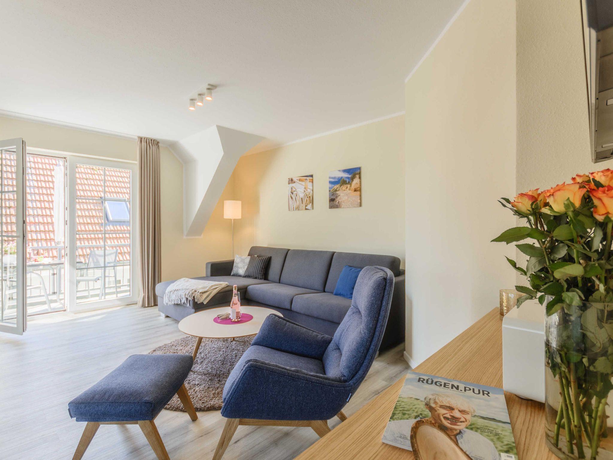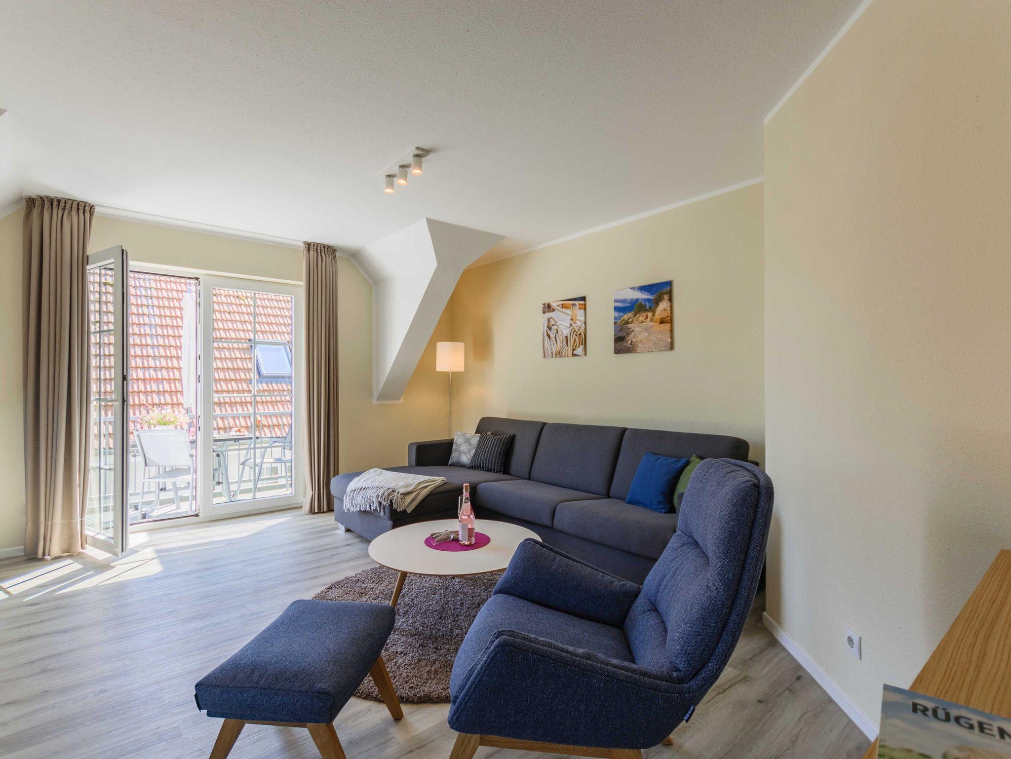 Willkommen in den Lotsenberg Apartments in Thiessow, ideal für erholsame Tage am Meer mit Sauna und Balkon.