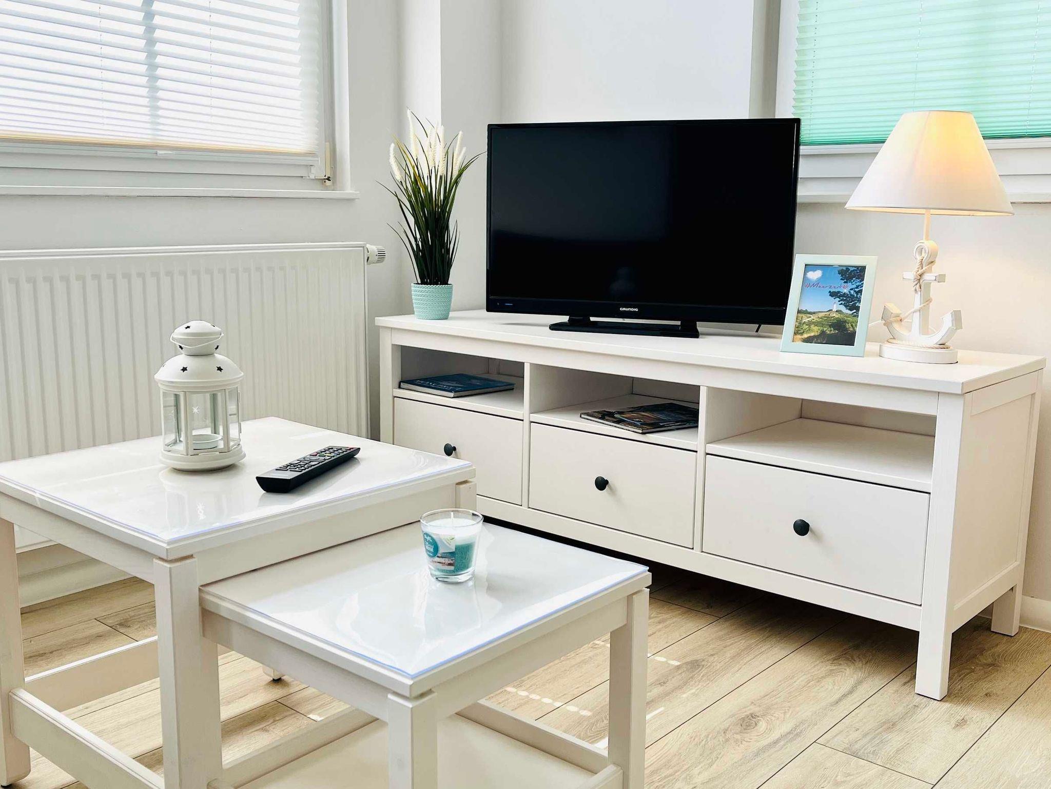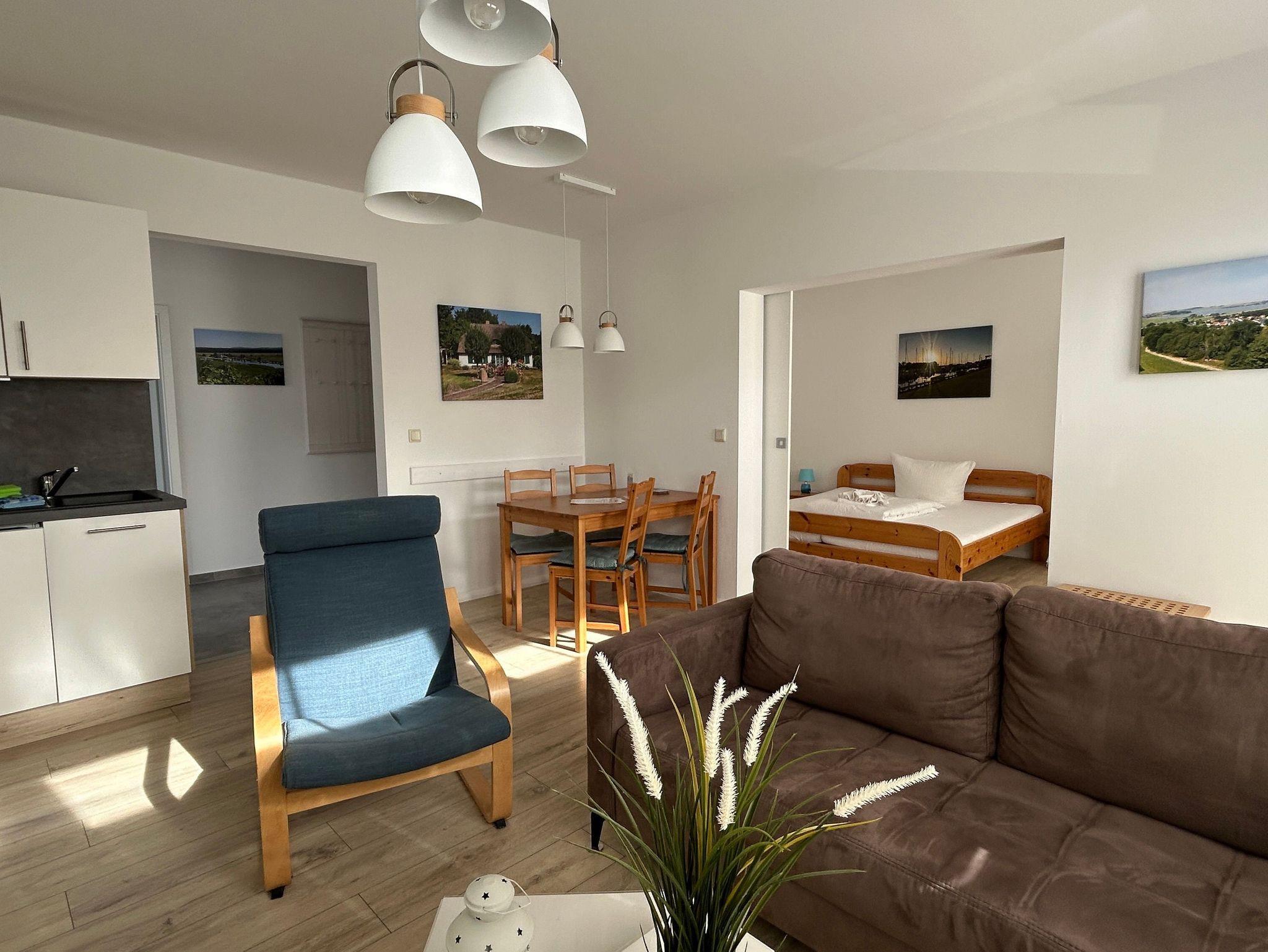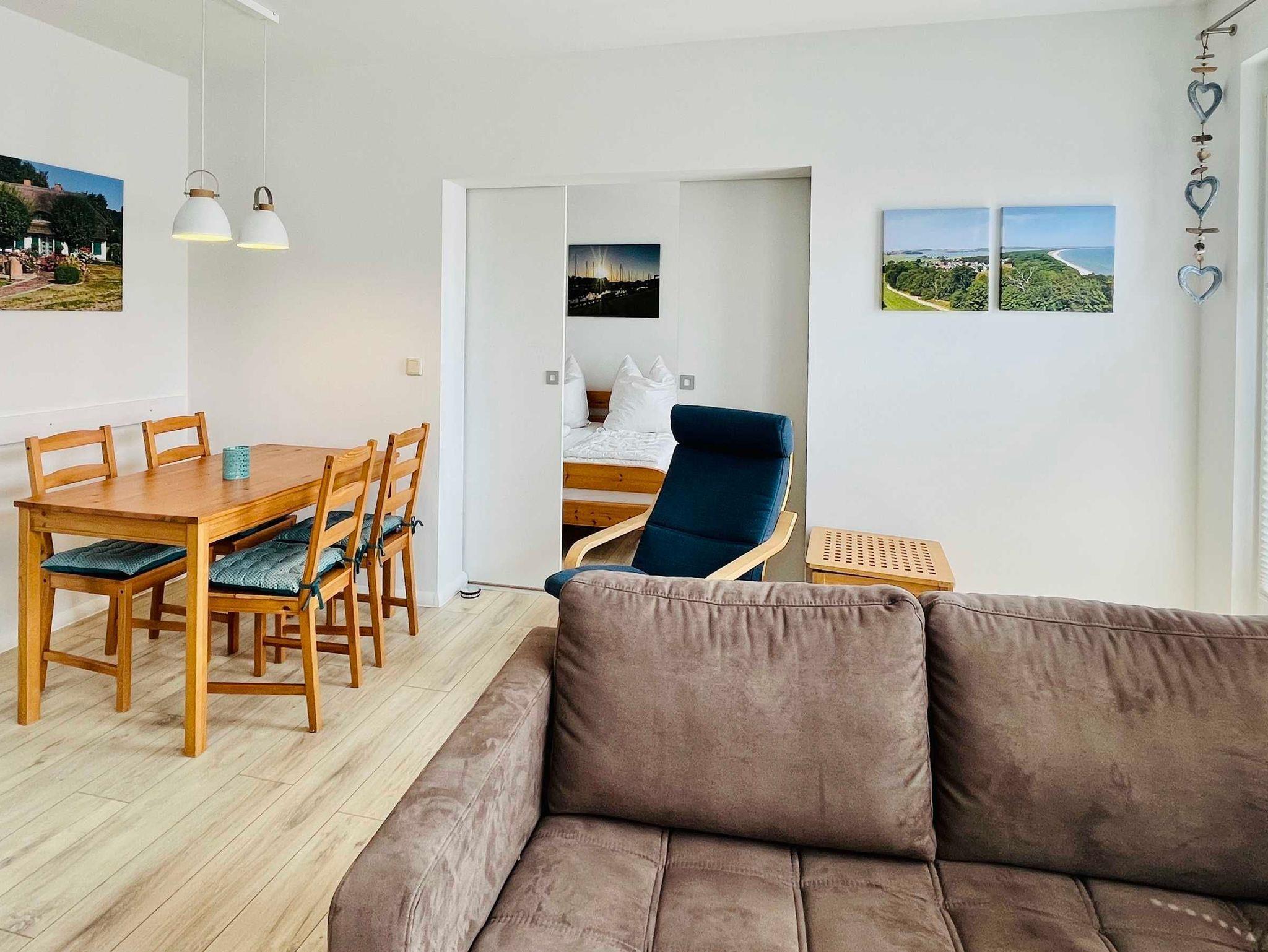 Gemütliche Ferienwohnung Kajüte Jonas in Thiessow, 300 m vom Strand, mit großer Terrasse und moderner Ausstattung.