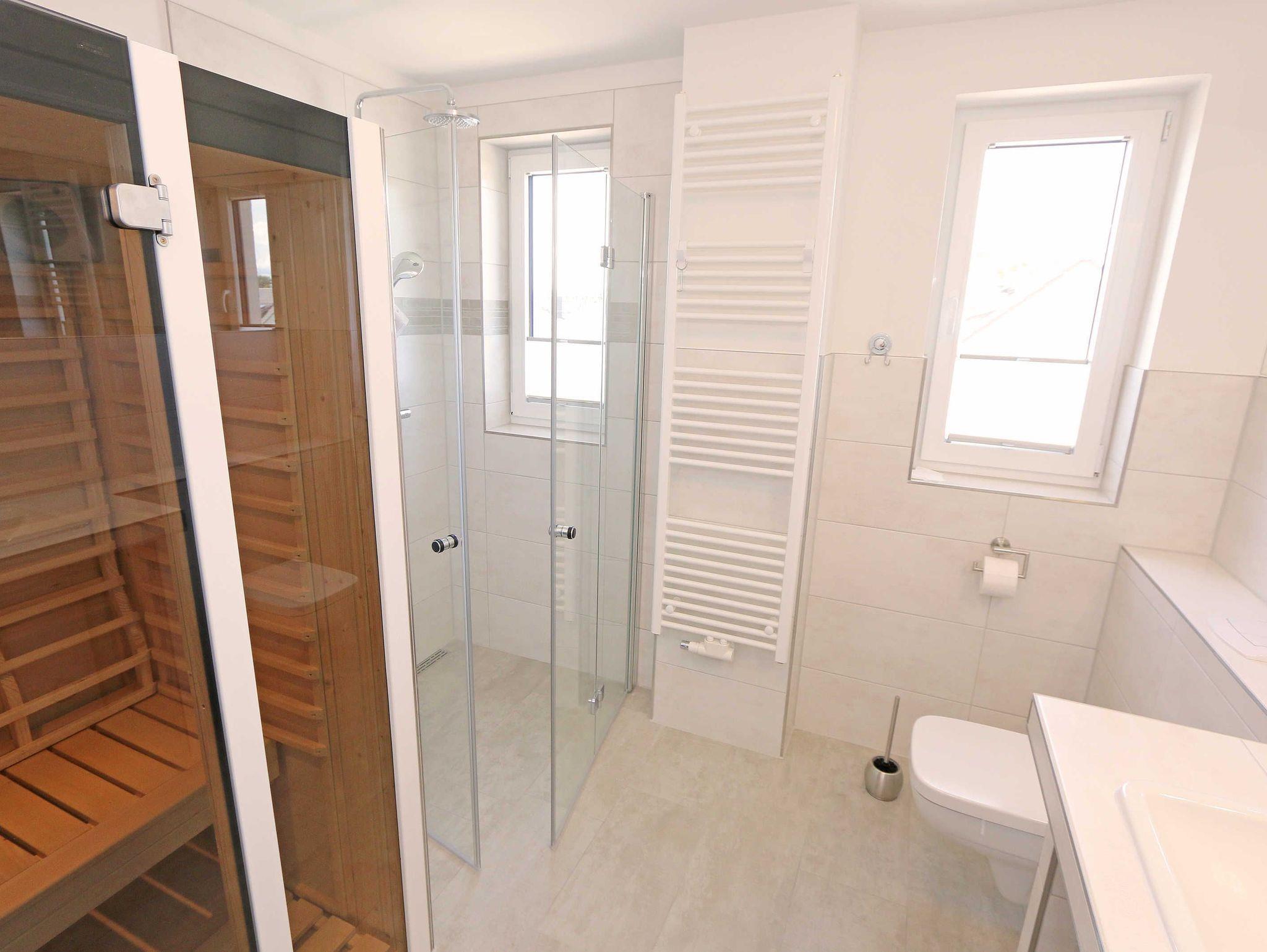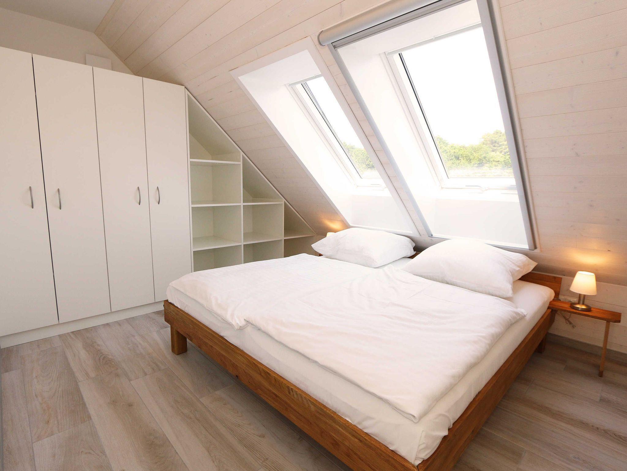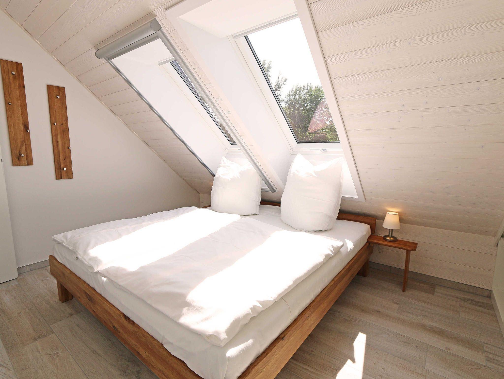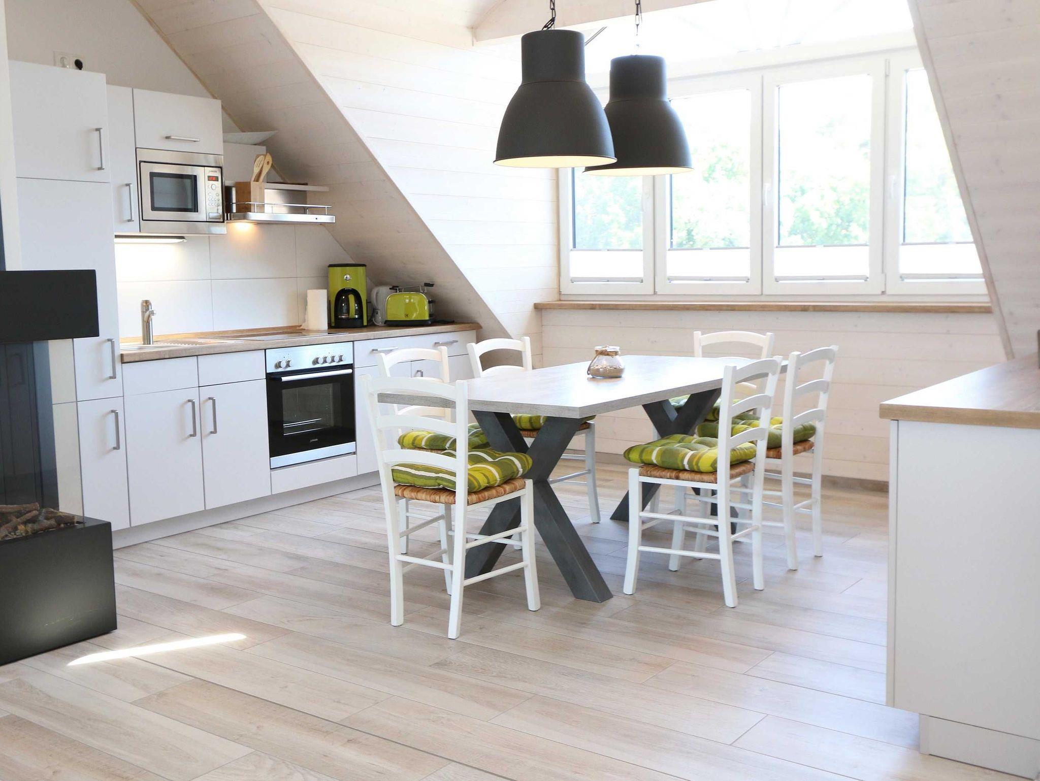 Die im nordischen Stil eingerichtete Nichtraucherwohnung mit 89 m² findet sich in der 2. Etage. Sie ist lichtdurchflutet und geprägt durch Holzschrägen, dicke naturbelassene Holzbalken, die einen Blick in den First zulassen. Die Ferienwohnung ?Seestern? ist für max. 6 Erwachsene und 1 Kleinkind bis 3 Jahre im Kinderreisebett bestens geeignet. Sie ist modern eingerichtet mit einem großen Ledersofa, Leselampe, 2 Relax-Sessel und einem Lowboard mit Smart-TV, Soundanlage, Blue Ray-Player und Radio mit CD-Player. Auch im Urlaub brauchen Sie auf einen Internetanschluss (WLAN) nicht verzichten. Dieser ist für Sie inklusive. An kühleren Tagen sorgt ein Gaskamin für angenehme Wärme. Vom Wohnbereich gelangen Sie auf den großen und bestuhlten Balkon (Süd) mit Sonnenschirm, auf dem Sie bei einem gemütlichen Frühstück Ihren Urlaubstag in Ruhe beginnen können. Bei der offenen Einbauküche müssen Sie auf nichts verzichten. Vom Geschirrspüler, Backofen, 4-Zonen-Cerankochfeld, Kühlschrank mit Gefrierkombination, Mikrowelle, Kaffeemaschine, Toaster, Wasserkocher bis hin zu vielen Küchenhelfern. Vom großen Esstisch, an dem 6 Personen Platz finden, genießen Sie einen Blick in ein Wäldchen, hinter welchem sich die Ostsee befindet. 2 Schlafzimmer verfügen über eingebaute Kleiderschränke sowie je ein Doppelbett (1,80 m x 2,00 m) mit Nachttischablagen, welche für Entspannung sorgen und erholt in den nächsten Urlaubstag schlafen lassen. An ein Schlafzimmer schließt sich ein En Suite Tageslichtbad mit WC, Waschplatz, Kosmetikspiegel, Fön und Dusche an. Das größere Tageslichtbad mit Infrarotsauna verfügt unter anderem auch über einen Wasch- und Trockenautomat, WC, Waschtisch, Fön sowie eine Dusche. Ein weiteres Highlight ist ein offener, durch ein Geländer abgegrenzter Schlafboden im Gebälk (Höhe 1,52 m), der über eine Raumspartreppe aus dem Wohnbereich erreicht wird. Dort befinden sich zwei große Einzelbetten (0,90 m x 2,00 m). Insektenschutzgitter sind vorhanden. In der Zeit vom 01. Juni - 31. August sind der Kamin und die Sauna nicht zu nutzen! Für unsere kleinen Gäste stehen 1x Kinderreisebett (ohne Zusatzmatratze, ohne Bettinlett) sowie 1x Hochstuhl (ohne Gurt) inklusive zur Verfügung. Im abschließbaren Nebengebäude können Sie Ihre Fahrräder sicher unterstellen. Ihren PKW können Sie auf dem zur Wohnung gehörenden Stellplatz (Nr. 9) direkt am Haus abstellen. Ein Grillplatz für alle Hausgäste ist vorhanden. Haustiere sind leider nicht erlaubt. Die Erstausstattung eines Wäschepaketes (komplette Bettwäsche, 1 Duschhandtuch, 2 kleine Handtücher) können Sie bis 14 Tage vor Anreise gegen einen Aufpreis dazu buchen oder durch eigene ergänzen. Ab 2 gebuchten Paketen erhalten Sie einmalig 1 Geschirrhandtuch und 1 Duschvorleger hinzu.