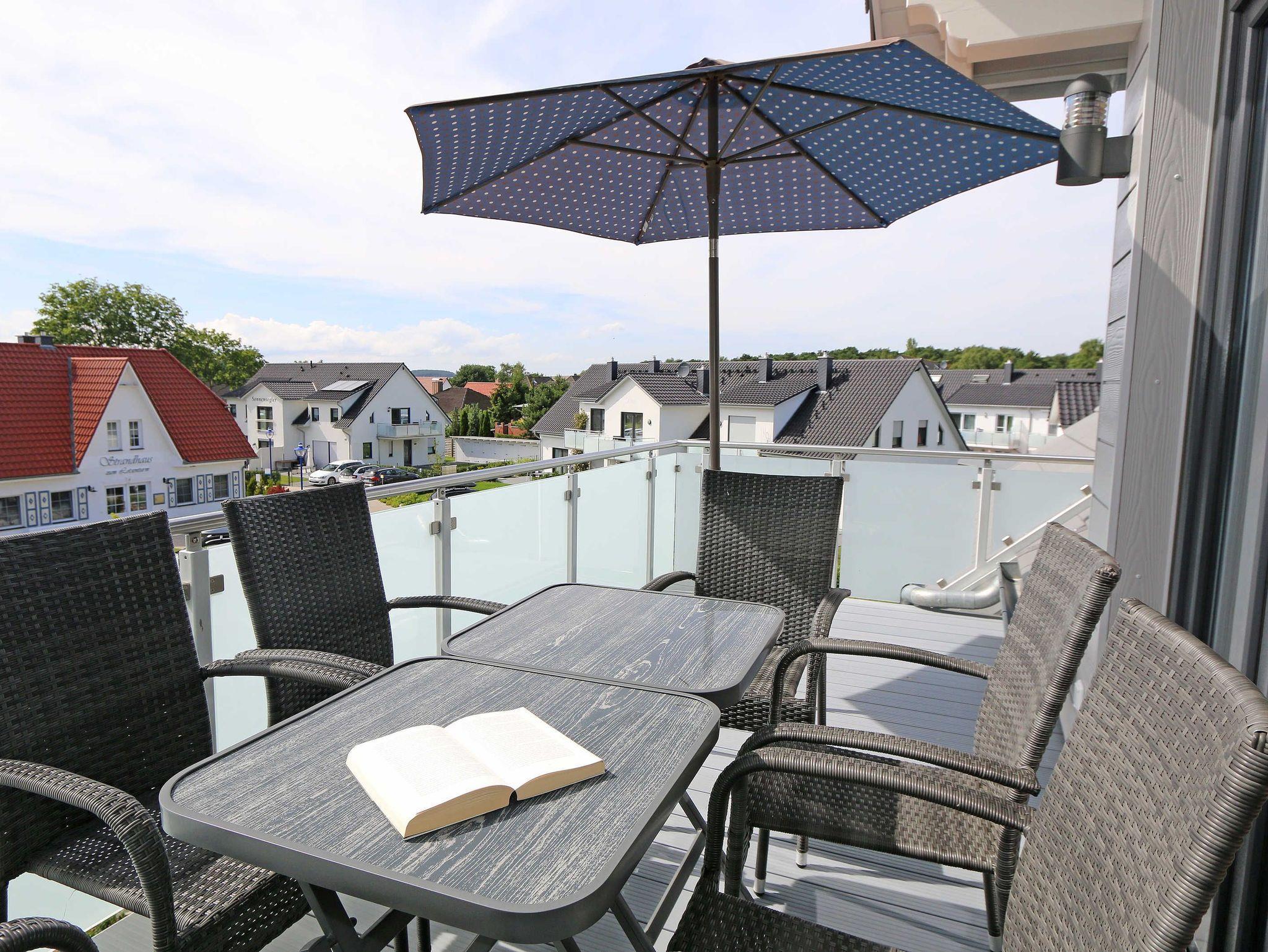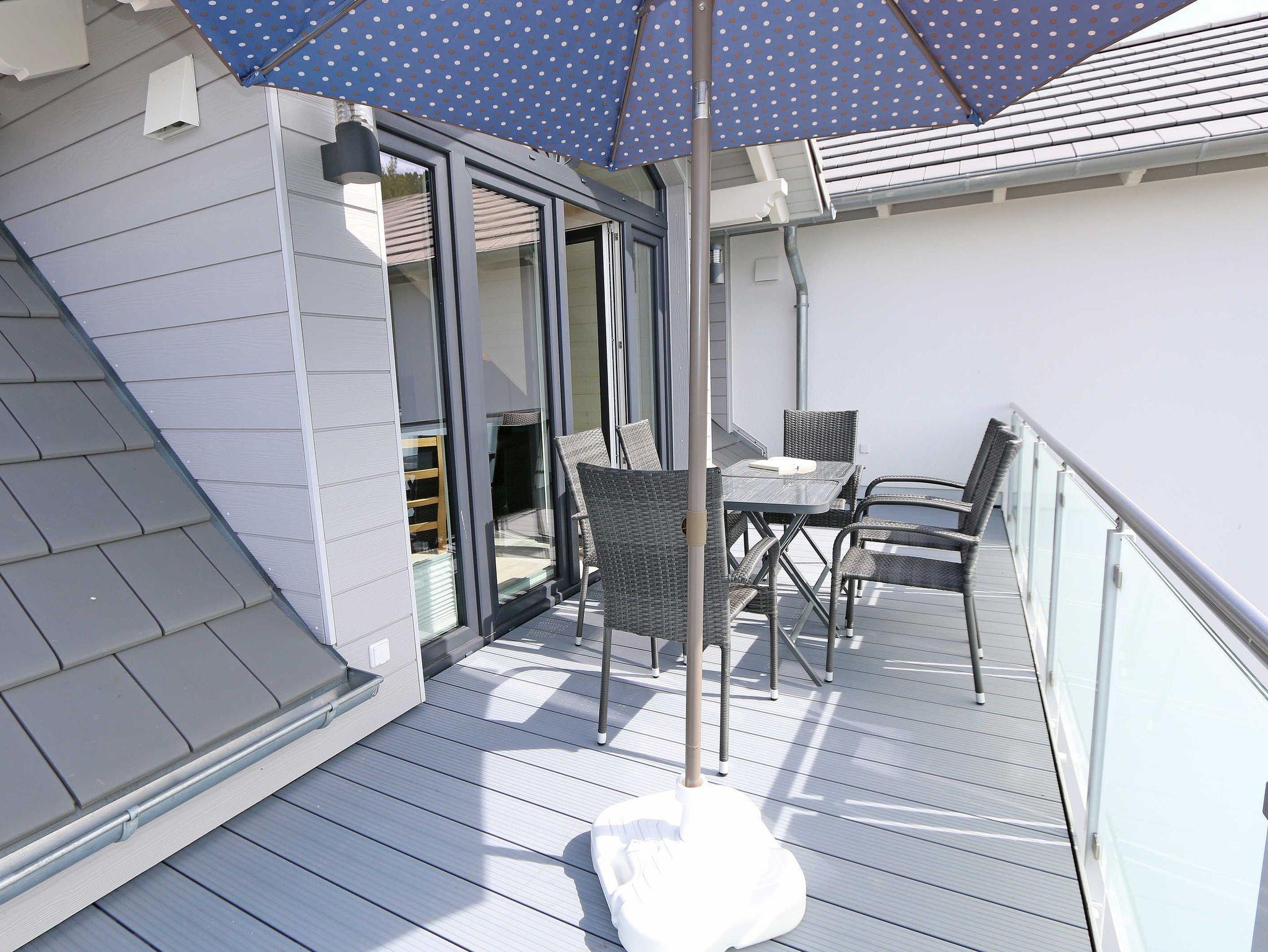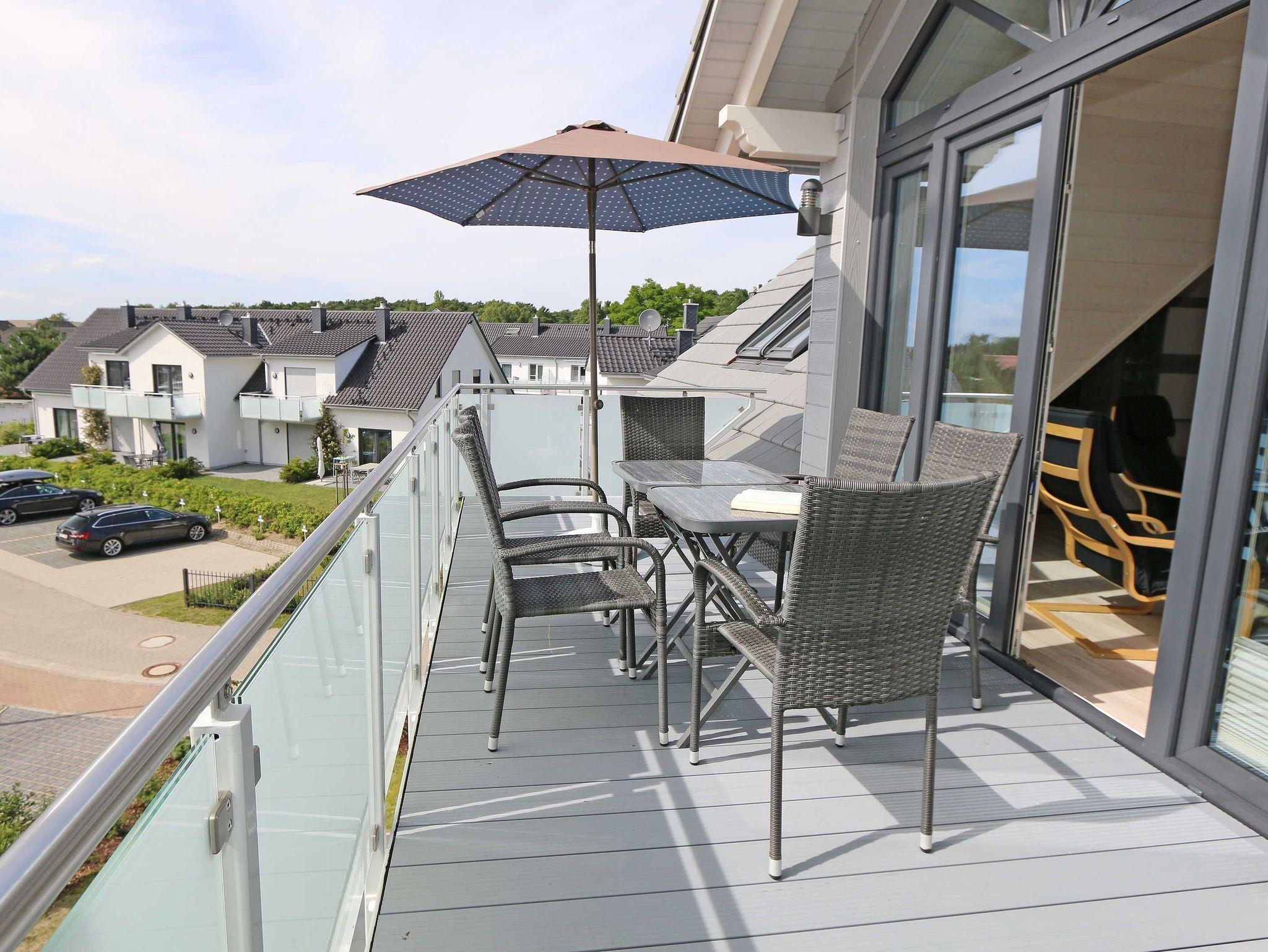 Moderne Ferienwohnung Seestern mit Balkon und Meerblick in Thiessow, Rügen, nur 100 m vom Sandstrand entfernt.