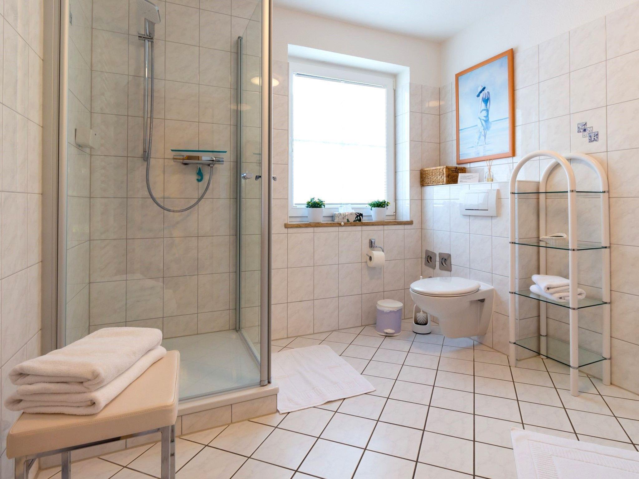 Das Wohnzimmer wurde in den letzten 2 Jahren neu möbliert und gestrichen. Von der windgeschützten Südwestterrasse können Sie in entspannter Atmosphäre Ihren Urlaub genießen. Die Matratzen (90 x 200 cm) in den Schlafzimmern haben einen guten Liegekomfort. Alle Fenster sind mit Fliegengitter bzw. Fliegengittertür (Terrasse) ausgestattet. Im Bad ist eine Duschkabine (Glas 90 x 90 cm) mit niedrigem Einstieg und moderner Wellness-Armatur eingebaut worden. Ein großer Handtuchheizkörper und Fußbodenheizung sorgen für ein angenehmes Raumklima. Alle Räume sind gefliest, bis auf die Schlafzimmer, dort liegt ein angenehmer Teppichboden. Alle Räume werden durch ein Zentralheizungssystem beheizt. Die Wohnung ist eine Nichtraucher-Wohnung.