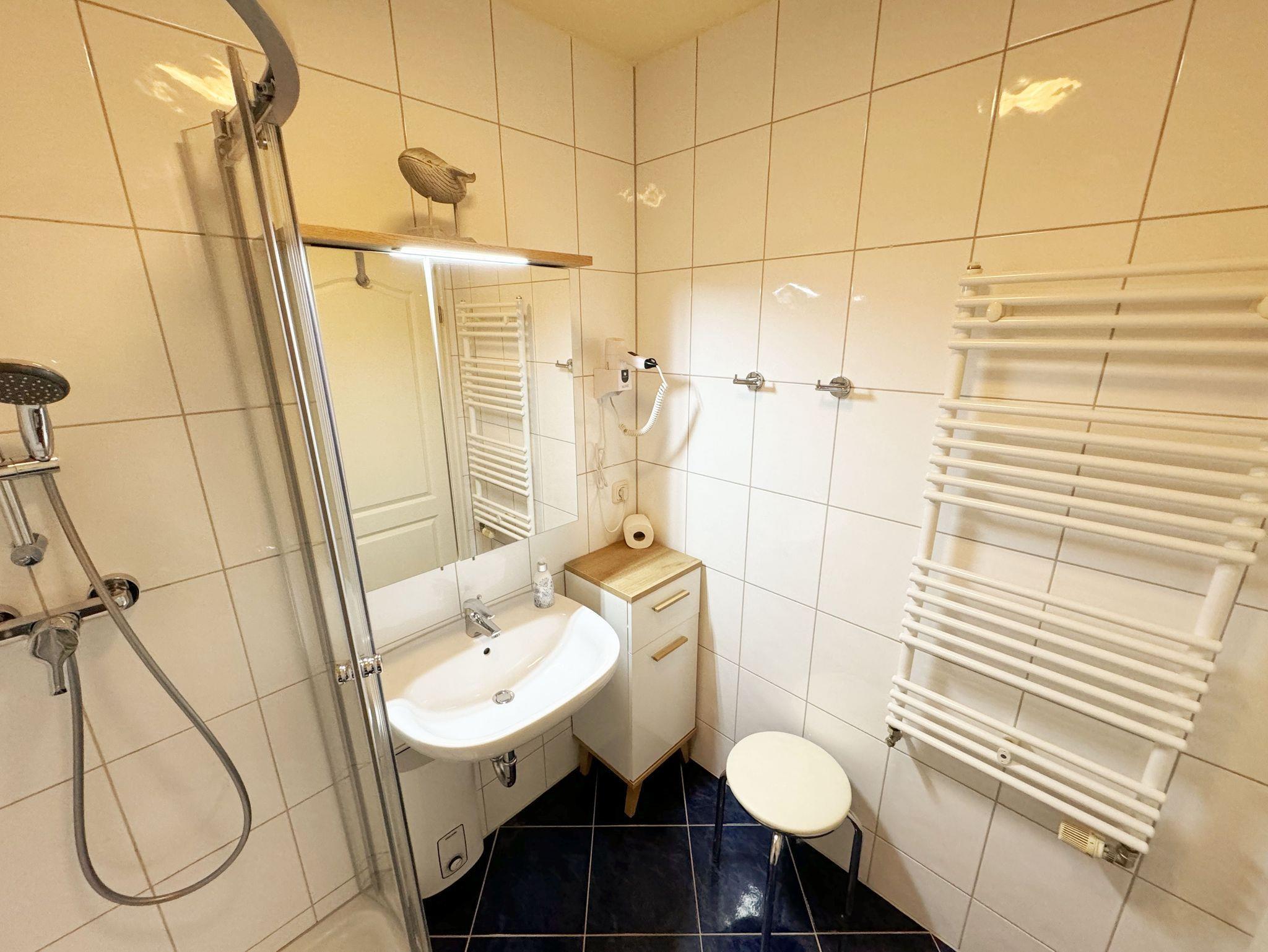 Die Nichtraucher-Ferienwohnung Strandläufer bietet Ihnen mit Ihren ca. 43qm Platz für max. 2 bis 3 Personen. Im hellen Wohnbereich befindet sich eine Eckcouch (welche mit wenigen Handgriffen als Aufbettung für die 3. Person genutzt werden kann, 1,20m x 1,95m) mit Couchtisch, eine Stehlampe, eine Vitrine sowie ein Sideboard mit Flachbild-TV. Der technische Bereich wird zusätzlich durch einen WLAN-Zugang (50 Mbit/S) abgerundet. Ein Esstisch komplettiert den Raum. Die offene Küchenzeile verfügt über einen Geschirrspüler, ein Cerankochfeld, einen Kühlschrank mit Eisfach, eine Mikrowelle, eine Kaffeemaschine, einen Wasserkocher und einen Toaster. Vom Wohnbereich gelangen Sie auf Ihre bestuhlte und überdachte West/Südwest-Terrasse. Das Schlafzimmer ist mit einem Doppelbett (1,80m x 2,00m), Nachttischablagen und einem Kleiderschrank ausgestattet. Für einen ruhigen Schlaf sorgt eine Verdunklungsmöglichkeit sowie ein Insektenschutzgitter. Das innenliegende Bad bietet Ihnen eine Dusche, ein Fön, ein WC sowie einen Waschplatz. Haustiere sind nicht erlaubt. Ihr PKW-Stellplatz (Nr.03) befindet sich direkt am Objekt. Ihre mitgebrachten Fahrräder können Sie im Schuppen (Nr.03) welcher direkt zur Wohnung gehört sicher einschließen. Die Erstausstattung eines Wäschepaketes (komplette Bettwäsche, 1 Duschhandtuch, 2 kleine Handtücher) können Sie bis 14 Tage vor Anreise gegen einen Aufpreis dazu buchen oder durch eigene ergänzen. Ab 2 gebuchten Paketen erhalten Sie einmalig 1 Geschirrhandtuch und 1 Duschvorleger hinzu.