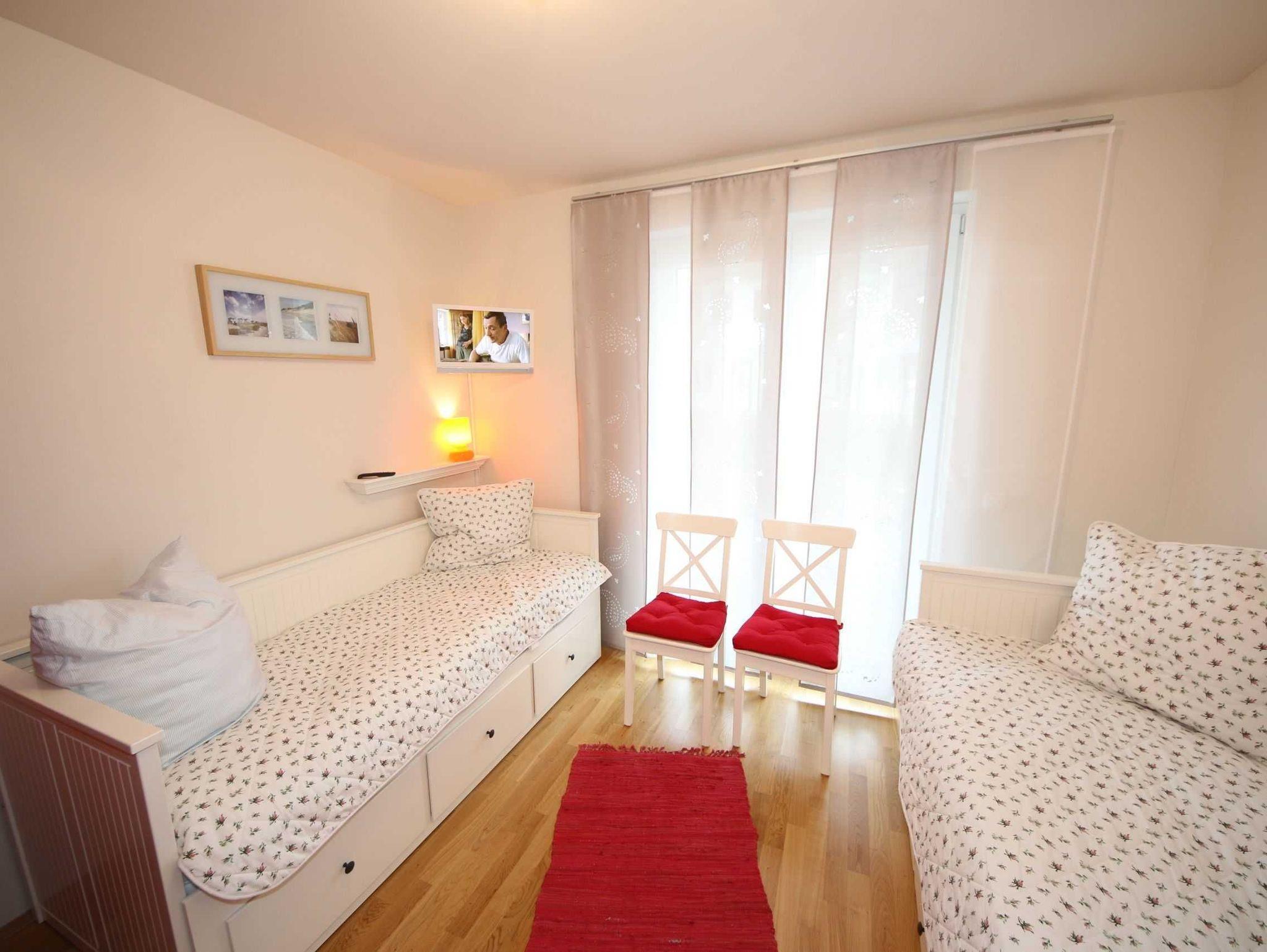 Die 3-Zimmer-Ferienwohnung, die für 2 bis max. 4 Erwachsene und 1 Kleinkind bis 3 Jahre im Kinderreisebett ausgelegt ist, ist eine komfortable ca. 67 qm große Nichtraucherwohnung die sich im Erdgeschoss befindet. Im kombinierten Wohn- und Essbereich finden Sie eine gemütliche Couch mit Couchtisch und Relax Sessel sowie LCD-Flachbild-TV, Blu-Ray-Player, Mini-Stereo-Anlage mit USB-Anschluss sowie eine Spielesammlung auf einem Flachboard. Der technische Bereich wird zusätzlich durch einen WLAN-Zugang abgerundet. Für die kalte Jahreszeit bringt Ihnen der Kamin ein angenehmes Raumklima in den Wohnbereich. Die Küchenzeile mit Cerankochfeld, Backofen, Mikrowelle, Geschirrspüler, Kühlschrank mit Gefrierfach, Kaffeemaschine, Wasserkocher, Toaster und anderen praktischen Küchenutensilien wird durch den runden Essplatz mit 4 Stühlen komplettiert. Das Schlafzimmer ist mit einem Doppelbett (1,60 m x 2,00 m) und einem geräumigen Kleiderschrank ausgestattet. Das 2. Schlafzimmer verfügt über 2 Einzelbetten (je 0,90 m x 2,00 m), einen Kleiderschrank und einem 23 Zoll LCD-TV. Verdunkelungsgardinen schützen Sie in der Wohnung vor fremden Blicken von außerhalb. Das Badezimmer mit ebenerdiger Dusche, Waschplatz, WC, einen beheizten Handtuchhalter und einen Fön runden den Sanitärbereich ab. Wohnbereich und Bad sind mit einer Fußbodenheizung versehen und hochwertige Fliesen verlegt worden. Alle Fenster und Balkontüren haben elektrische Außenjalousien. Durch den Wohnbereich gelangen Sie auf beide Terrassen (Richtung Süden und Westen) mit gemütlicher Bestuhlung und Sonnenschirm von denen Sie wahlweise die Mittags- bzw. Abendsonne genießen können. In der Abstellkammer der Wohnung finden Sie einen Staubsauger sowie Wäschetrockner für den Balkon. Ein eigener PKW-Stellplatz Nr. 01 befindet sich auf dem Grundstück. Ein Fahrradschuppen für den Unterstand von 2 Fahrräder gehört zur Wohnung dazu. Haustiere sind nicht gestattet. Die Erstausstattung eines Wäschepaketes (komplette Bettwäsche, 1 Duschhandtuch, 2 kleine Handtücher) können Sie bis 14 Tage vor Anreise gegen einen Aufpreis dazu buchen oder durch eigene ergänzen. Ab 2 gebuchten Paketen erhalten Sie einmalig 1 Geschirrhandtuch und 1 Duschvorleger dazu.