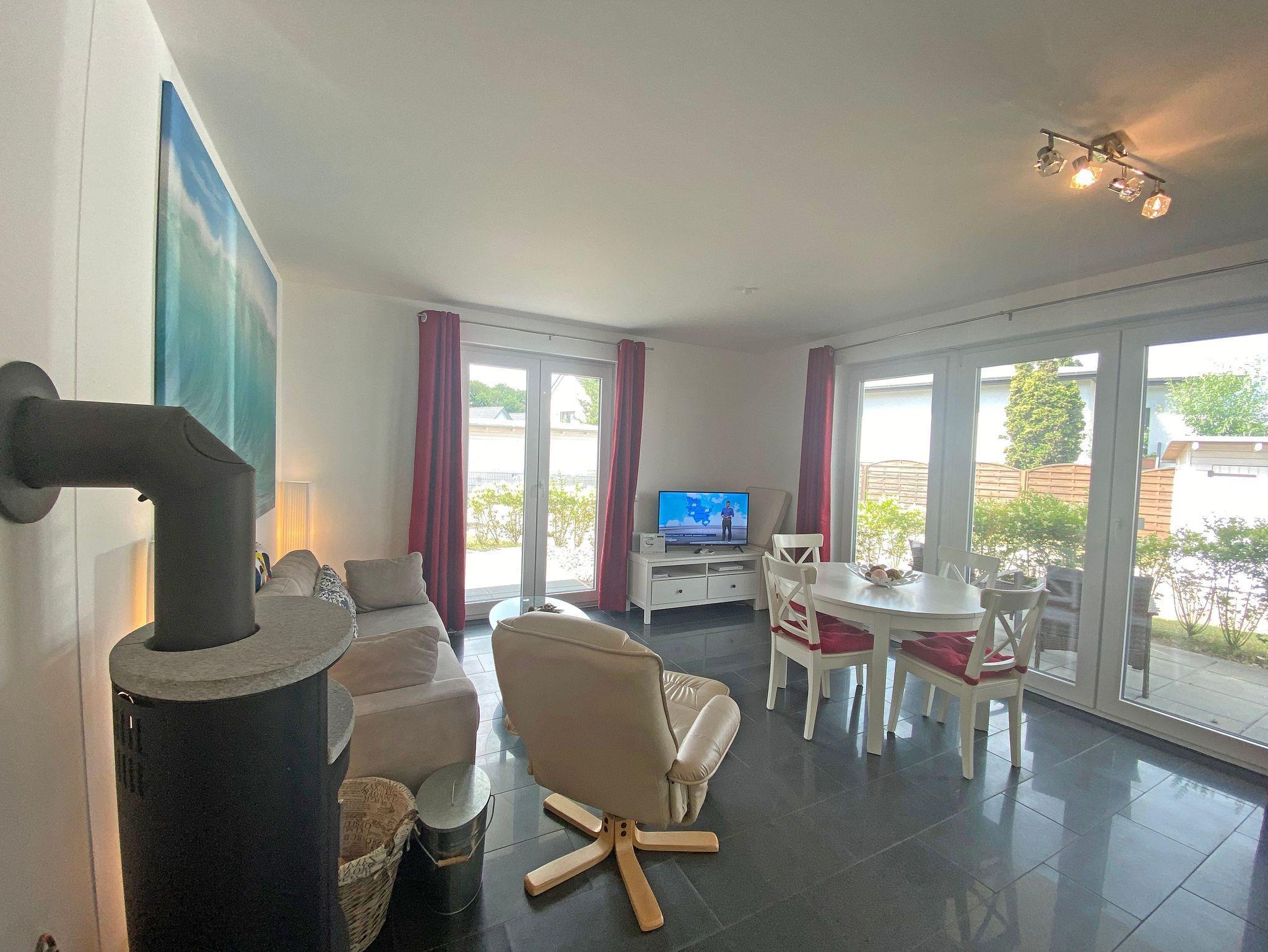 Komfortable 3-Zimmer-Ferienwohnung mit Kamin und zwei Terrassen nahe Ostseestrand in Thiessow.