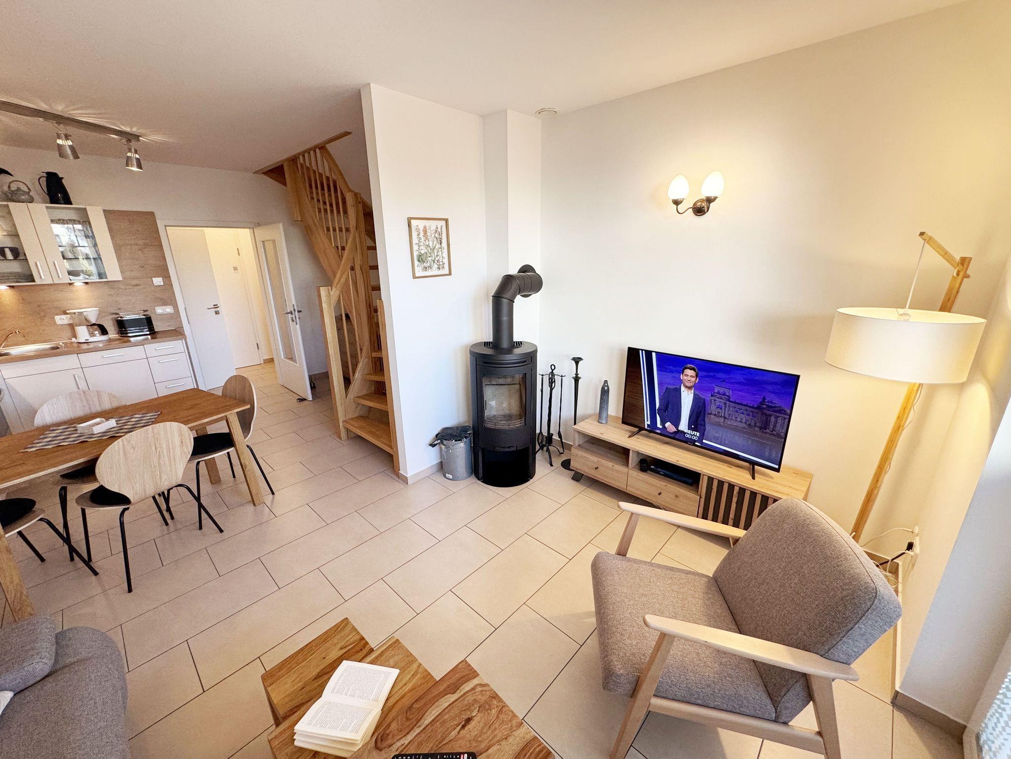 Komfortable Ferienwohnung mit Balkon, Terrasse und Kamin nur 80 m vom Ostseestrand in Thiessow.