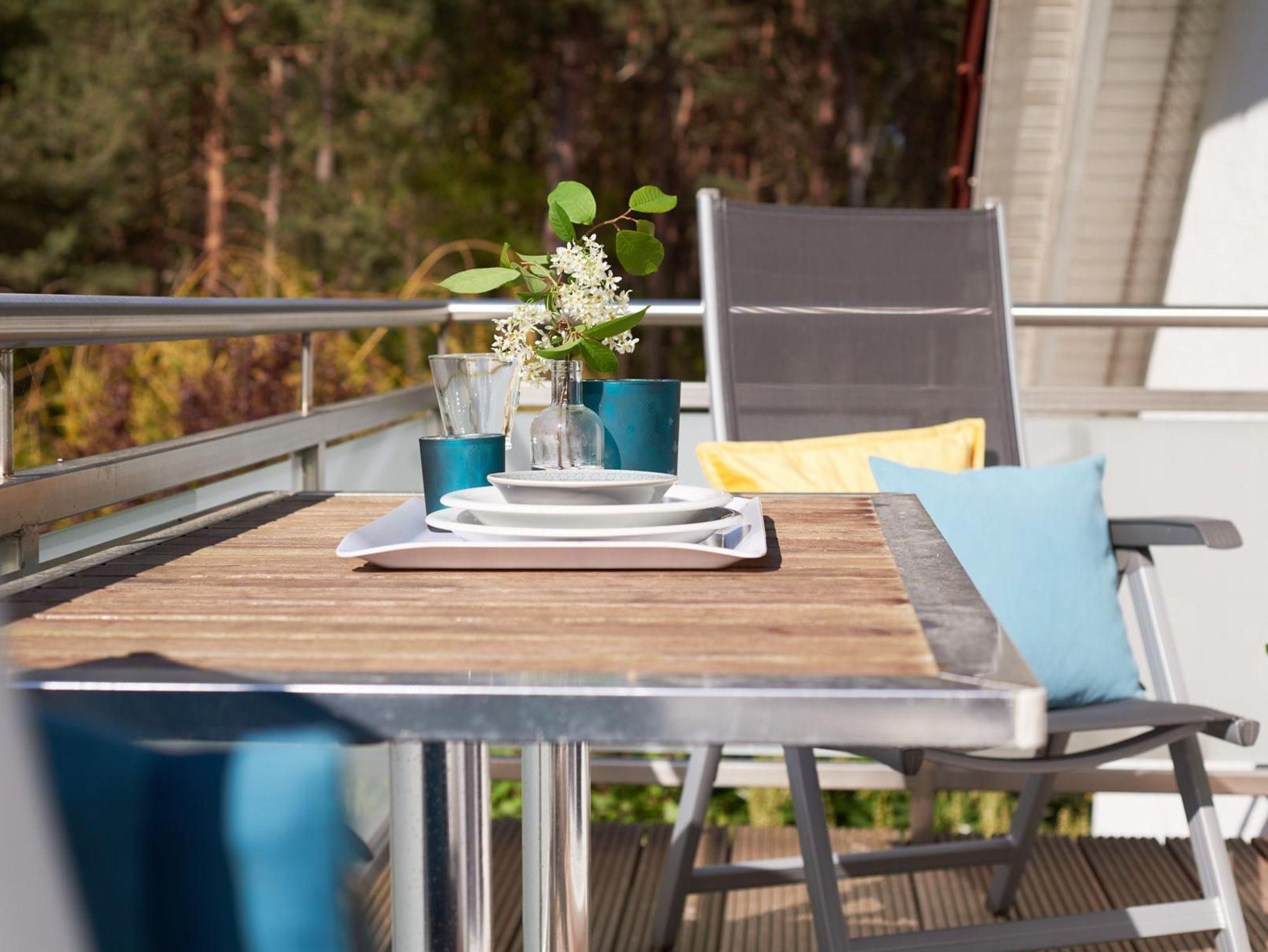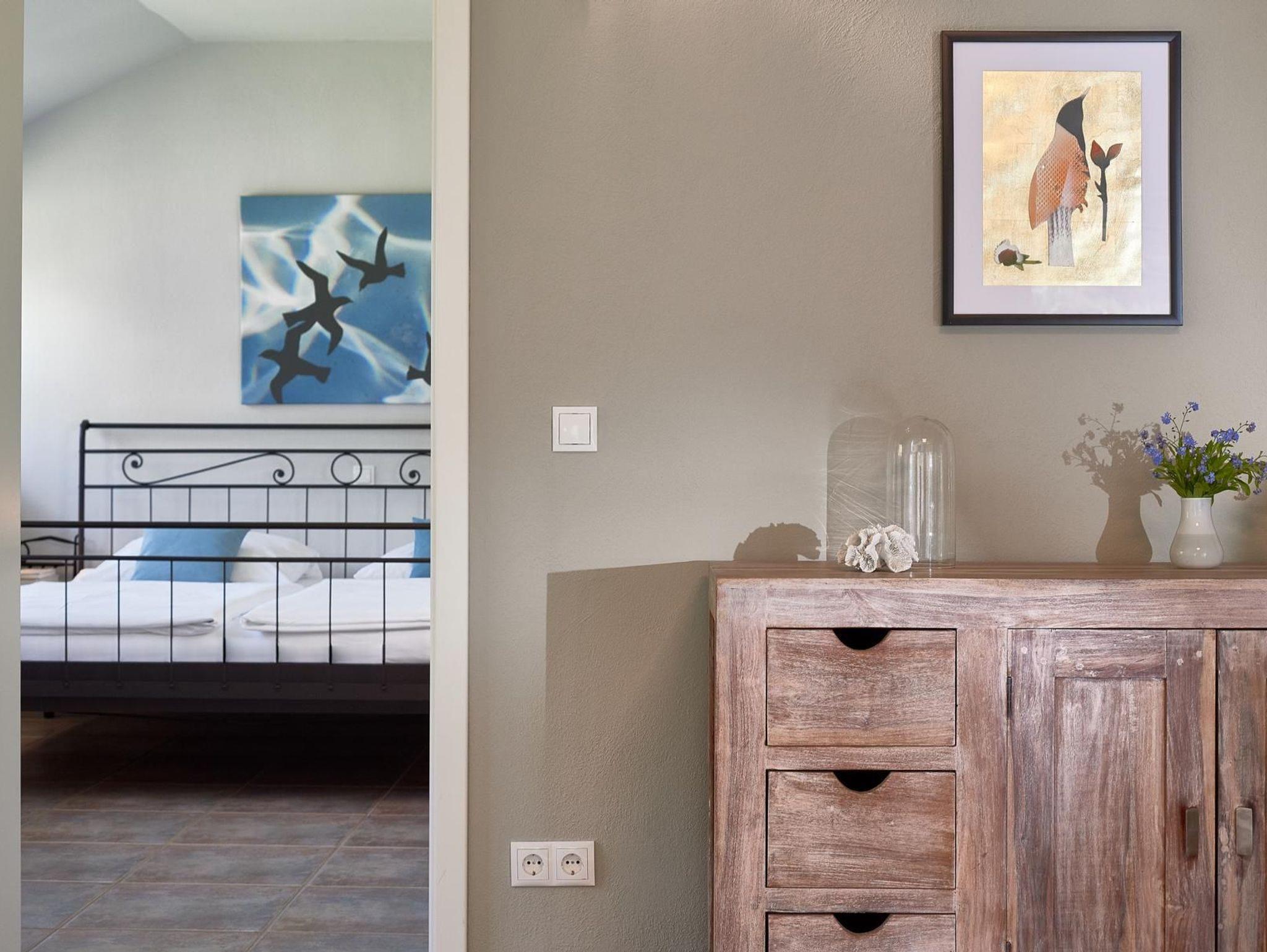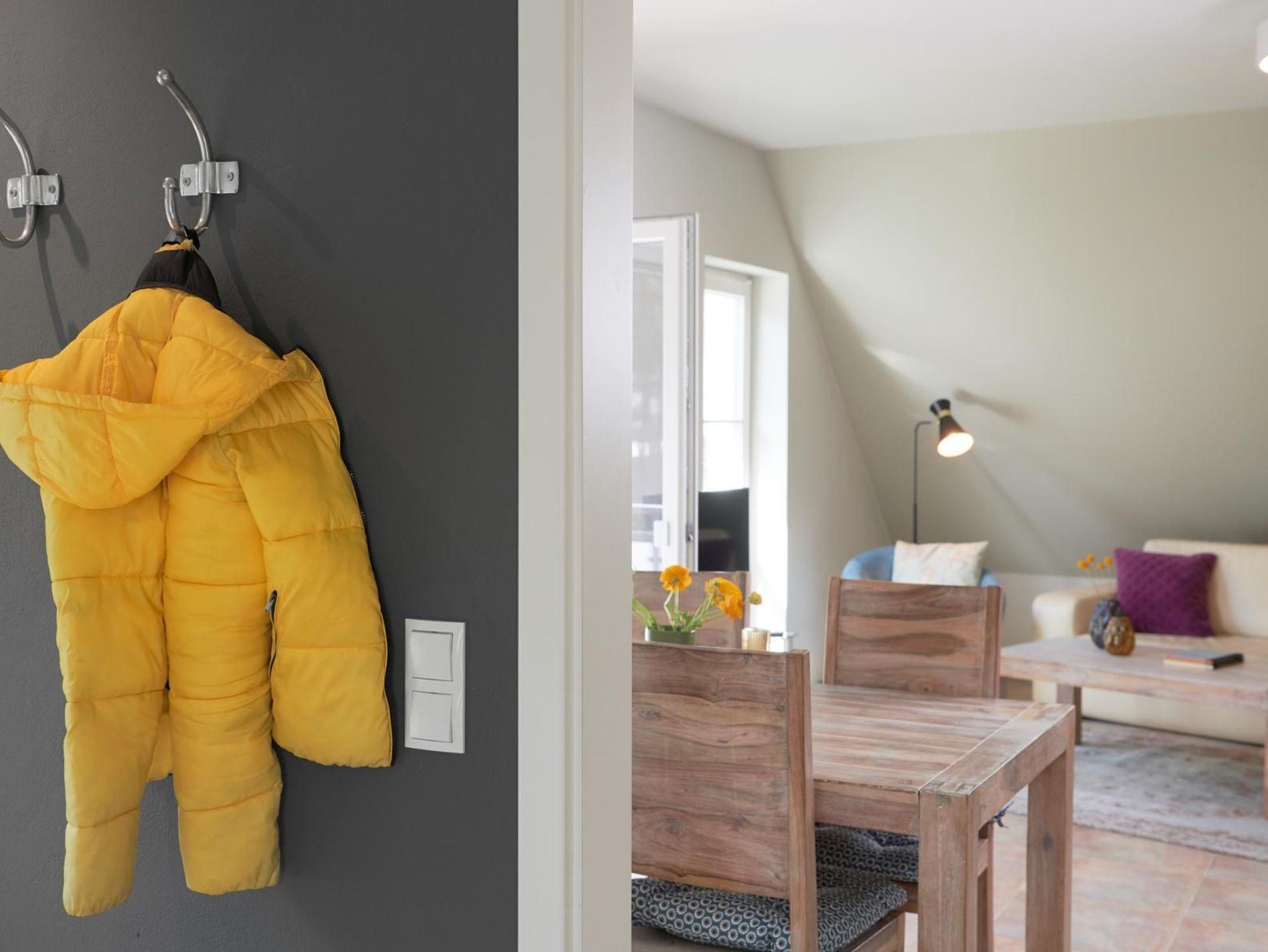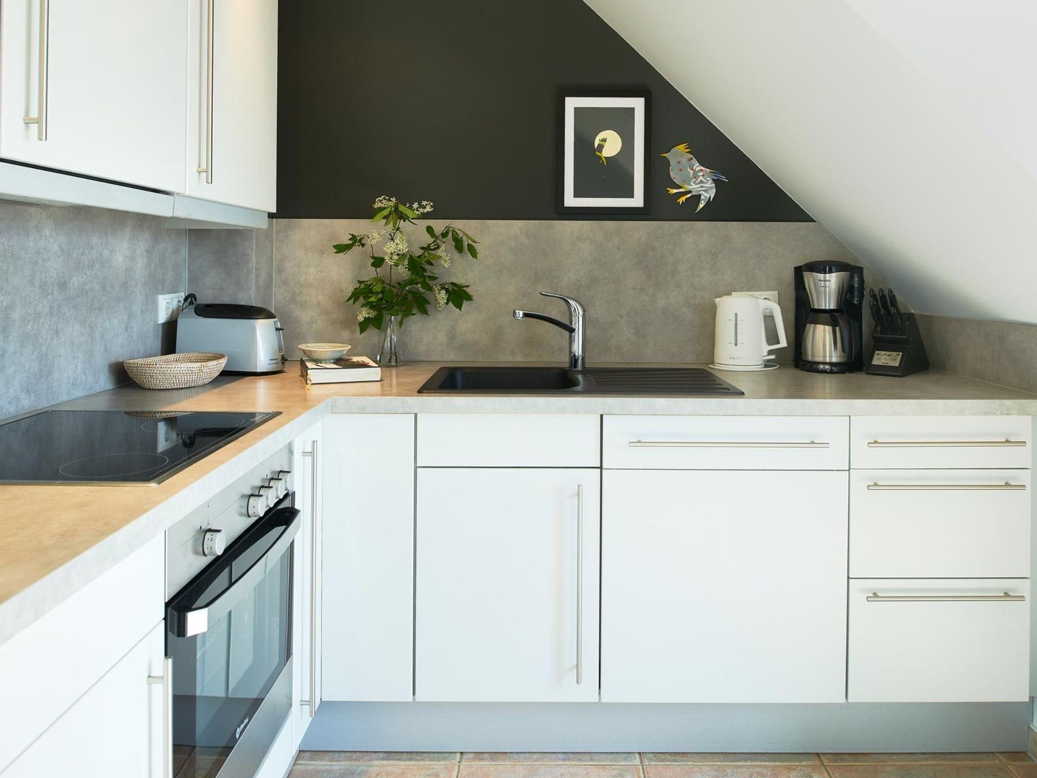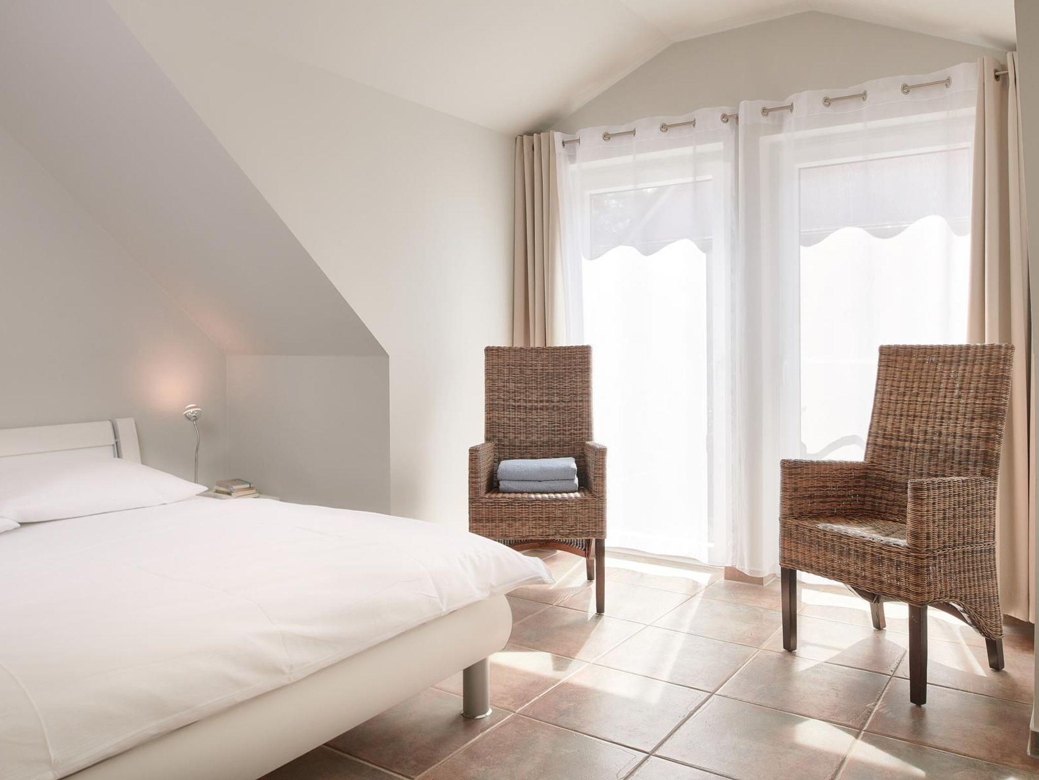 Das Bad verfügt über Doppelwaschtisch, Fön sowie ebenerdiger Dusche. Nach einer langen Fahrradtour oder einem Winterstrandspaziergang können die integrierte Sauna und der Kaminofen für wohlige Wärme sorgen. Im Sommer werden Sie auf dem Balkon den herrlichen Sonnenuntergang genießen.