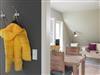 Der Zugang zur oberen Wohnung führt über eine breite, aussenliegende Treppe. Sie besteht aus einem Eingangsbereich mit integrierter Küche, einem großen Wohnzimmer, zwei Schlafzimmern mit Doppelbetten.