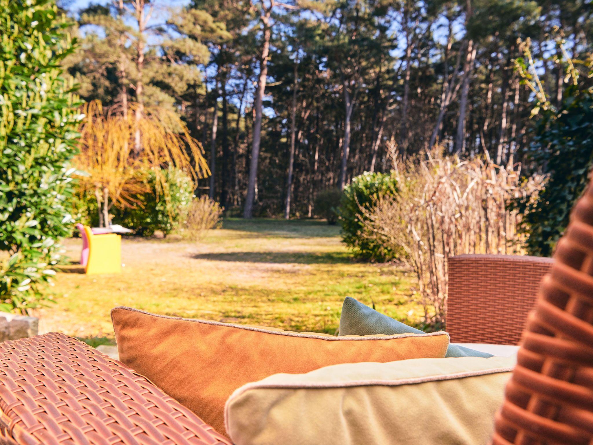 Das Appartement hat Zugang zu einem 420 qm großen eigenen eingezäunten Garten. Auf der sonnigen Terrasse kann der Tag mit einem ausgiebigen Frühstück beginnen. Ihr eigener Parkplatz ist ca. 60 m vom Haus entfernt.
