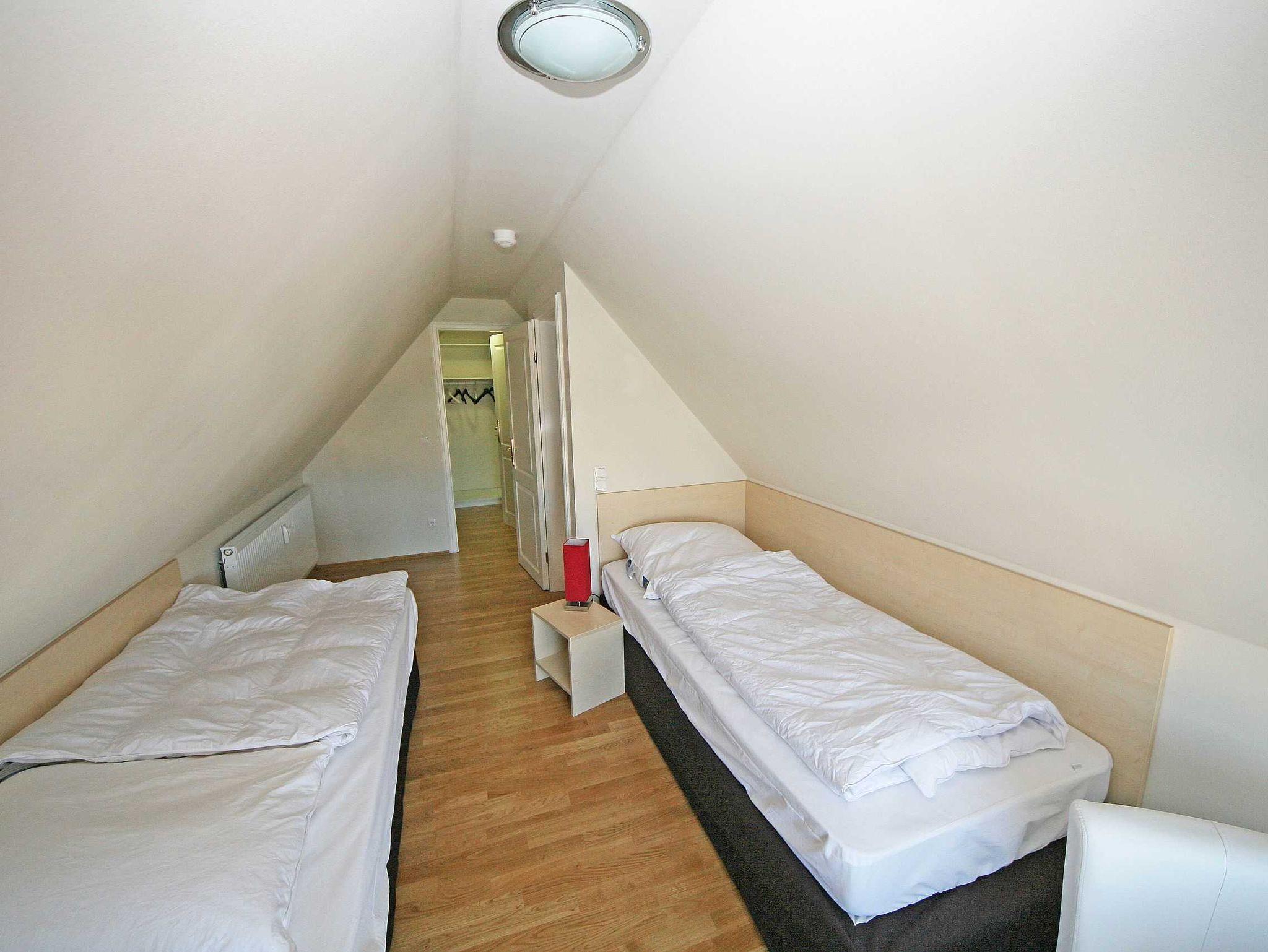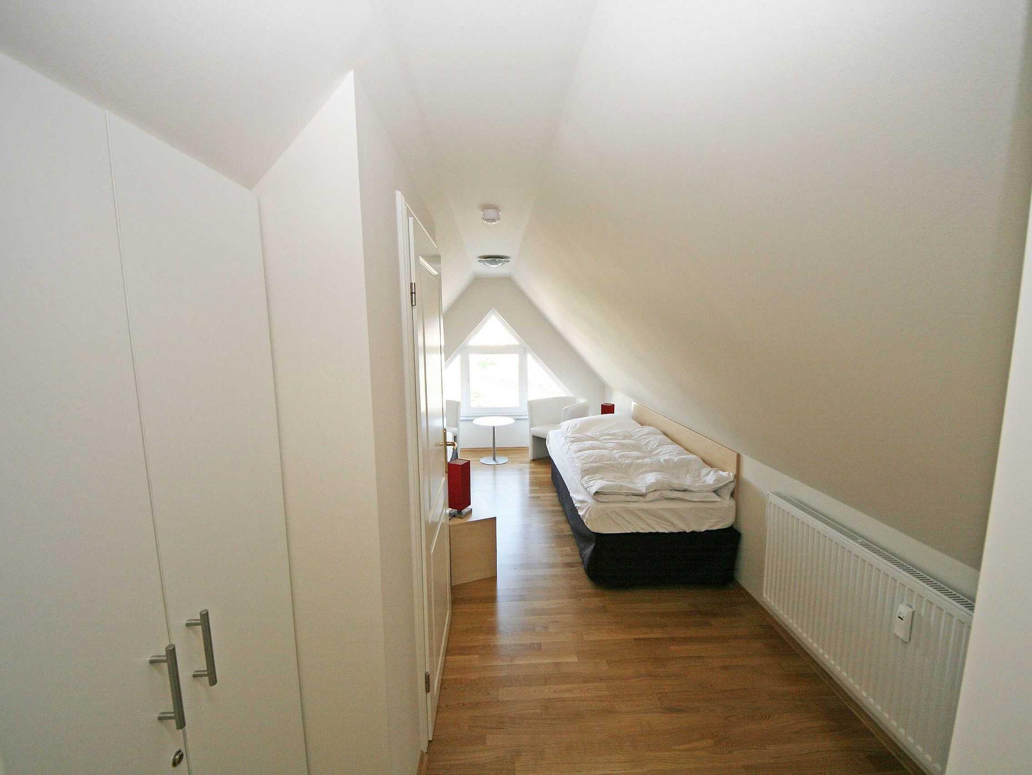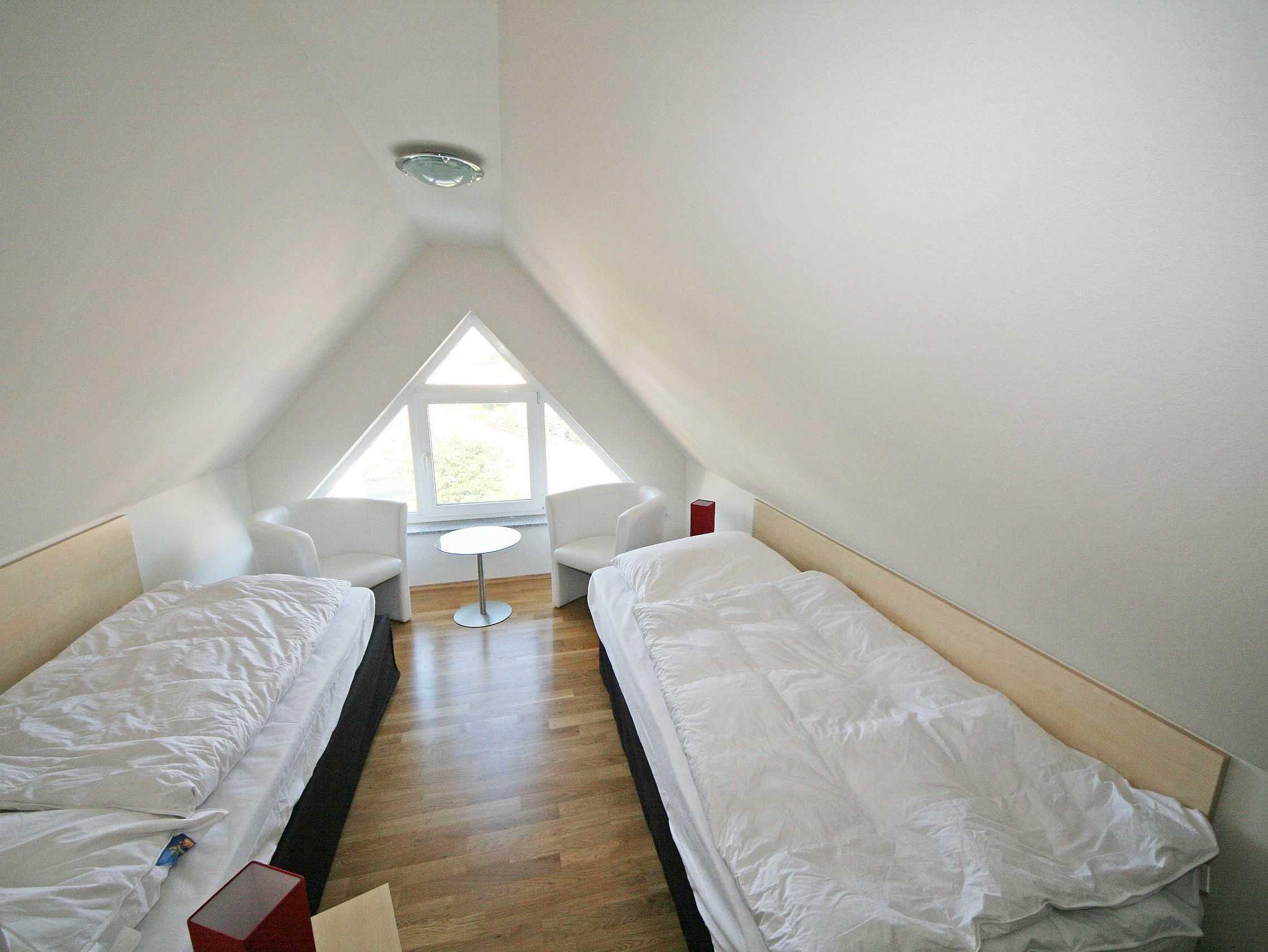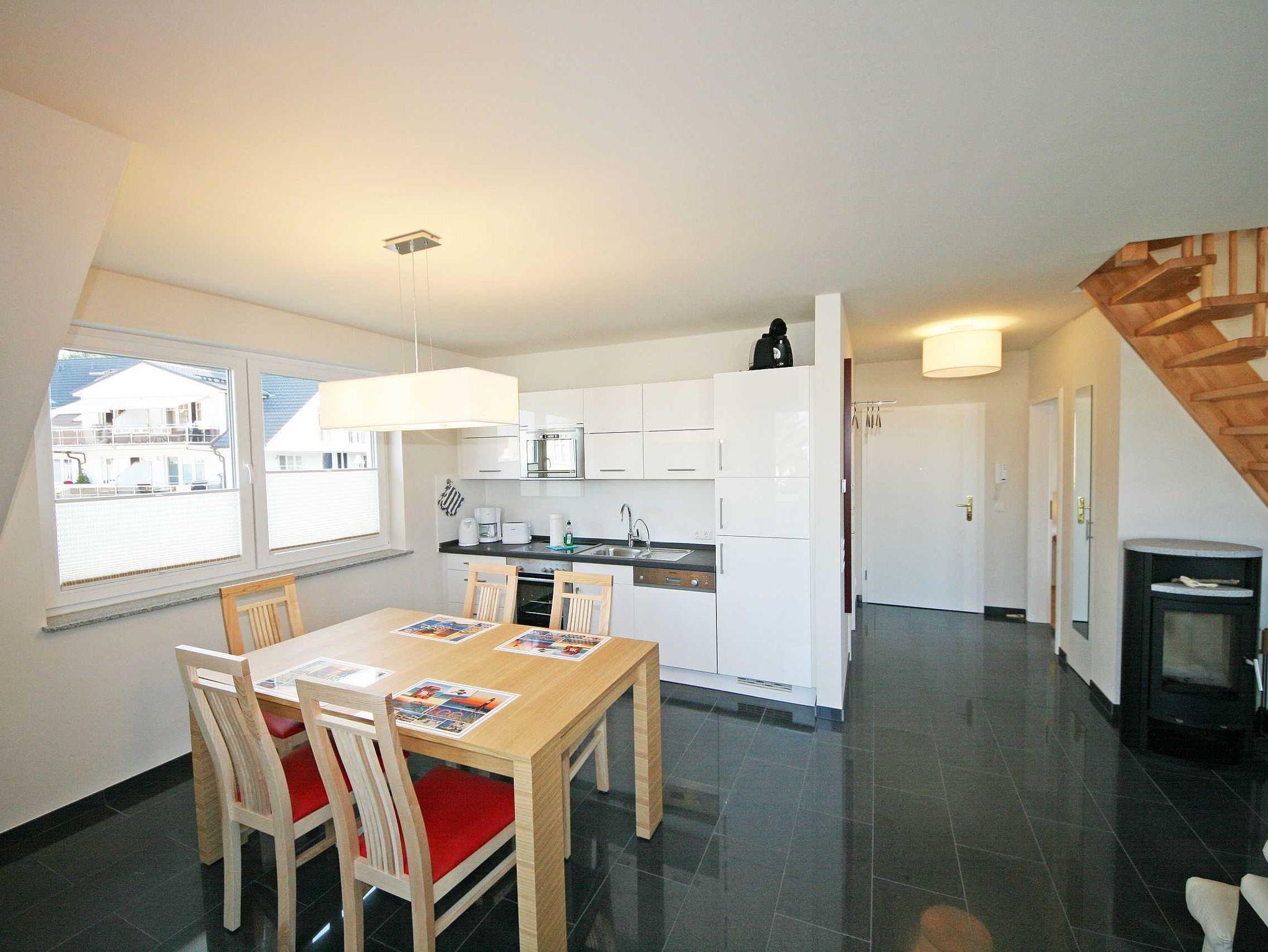 Das 3-Raumappartement (Nichtraucher) befindet sich im Ober- und Dachgeschoss (Achtung: steile Treppe) und bietet Ihnen mit 75 qm ausreichend Platz für 2 - 4 Personen. Die Wohnung ist im gehobenen Standard eingerichtet und enthält zudem ein Trinkwasserfiltersystem. An kälteren Abenden sorgt ein Kaminofen für eine wohlige Wärme und gemütliche Atmosphäre. In der Ferienwohnung wurde ein hochwertiger Stein- & Parkettboden verlegt. Der Wohnraum ist mit einer gemütlichen Couch und Sessel, LED-TV und einer Stereoanlage ausgestattet. Auch auf einen Internetanschluss (WLAN) müssen Sie im Urlaub nicht verzichten. Dieser ist inklusive für Sie. Vom Wohnzimmer sowie vom Schlafzimmer aus gelangen Sie auf die Balkone mit Blickrichtung Süden. Der zweite Balkon geht vom Wohnbereich ab und ist mit schönen Korbmöbeln ausgestattet. Die offene und exklusive Küche ist im Wohnbereich integriert und komplett ausgestattet. Küchengeräte wie Ceranfeld, Backofen, Geschirrspüler, Kühlschrank mit Gefriermöglichkeit, Mikrowelle sowie Kaffeemaschine, Wasserkocher, Toaster sowie eine Essecke und weitere Küchenutensilien runden den Koch- und Küchenbereich ab. Im ersten Schlafzimmer befinden sich ein Doppelbett (1,60 x 2,00m), Nachtischkonsolen und ein Kleiderschrank. Das obere Schlafzimmer ist durch Plissees verdunkelbar, hier sind 2 Einzelbetten vorhanden (die auch als Doppelbett gestellt werden können) sowie ein begehbarer Kleiderschrank. Hier ist ausreichend Platz, um Koffer oder Reisetaschen zu verstauen. Das Bad wird durch eine Dusche, Waschtisch mit großem Spiegel, Fön und ein WC abgerundet. Zusätzlich steht Ihnen eine Waschmaschine zur Verfügung, die zur Nutzung inklusive ist. Ein für Sie reservierter PKW-Stellplatz Nr. 05 ist ebenso vorhanden. Haustiere sind in der Wohnung nicht erlaubt. Die Erstausstattung eines Wäschepaketes (komplette Bettwäsche, 1 Duschhandtuch, 2 kleine Handtücher) können Sie bis 14 Tage vor Anreise gegen einen Aufpreis dazu buchen oder durch eigene ergänzen. Ab 2 gebuchten Paketen erhalten Sie einmalig 1 Geschirrhandtuch und 1 Duschvorleger hinzu.
