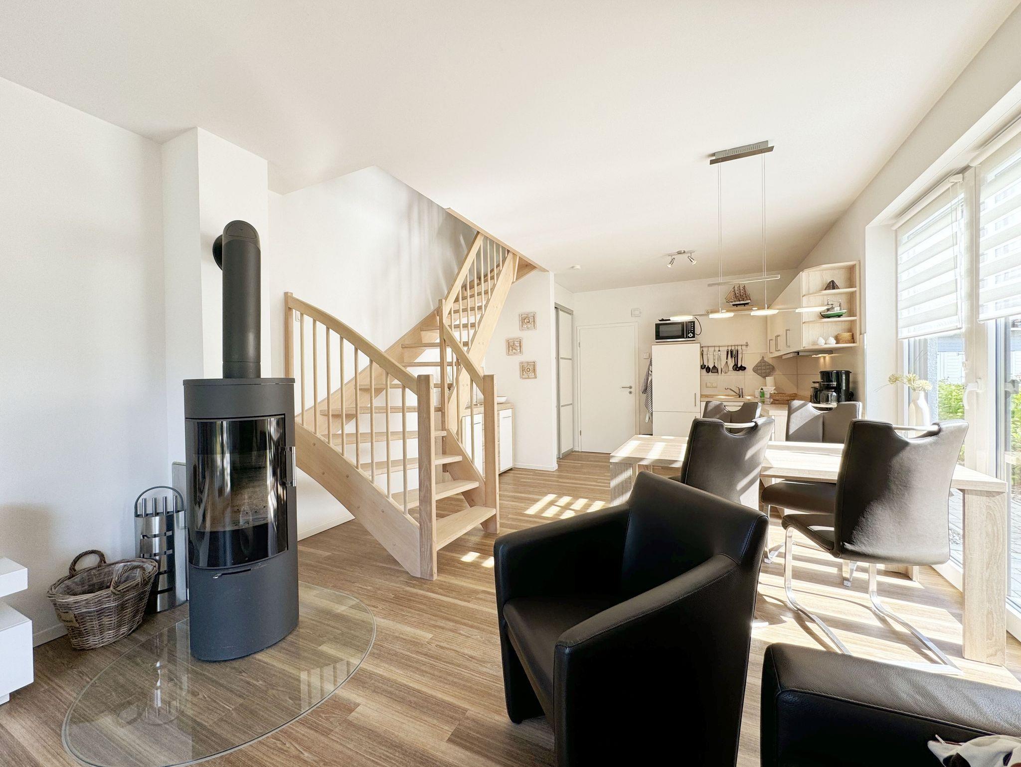 Modernes Ferienhaus mit Kamin, Südterrasse und nur 150 m vom Ostseestrand in Thiessow entfernt.