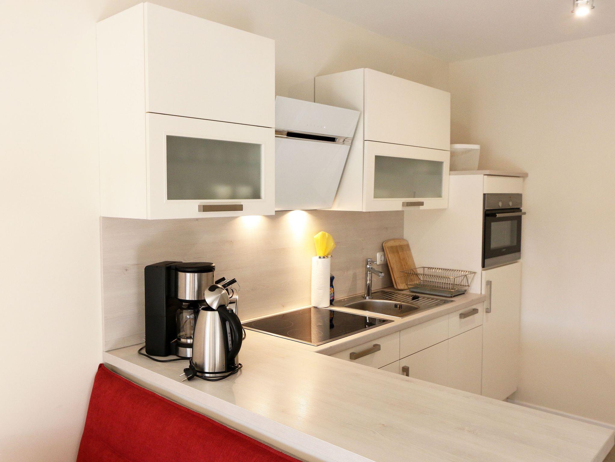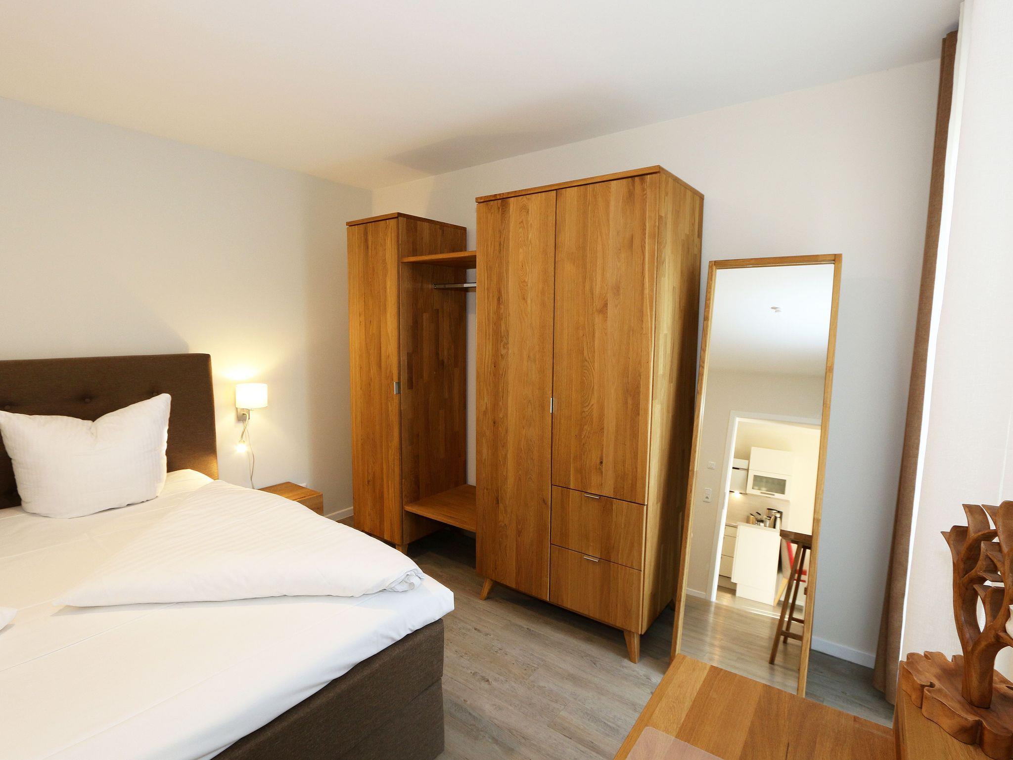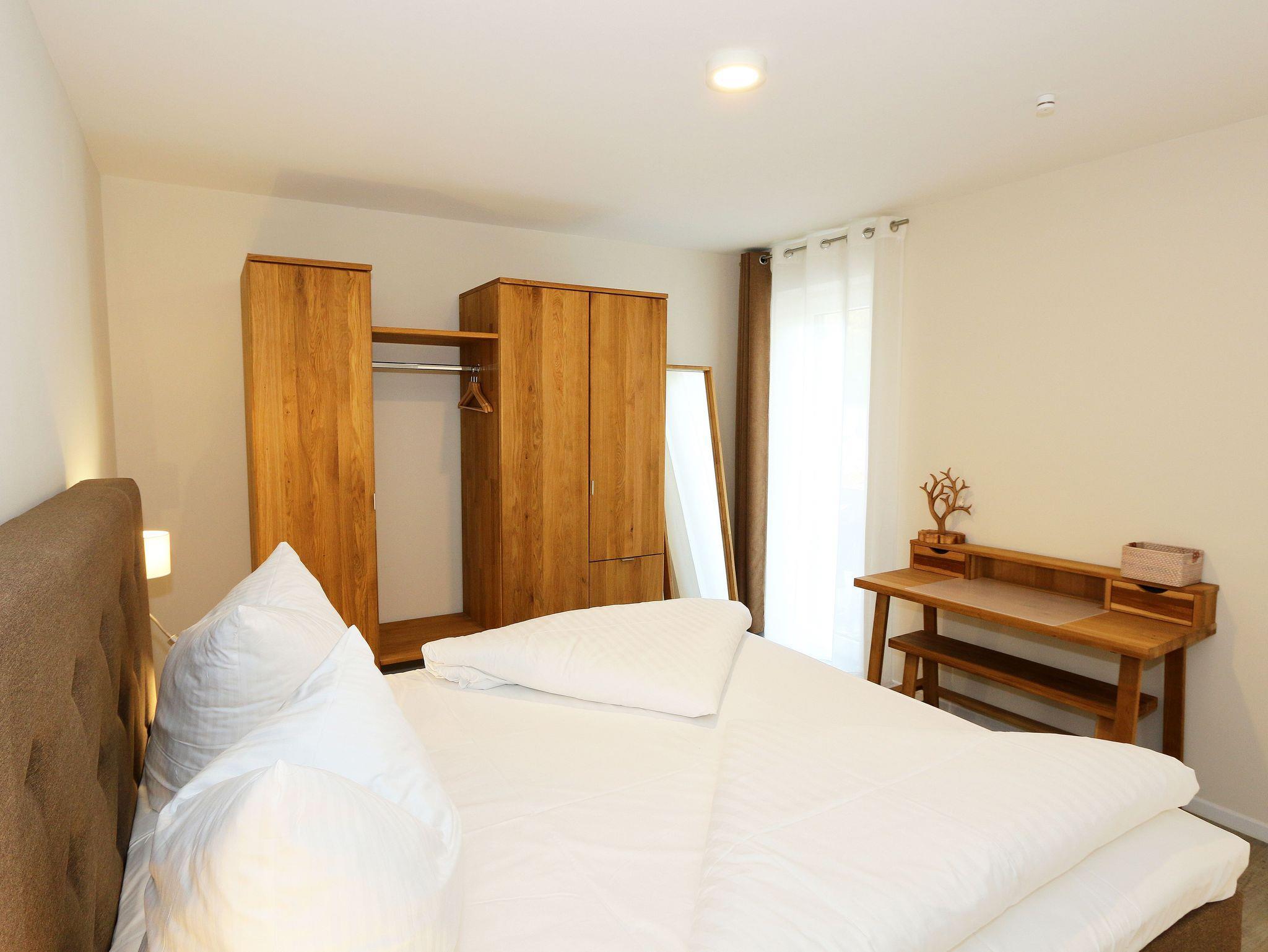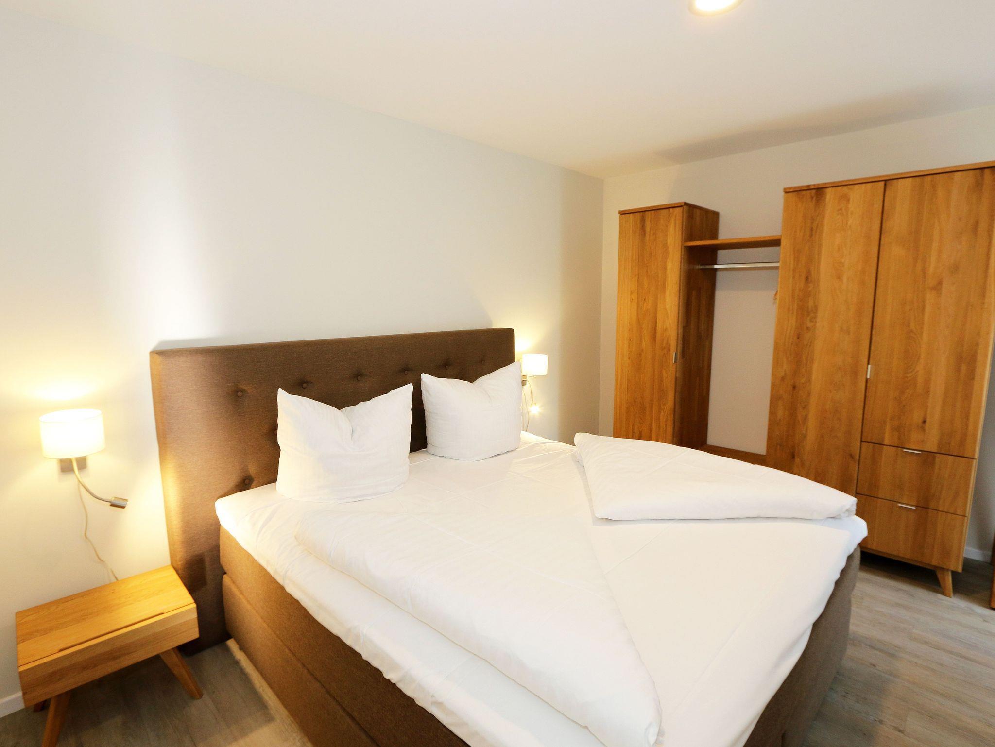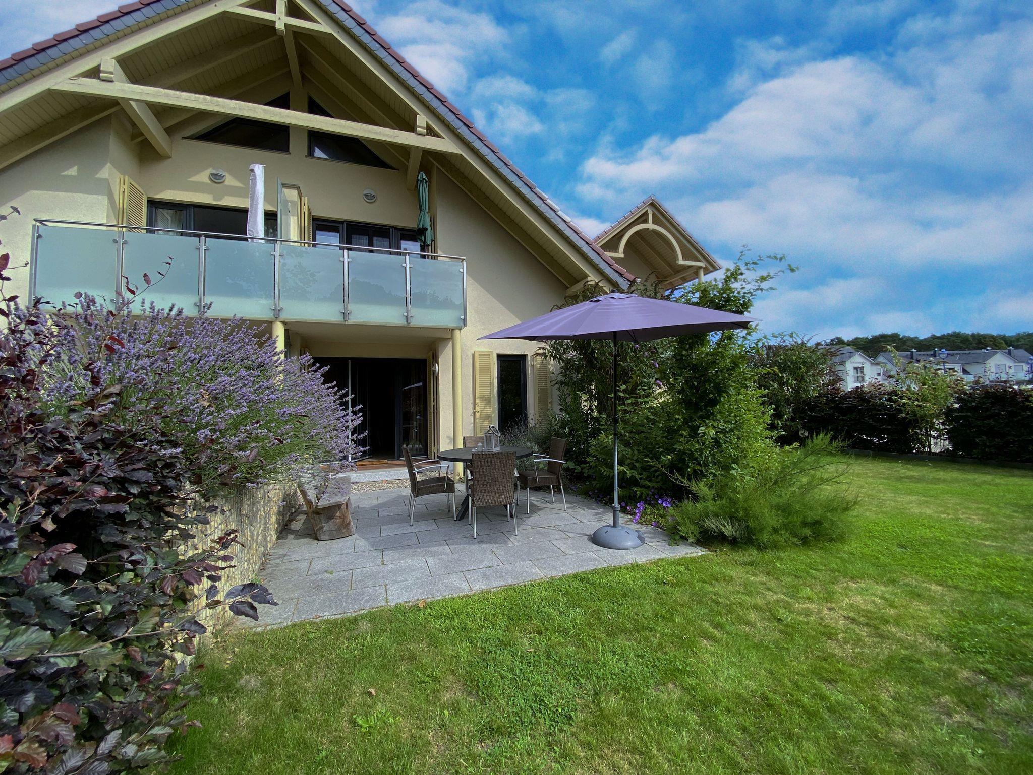Die geschmackvolle im Erdgeschoß liegende Nichtraucherwohnung bietet Ihnen mit Ihren ca. 78qm ausreichend Platz für max. 2 bis 3 Erwachsene + 1 Kleinkind bis 3 Jahre im Kinderreisebett. Der offene, in maritimen Farben eingerichtete Wohnbereich ist mit hochwertigen und modernen Massivholzmöbeln ausgestattet. Eine Couch (Aufbettung für 3.Person 0,90m x 2,00m), ein Couchtisch, zwei Leselampe, ein Kamin Pelletofen für die kältere Jahreszeit, ein TV-Board mit Smart-TV sowie eine Bose Soundbar runden den Wohnbereich ab. Auch auf einen Internetanschluss (WLAN) müssen Sie nicht verzichten und somit können Sie die gängigen Streamingdienste am Smart-TV mit Ihrem Zugang nutzen. Dieser ist für Sie inklusive. Die angrenzende Küchenzeile passt sich dem Raum mit einem bequemen Essbereich an. Durch einen Kühlschrank mit Gefrierfach, eine Spülmaschine, einen Backofen, einem 4 Zonen-Cerankochfeld, eine Kaffeemaschine mit Thermoskanne, Nespresso Maschine mit Aufschäumer, einen Toaster, einen Wasserkocher und diverse Küchenhelfer lässt die Ausstattung für die gemeinsamen Mahlzeiten keine Wünsche offen. Auf die große und bestuhlte Terrasse mit Sonnenschirm und einem Weber-Holzkohlegrill, welche einmal nach Osten und nach Süden ausgerichtet ist, gelangen Sie vom Wohnbereich. Hier können Sie nicht nur in Ruhe Ihre Mahlzeiten genießen, sondern auch den Tag bei einem Glas Wein ausklingen lassen. Der dazugehörige kleine Garten kann gerne für ein König Spiel oder ein Federball Match genutzt werden oder einfach nur zum Genießen. Das Schlafzimmer ist mit einem Boxspringbett (1,80m x 2,00m), durchgehendem Topper, Nachttischablagen, einem Kosmetiktisch, Kleiderablage, sowie einem Kleiderschrank ausgestattet. Für einen ruhigen und angenehmen Schlaf sorgen zudem die Insektenschutzrollos sowie die Fensterläden, welche Sie auch in den anderen Räumlichkeiten wiederfinden. Das innenliegende Bad verfügt über eine ebenerdige Regendusche, einen Waschtisch, ein WC, einen Kosmetikspiegel, eine Waschmaschine, einen Fön und beheizbaren Handtuchtrockner. Alle Räumlichkeiten sind mit einer Fußbodenheizung versehen und sorgen somit für ein angenehmes Raumklima. Im wohnungseigenen Abstellraum befindet sich ein Wäscheständer, ein Staubsauger sowie weitere Reinigungshelfer. Gerne darf Ihr 4-Beiner mit eigenem Schlafplatz gegen eine Gebühr mitreisen. Ein PKW-Stellplatz (Nr. 02) befindet sich direkt vor dem Haus. Im dazugehörigen Schuppen (Nr.02) können Sie gerne Ihre mitgebrachten Fahrräder unterstellen und Ihre E-Bikes aufladen. Die Erstausstattung eines Wäschepaketes (komplette Bettwäsche, 1 Duschhandtuch, 2 kleine Handtücher) können Sie bis 14 Tage vor Anreise gegen einen Aufpreis dazu buchen oder durch eigene ergänzen. Ab 2 gebuchten Paketen erhalten Sie einmalig 1 Geschirrhandtuch und 1 Duschvorleger hinzu.