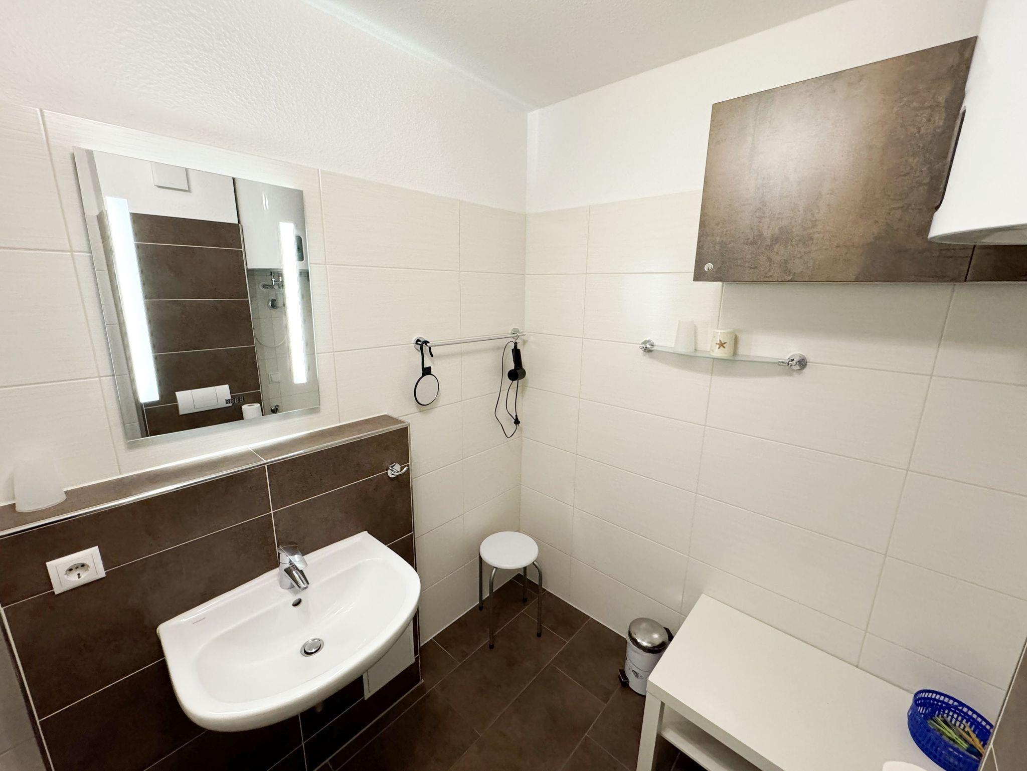 Die Nichtraucherferienwohnung Nr. 04 befindet sich im Erdgeschoss des Hauses und verfügt über eine Wohnfläche von ca. 50 qm. Die Ferienwohnung ist für 2 bis 4 Personen ausgelegt. Im kombinierten Wohn- und Essbereich befindet sich integrierte Küchenzeile. Die komplett ausgestattete Küchenzeile verfügt über ein Cerankochfeld, Backofen, Dunstabzugshaube, Kühlschrank mit Gefrierfach, Spülmaschine, Kaffeemaschine, Mikrowelle, Wasserkocher, Toaster und weitere diverse Küchenutensilien. Der Esstisch mit Bestuhlung ist für 4 Personen geeignet. Vom Wohnbereich aus gelangen Sie durch die Terrassentür auf die Terrasse. Das im Wohnbereich vorhandene Schlafsofa verfügt über eine Ausziehfunktion (1,30m x 2,00m) und kann von 2 Personen gut genutzt werden. Ein kleiner Couchtisch, Leselampe, TV-Board mit Smart-TV, Receiver, DVD/Blu-Ray-Player und Ministereoanlage runden den Wohnbereich ab. Auch im Urlaub brauchen Sie auf einen Internetanschluß (WLAN) nicht verzichten. Dieser ist für Sie inklusive. Das im Schlafbereich vorhandene Doppelbett hat eine Größe von 1,80m x 2,00m, Nachttischkonsolen und einen Kleiderschrank, der für die Unterbringung der Kleidung im Schlafbereich sorgt. Das Bad rundet mit einem WC, Waschbecken, Kosmetikspiegel, Fön, Dusche, und Handtuchwärmeheizkörper die Wohnung komplett ab. In allen Räumen sorgt eine Fußbodenheizung für angenehme Wärme. Die wohnungseigene Terrasse verfügt über einen Terrassentisch + 4 Stühlen, Elektrogrill und ist Richtung Süd/West ausgerichtet. Die Fenster haben Außenjalousien. Ein eigener PKW-Stellplatz Nr. 04 befindet sich auf dem Grundstück, mitgebrachte oder gemietete Fahrräder können im wohnungseigenen Abstellraum untergestellt werden. 1 gut erzogenes Haustier ist gegen eine Gebühr ein gern gesehener Gast. Die Erstausstattung eines Wäschepaketes (komplette Bettwäsche, 1 Duschhandtuch, 2 kleine Handtücher) können Sie bis 14 Tage vor Anreise gegen einen Aufpreis dazu buchen oder durch eigene ergänzen. Ab 2 gebuchten Paketen erhalten Sie einmalig 1 Geschirrhandtuch und 1 Duschvorleger hinzu.