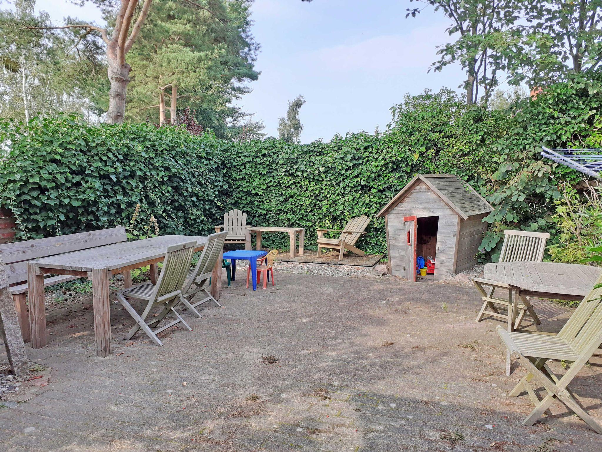 Am Haus befindet sich im Innenhof ein Garten mit Gemeinschaftsterrasse und Grill, Wäscheplatz, Spielhaus sowie ein Parkplatz.