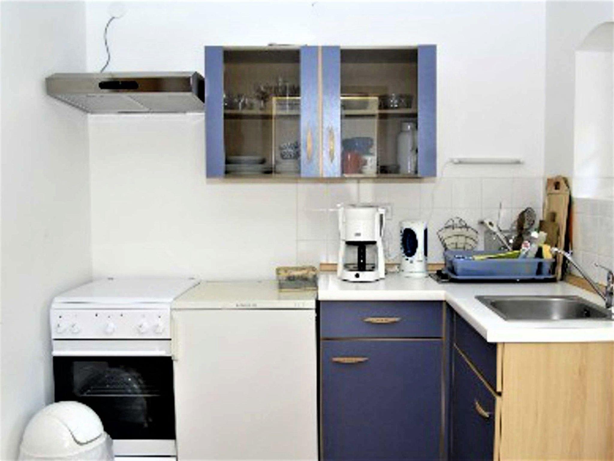 Kleine, gemütlich eingerichtete Ferienwohnung für 2 Personen. Kombinierter Wohn-/Schlafraum mit Doppelbett, kleine separate Küche, Dusche/WC, überdachte Terrasse, WLAN.