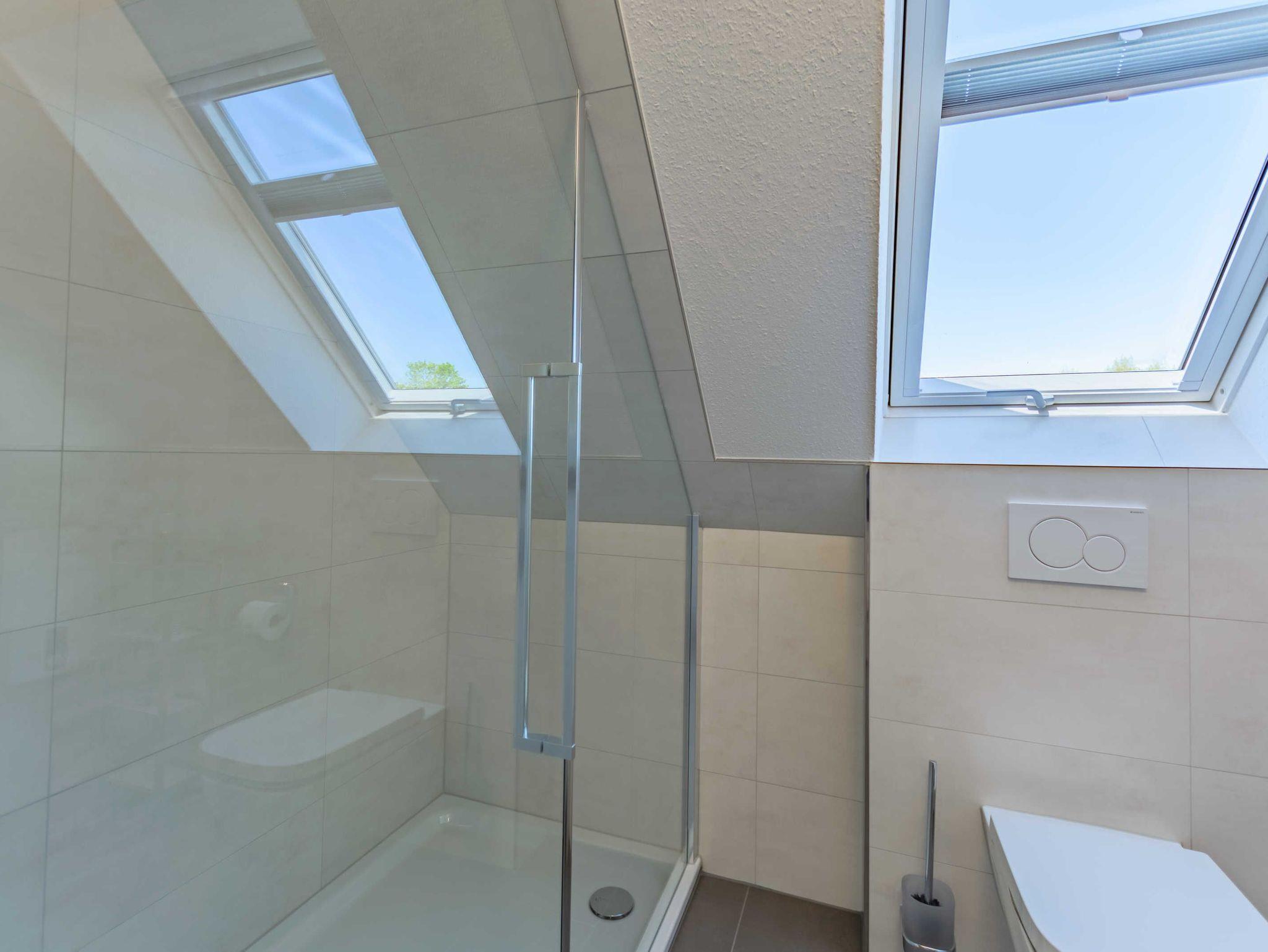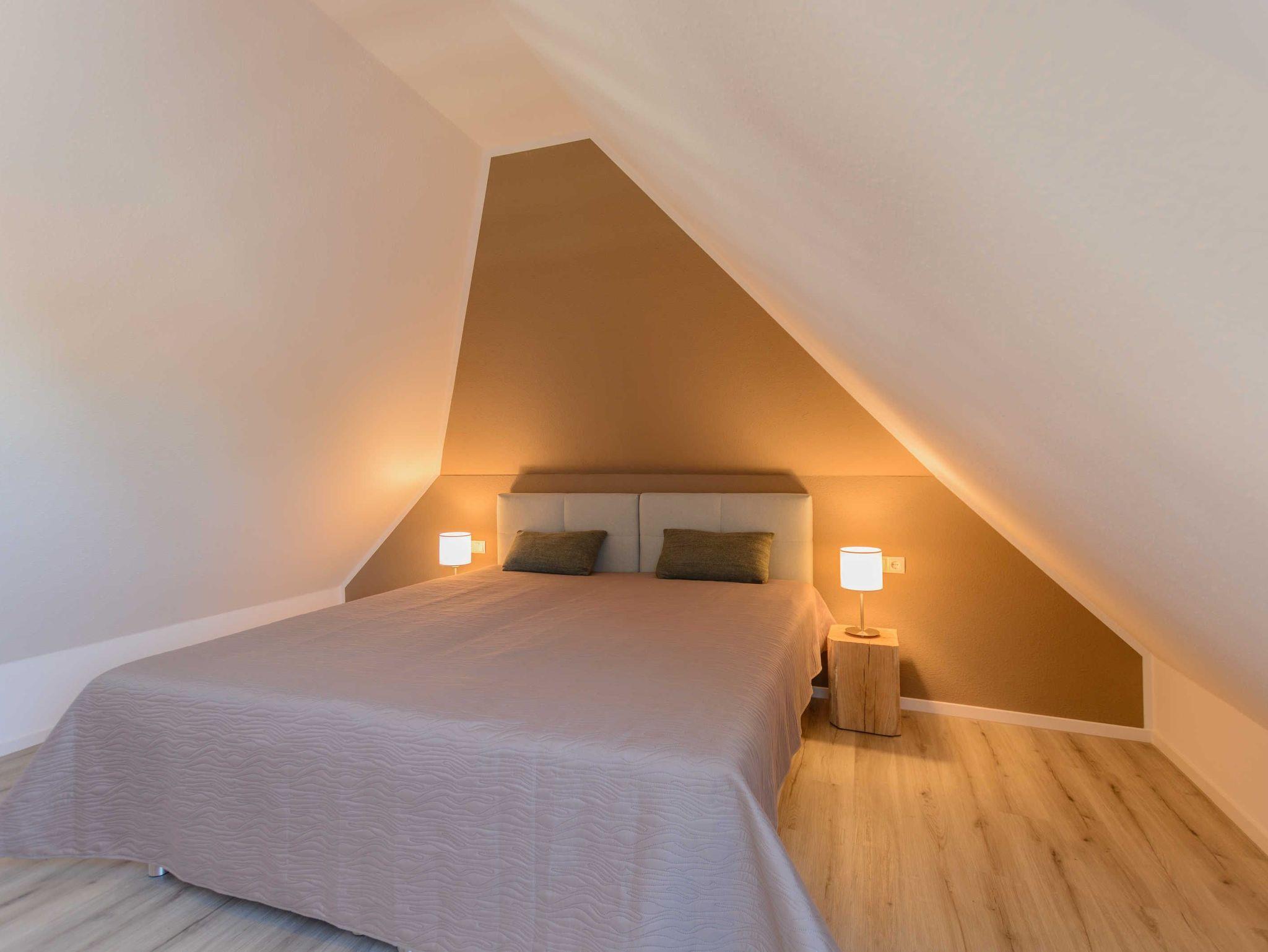 Die Nichtraucherferienwohnung befindet sich in der 1. Etage und erstreckt sich über 2 Etagen. Mit Ihren ca. 75 qm können sich max. 6 Erwachsene wohlfühlen. Der großzügige und helle Wohn- Essbereich ist mit einer modernen Küchenzeile ausgestattet. Mit einem Kühlschrank mit Eisfach, Geschirrspüler, Cerankochfeld, Backofen, Mikrowelle, Wasserkocher, Kaffeemaschine, Toaster, Mixer, Waffeleisen können Sie Ihre gemütlichen Kochabende ganz individuell gestalten. Ein passender Essbereich rundet die Gemütlichkeit ab. Im angrenzenden Wohnbereich trägt eine bequeme Couch (Aufbettungsmöglichkeit für 5./6.Person, 1,50m x 1,95m) mit Couchtisch, ein Lesesessel mit Hocker sowie ein TV-Board zu Ihrer Entspannung bei. Die technische Ausstattung umfasst einen Smart-TV, ein DAB-Bluetooth-Radio sowie einen WLAN-Anschluss. Vom Wohnbereich gelangen Sie auf Ihren bestuhlten Balkon (Süd) mit Sonnenschirm, von wo Sie aus Ihren Tag entspannt bei einem Glas Wein ausklingen lassen können. Hell und freundlich eingerichtet erwartet Sie ein gemütliches Schlafzimmer auf gleicher Ebene, mit einem komfortablen Boxspring-Bett (1,80m x 2,00m) mit 5 Zonen Tonnen-Taschenfederkern-Matratzen, Nachttischablagen, einen großzügigen Kleiderschrank sowie ein Smart-TV. Das 2. Schlafzimmer erreichen Sie durch eine Treppe, welche vom Wohnbereich aus startet. Hier befindet sich ebenfalls ein bequemes Boxspringbett (1,80m x 2,00m) mit Nachttischablagen sowie einer kleinen Leseecke oder Relax-Ecke. Beide Schlafbereiche verfügen zudem über Vorhänge/Rollos, die nahezu lichtundurchlässig sind und einen guten Sicht- und Sonnenschutz bieten. Für einen angenehmen Schlaf sorgen zusätzlich Insektenschutzgitter im Wohn- & Schlafbereich. Das Tageslicht-Badezimmer ist mit einer ebenerdigen Dusche, einem WC, einen Handtuchtrockner, einem Fön sowie einem Waschtisch ausgestattet. In der Wohnung finden Sie zusätzlich ein Staubsauger, ein Besen mit Kehrset, ein Wäscheständer sowie ein Wäschekorb. Im Nachbarhaus C können Sie eine Waschmaschine sowie einen Trockner gegen Gebühr nutzen. Hier stehen auch ein Bügelbrett und ein Bügeleisen zur Verfügung. Haustiere sind nicht erlaubt. Das Grillen auf dem ausgewiesenen Gemeinschaftsplatz lädt zu gemütlichen Abenden ein. Zur Entspannung lädt eine münzbetriebene Sauna mit kleinem Ruheraum im Untergeschoss von Haus B ein. Ihre Fahrräder können Sie begrenzt im Gemeinschaftskeller oder auf dem Grundstück abstellen. Ein PKW-Stellplatz steht Ihnen inklusive zur Verfügung. Die Erstausstattung eines Wäschepaketes (komplette Bettwäsche, 1 Duschhandtuch, 2 kleine Handtücher) können Sie bis 14 Tage vor Anreise gegen einen Aufpreis dazu buchen oder durch eigene ergänzen. Ab 2 gebuchten Paketen erhalten Sie einmalig 1 Geschirrhandtuch und 1 Duschvorleger hinzu.