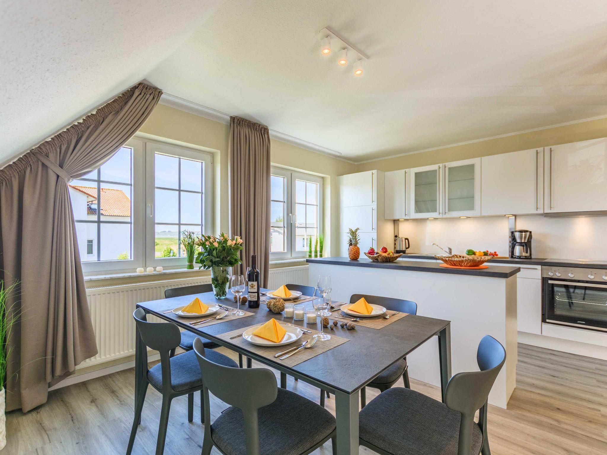 Hotel war gestern! Herzlich willkommen in den Lotsenberg Apartments! Ihr Platz am Meer! Kilometerlanger Strand, Ostseewellen und ordentlich Wind. Das Ostseebad Thiessow auf der Halbinsel Mönchgut hat alles, was es für einen entspannten Urlaub am Meer braucht. Und das schöne ist: Es funktioniert im Sommer wie im Winter. Nur eben mit passender Bekleidung. Unsere 8 Ferienwohnungen liegen direkt am Lotsenberg, sind top ausgestattet und bieten viel Platz für Paare, Familien und Freunde. Komfort und Privatsphäre in einem. Neugierig? Schauen Sie mal, was unsere Apartments zu bieten haben! URLAUBSFEELING PUR - In den Lotsenberg Apartments kombinieren wir die schönen Dinge mit den schönen Dingen. Ja, richtig gehört. Wir stellen Ihnen schicke Ferienwohnungen mit komfortabler Ausstattung und viel Privatsphäre ein eigenes Reich am Meer eben! In ruhiger Lage direkt am Lotsenberg genießen Sie den Blick auf den Lotsenturm oder die kurzen Wege zum Ostseestrand. Im regenärmsten Teil Rügens finden Sie Ihren idealen Ausgangspunkt für Ihren Urlaub zum Baden, Wassersport, Radfahren, Wandern oder Relaxen. SIE HABEN DIE WAHL. Welche Ferienwohnung ist die richtige für Sie? Urlaub bedeutet für jeden etwas anderes: Die einen verreisen gern allein oder zu zweit, die anderen packen am liebsten die ganze Familie oder ein paar gute Freunde ein. Um für all unsere Gäste das passende Apartment immer parat zu haben, stehen zwei verschiedene Wohnungstypen zur Auswahl. Wir bieten Apartments für Paare, Familien, Freunde oder alle zusammen. In zwei Häusern stehen insgesamt acht Ferienwohnungen für Ihre Auszeit bereit, vier Ferienwohnungen für bis zu 4 Personen als auch vier Ferienwohnungen für bis zu 6 Personen. Zur Entspannung lädt eine münzbetriebene Sauna mit kleinem Ruheraum im Untergeschoss von Haus B ein. Zum kinderfreundlichen Strand, einer langgezogenen Bucht an der wunderschönen Ostsee, sind es gerade einmal 5 Minuten zu Fuß. Eine Einkaufsmöglichkeit für den täglichen Bedarf, eine Bushaltestelle und einen Fahrradverleih finden Sie in einem Umkreis von maximal 500 m.