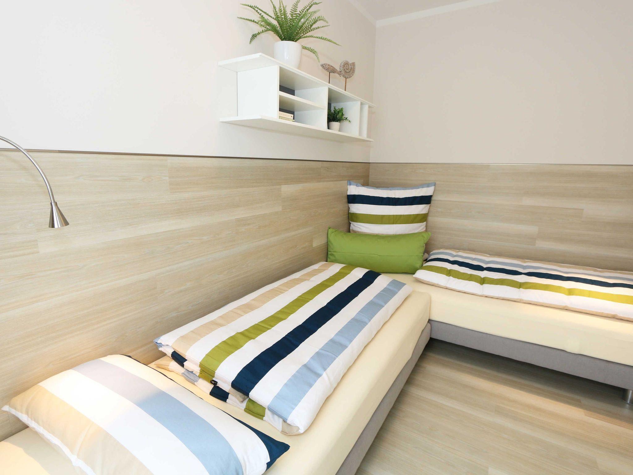Die 70 m² große Nichtraucherwohnung Nr. 02 Seeschwalbe im Haus Windrose befindet sich im Erdgeschoss und bietet Ihnen Platz für 2 bis max. 4 Erwachsene. Eine durchdachte Raumaufteilung sowie eine hochwertige Ausstattung bieten Ihnen alle Möglichkeiten für einen erholsamen Urlaub. Die eingerichtete Einbauküche befindet sich im kombinierten Koch-/Essbereich. Ein Geschirrspüler, ein Kühlschrank mit Eisfach, 4 Zonen Ceranfeld mit Backofen, eine Kaffeemaschine Mokkamaster KBG Select, ein Toaster, ein Wasserkocher, sowie diverse Küchenutensilien bietet Ihnen somit alles, was Sie zum Kochen benötigen. Im angrenzenden Essbereich steht ein großer Esstisch mit 4 Stühlen zur Verfügung. Von dem Ess-/Wohnbereich gelangen Sie direkt auf die bestuhlte 26 m² Terrasse (Süd/West) davon 13 m² überdacht sowie ein Sonnenschirm und Relaxsessel. Entspannen und Relaxen Sie in einem Wohnbereich der mit modernen weißen Hülsta Möbeln, eine gemütliche Ledercouch sowie 2 Sessel, zwei Couchtischen und zwei Stehlampen ausgestattet ist. Ein DAB-Radio mit CD-Player und Bluetooth, ein Smart-TV mit Soundbar, ein Blu-Ray-Player sowie diverse Gesellschaftsspiele tragen zu Ihrer Unterhaltung bei. Auch im Urlaub brauchen Sie auf einen Internetanschluß (WLAN) nicht verzichten. Dieser ist für Sie inklusive. Ein Schlafzimmer ist mit einem großen Schwebetürenschrank für Ihre Urlaubsgarderobe, mit einem bequemen Boxspringbett Hülsta (1,80 m x 2,00 m, durchgehender Topper), zwei Nachttischablagen und zwei Leselampen ausgestattet. Das kleine Schlafzimmer ist mit zwei übereckstehenden Liegen (0,80 m x 2,00 m), zwei Leselampen, diversen Ablagemöglichkeiten und zwei kleinen Schränken eingerichtet. Das moderne Bad mit Waschplatz, WC, Fön, Spiegelschrank, Kosmetikspiegel, einer ebenerdigen komfortablen Regendusche mit Echtglasabtrennung und einen Handtuchtrockner runden den Sanitärbereich ab. Eine Waschmaschine, ein Wäscheständer, ein Bügeleisen mit Bügelbrett, sowie ein Staubsauger stehen Ihnen zur Verfügung. Alle Räumlichkeiten sind mit Insektenschutzgitter, einer Fußbodenheizung sowie einer Raumlüftungsanlage ausgestattet und können durch Fensterläden verdunkelt werden. Ein PKW kann auf dem kostenfreien Stellplatz Nr. 02 direkt am Haus geparkt werden. Ihre mitgebrachten oder geliehenen Fahrräder können Sie in den zur Wohnung gehöhrenden abschließbaren Abstellraum Nr. 02 (am PKW Stellplatz) unterbringen. Hier befindet sich auch eine Anschlussmöglichkeit zum Aufladen von Pedelecs. Direkt am Haus befindet sich ein Grillplatz mit Sitzgelegenheiten. Haustiere sind nicht erlaubt. Die Erstausstattung eines Wäschepaketes (komplette Bettwäsche, 1 Duschhandtuch, 2 kleine Handtücher) können Sie bis 14 Tage vor Anreise gegen einen Aufpreis dazu buchen oder durch eigene ergänzen. Ab 2 gebuchten Paketen erhalten Sie einmalig 1 Geschirrhandtuch und 1 Duschvorleger hinzu. Wir wünschen Ihnen einen traumhaften und angenehmen Urlaub an der Ostsee, erholen Sie sich gut.