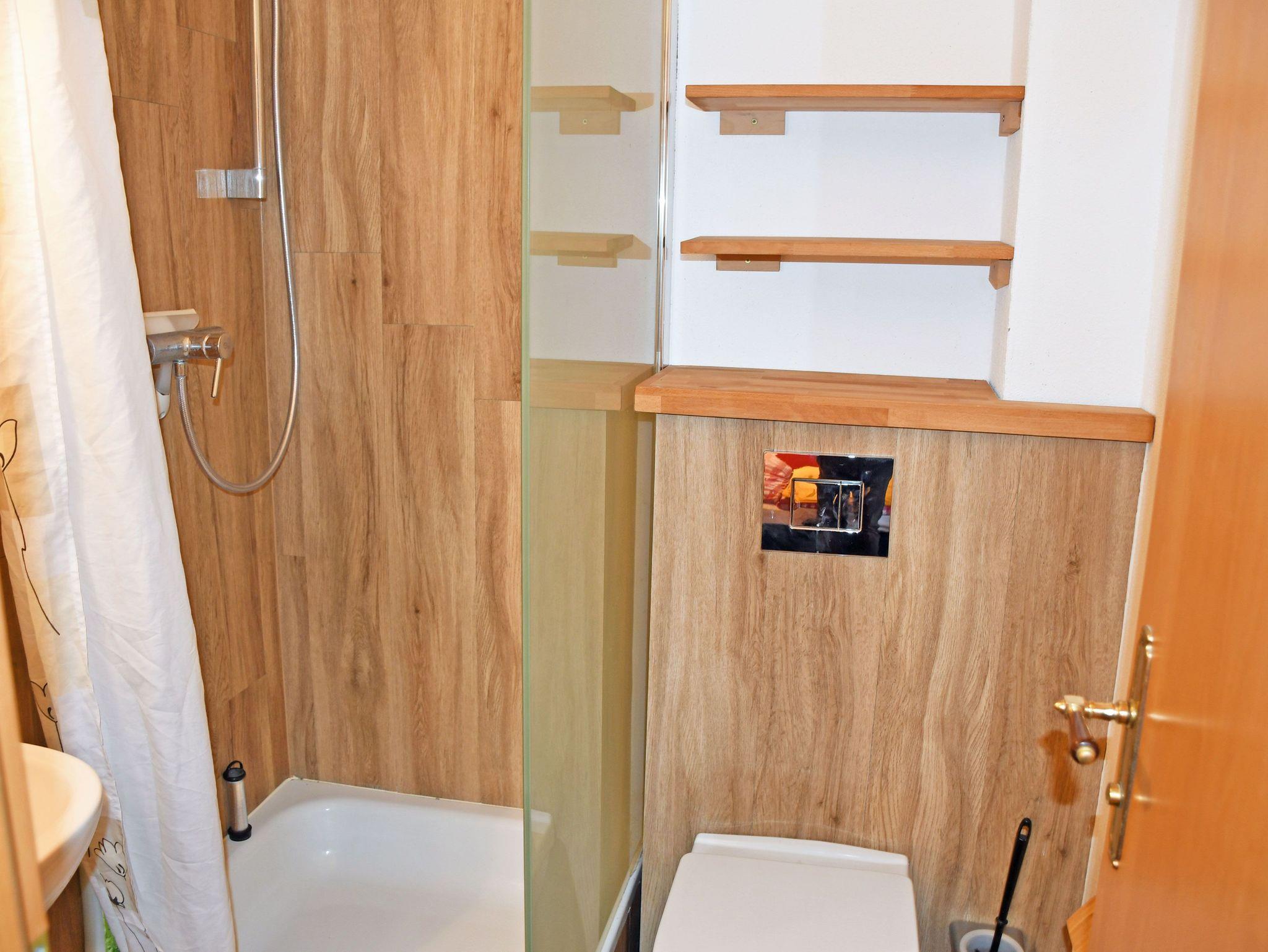 Das Bad ist mit Dusche, WC, Fön und Waschtisch ausgestattet.