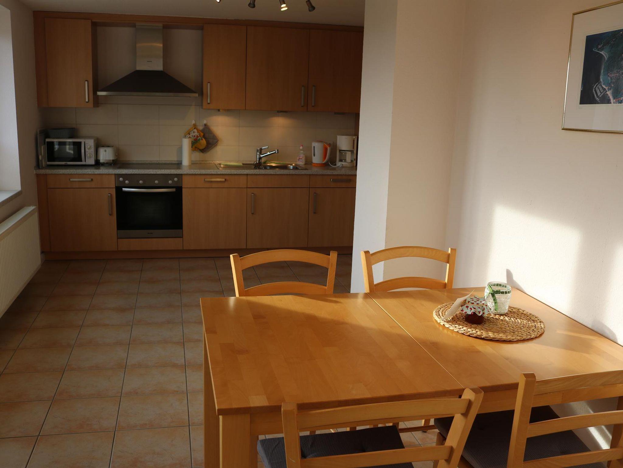 Für beide Ferienwohnungen gibt es zur gemeinsamen Benutzung in der Waschküche im Keller eine Waschmaschine, einen Trockner sowie ein Bügeleisen und ein Bügelbrett. Bettwäsche und Handtücher sind vorhanden.