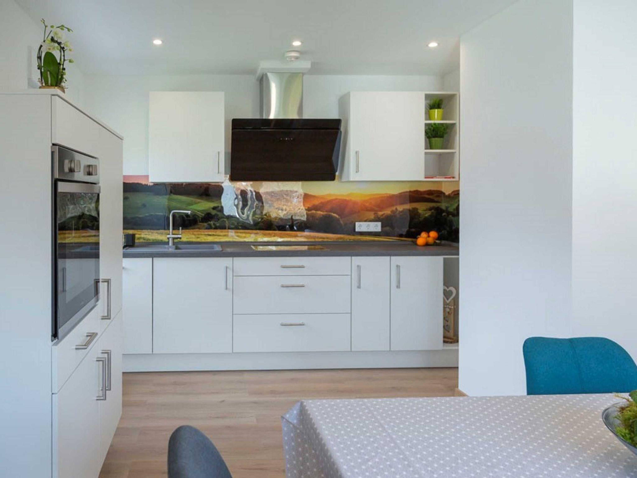 Es erwartet Sie: Ein Schlafzimmer mit Doppelbett, eine hochwertige Küche (u.a. Herd, Backofen, Kühlschrank, Spülmaschine, Kaffeemaschine, Wasserkocher, etc.) mit wunderschönem großzügig-geschnittenem Essbereich, ein Wohnzimmer mit Schlafcouch und Sat -TV und ein modernes Badezimmer mit großer Regendusche. Kostenfreies W-Lan.