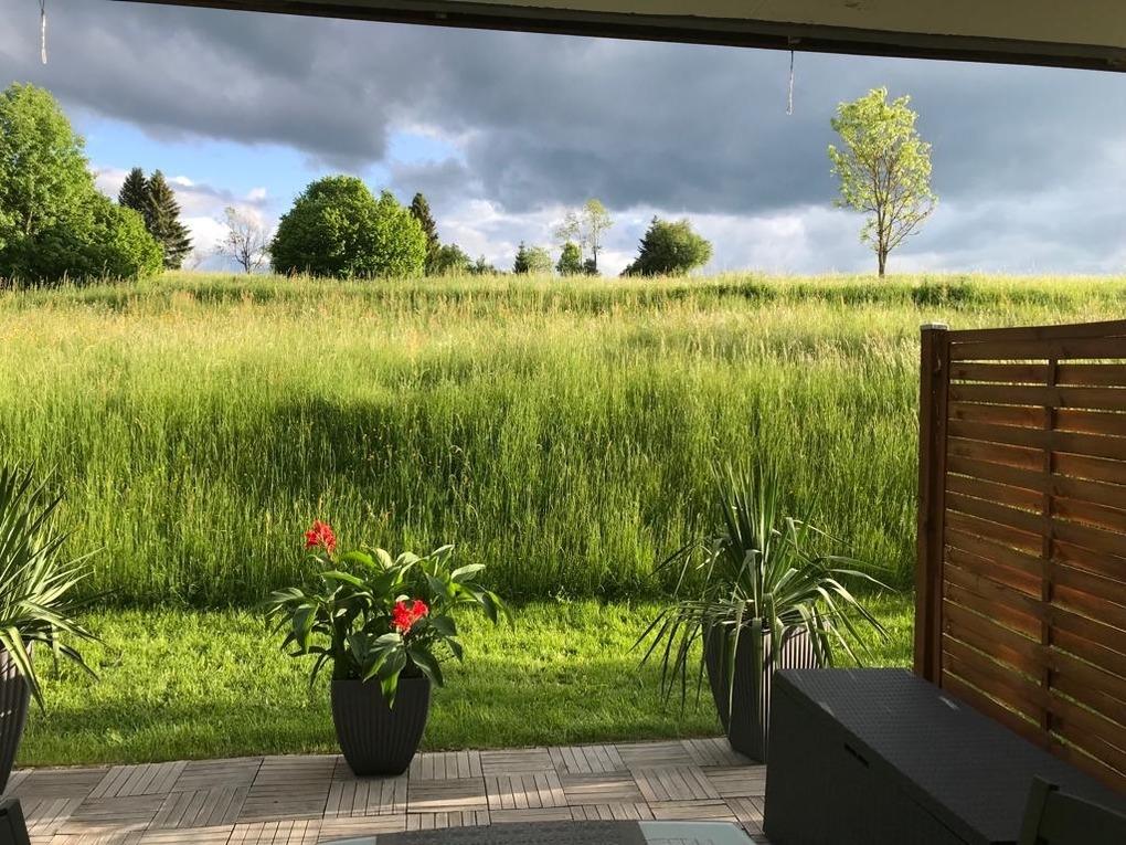 Die großzügige Terrasse ist gen Süden ausgerichtet und bietet einen atemberaubenden Blick über die Landschaft.