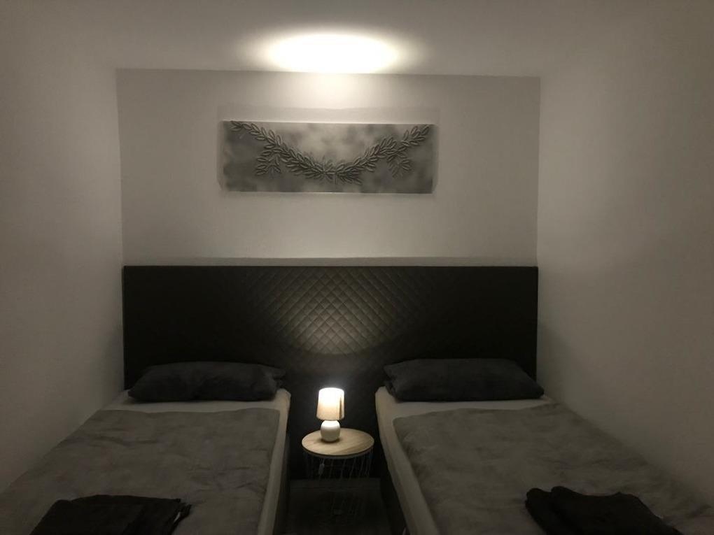 Die Schlafzimmer sind mit modernen Boxspringbetten ausgestattet, welche zusammengeschoben als Doppelbett oder auseinandergezogen als Einzelbett gestaltbar sind. Es sind also entweder 2 Doppelbetten oder 4 Einzelbetten möglich.