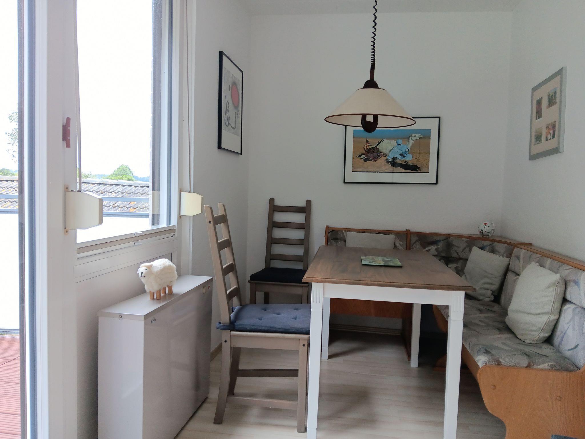 Auf dem Balkon können Sie den Schleiblick genießen.