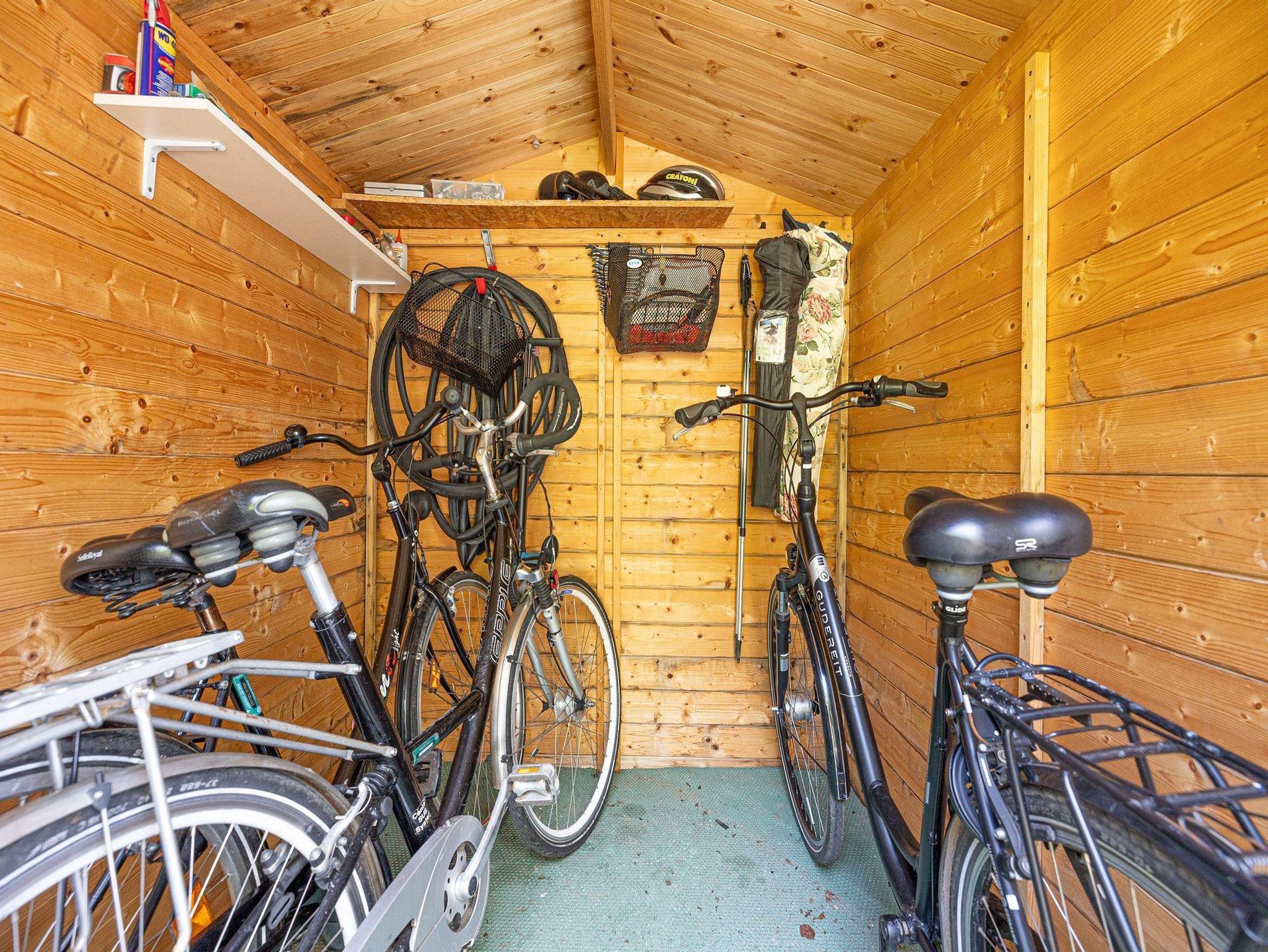 Am Haus befindet sich ein Stellplatz für das Auto und ein abschliessbares Fahrradhäuschen.