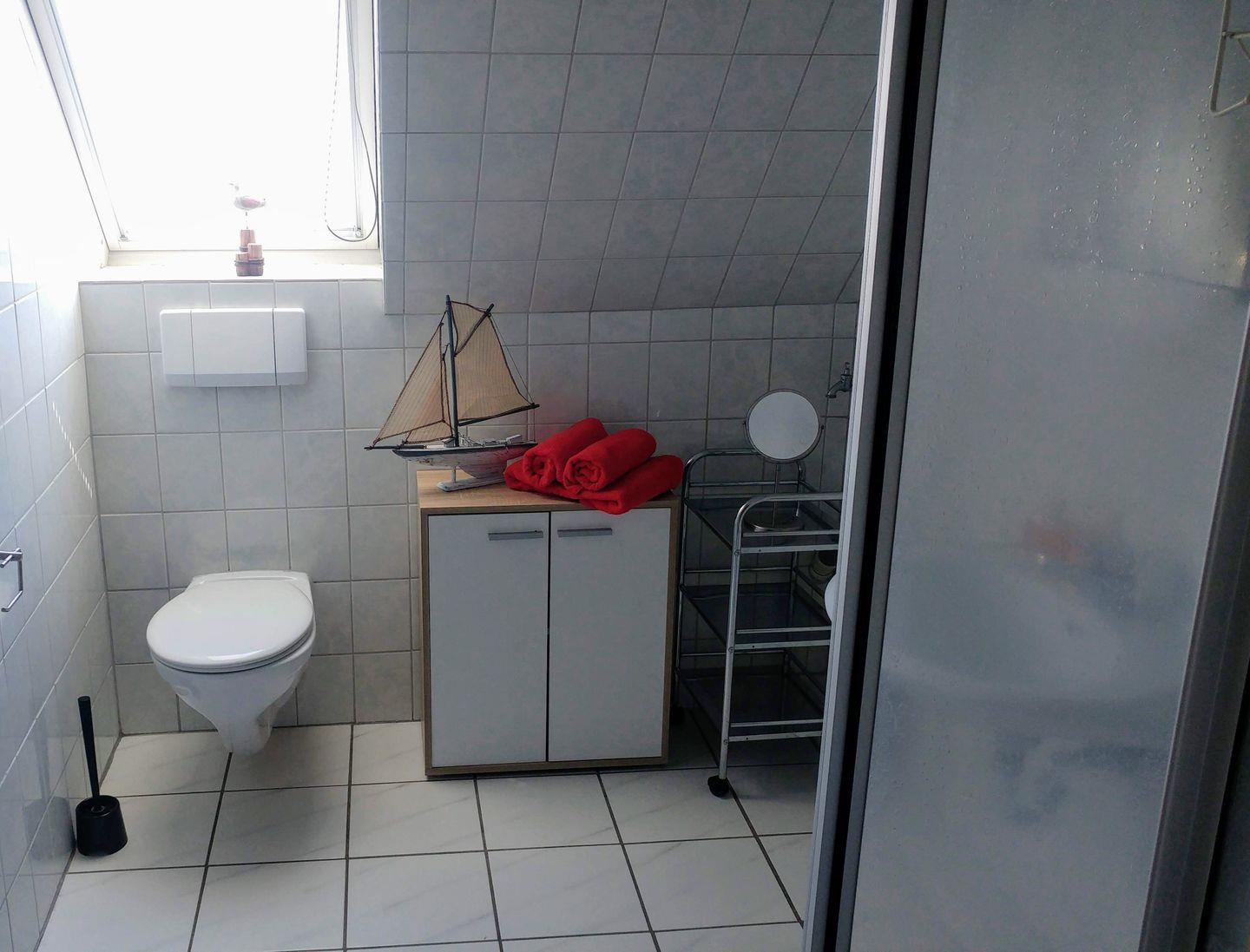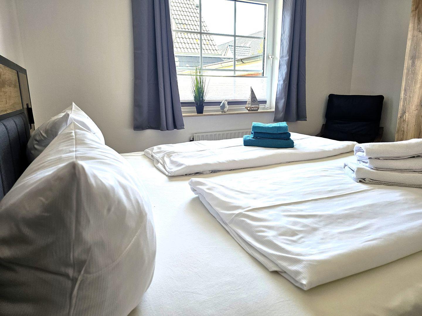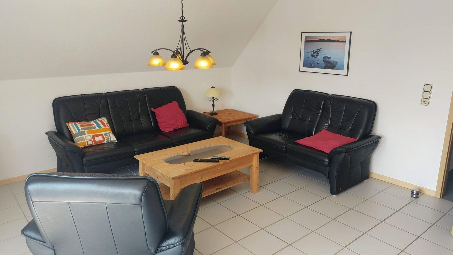 Die Ferienwohnung Lee (60 qm) ist im OG gelegen. Der helle Wohnraum mit Essbereich hat einen Balkon in Süd-Westlage mit Markise und Balkonmöbeln. Die Ferienwohnung verfügt über ein Schlafzimmer mit Doppelbett und ein Schlafzimmer mit einer Schlafcouch als Doppelbett umbaubar (ca. 140 x 200 cm), eine komplett eingerichtete Küche, ein Duschbad und einen Flur.