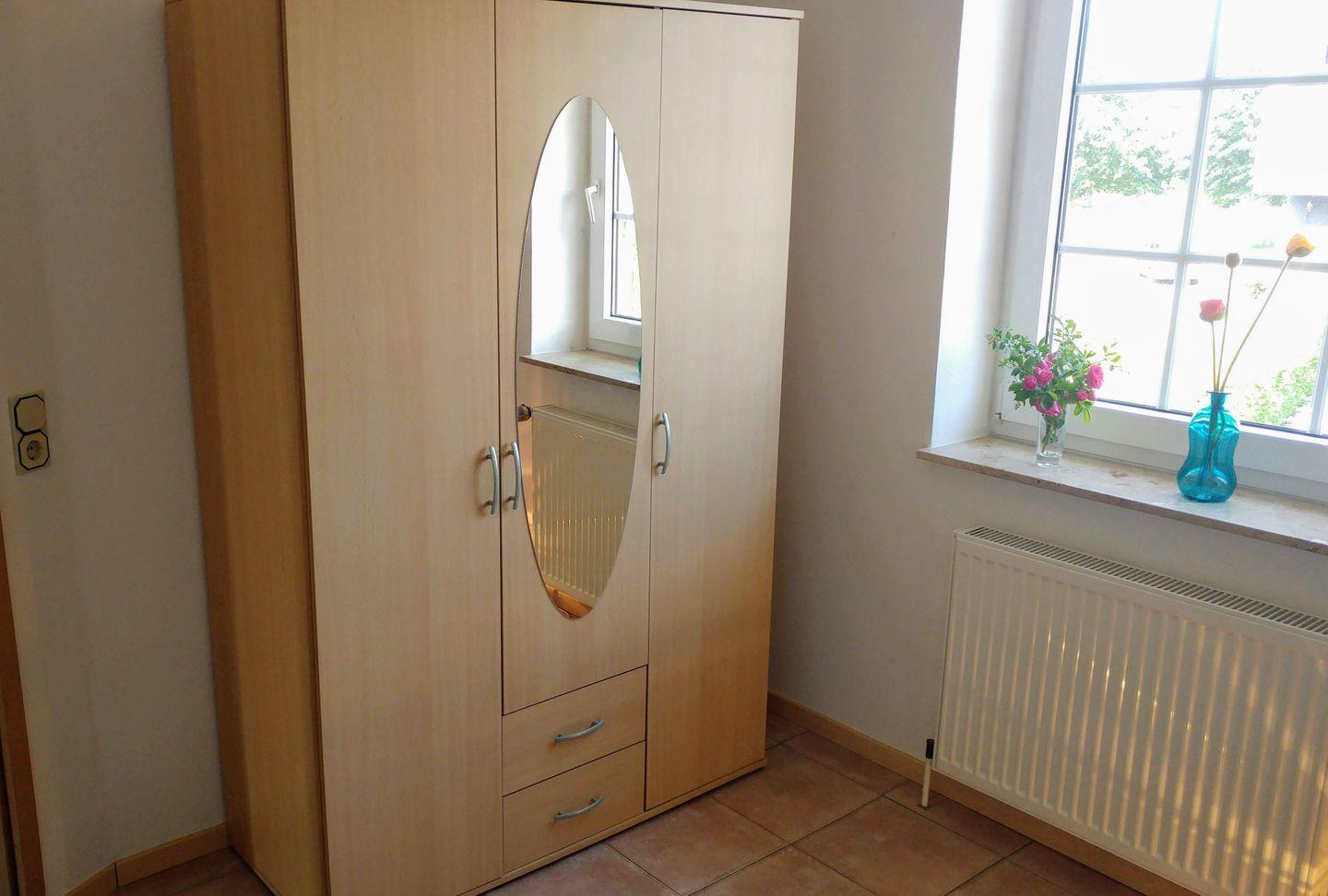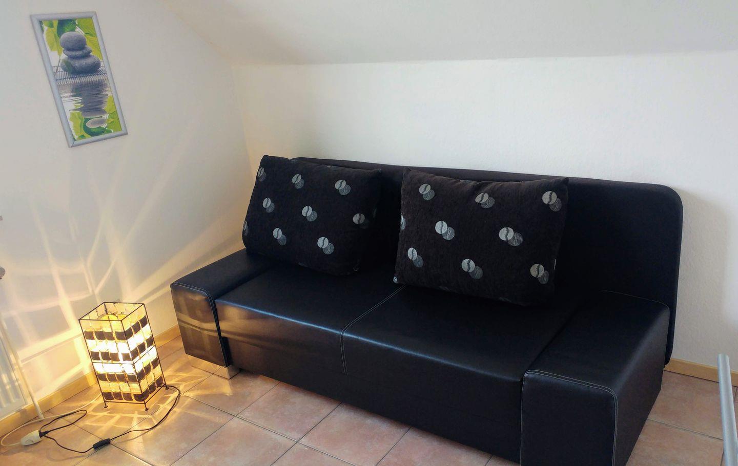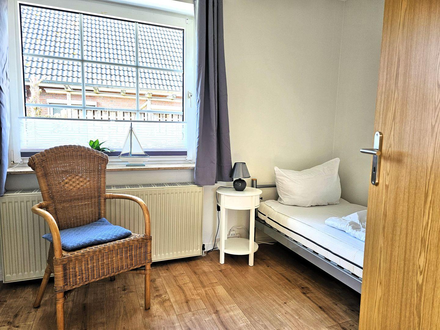 Die Ferienwohnung Lee (60 qm) ist im OG gelegen. Der helle Wohnraum mit Essbereich hat einen Balkon in Süd-Westlage mit Markise und Balkonmöbeln. Die Ferienwohnung verfügt über ein Schlafzimmer mit Doppelbett und ein Schlafzimmer mit einer Schlafcouch als Doppelbett umbaubar (ca. 140 x 200 cm), eine komplett eingerichtete Küche, ein Duschbad und einen Flur.
