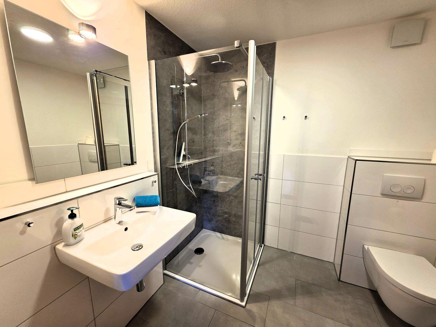 Im Schlafzimmer sorgt ein komfortables Doppelbett für erholsamen Schlaf, während das moderne Badezimmer mit Dusche alle Annehmlichkeiten für einen angenehmen Aufenthalt bereithält. Besonders schön ist der große Garten, der in den Sommermonaten in voller Blüte steht und zum Verweilen im Freien einlädt. Für Ihre Fahrräder steht eine Abstellmöglichkeit unter dem Carport mit Wandankern zum Sichern und einer Auflademöglichkeit zur Verfügung – perfekt, um die Umgebung aktiv zu erkunden.