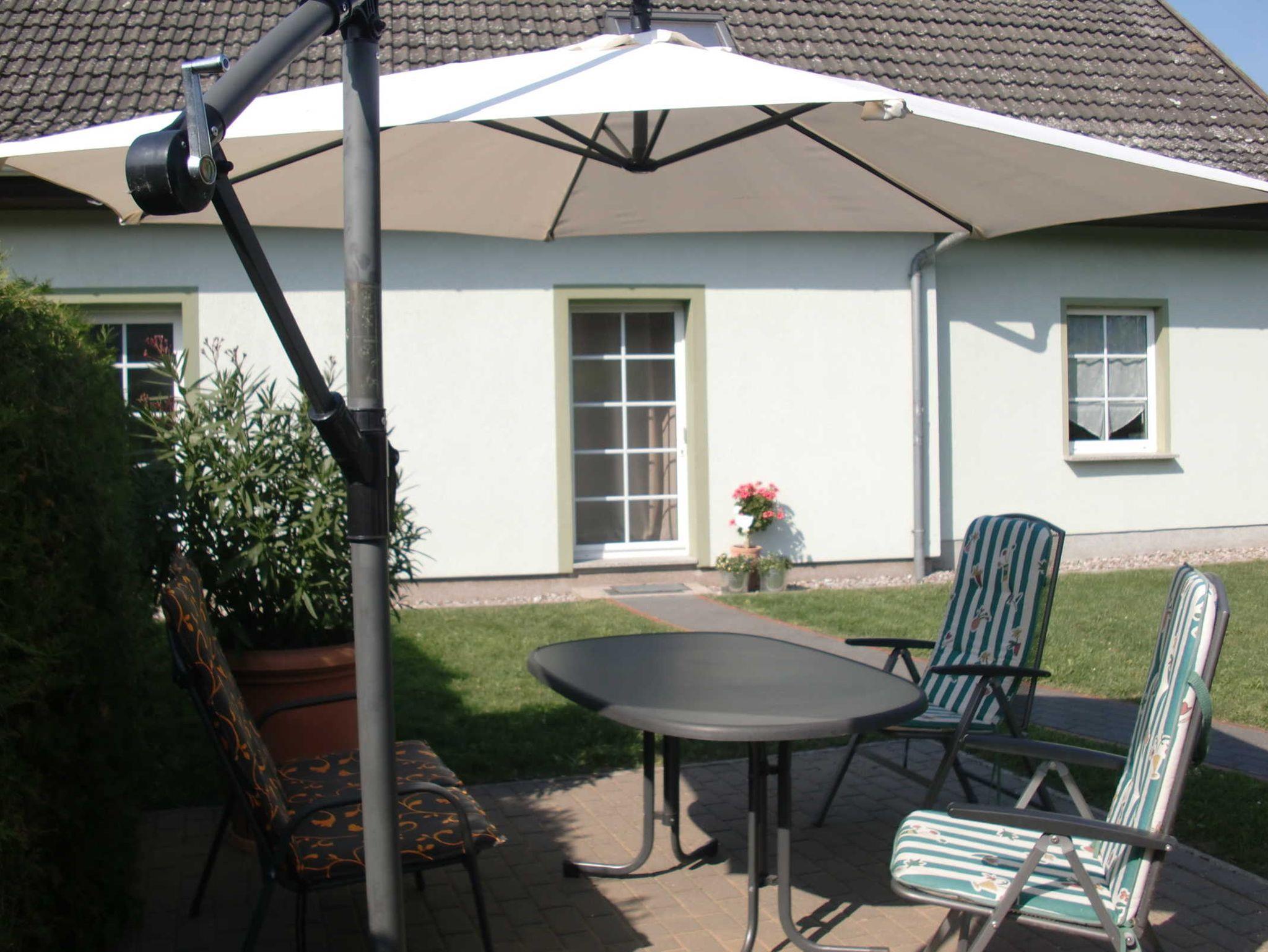 Im Erdgeschoß befindet sich die offene Küche mit Sitzgruppe, sowie das Duschbad. Die obere Etage besteht aus Wohnbereich und Schlafzimmer. Die Schlafmöglichkeit für die 3. Person befindet sich im Schlafzimmer (transportables Bett) oder im Wohnzimmer (Schlafliege). Zur Wohnung gehört eine Terrasse mit Grillkamin und eine Liegewiese. Für ihr Fahrzeug steht ein umzäunter Parkplatz zur Verfügung.