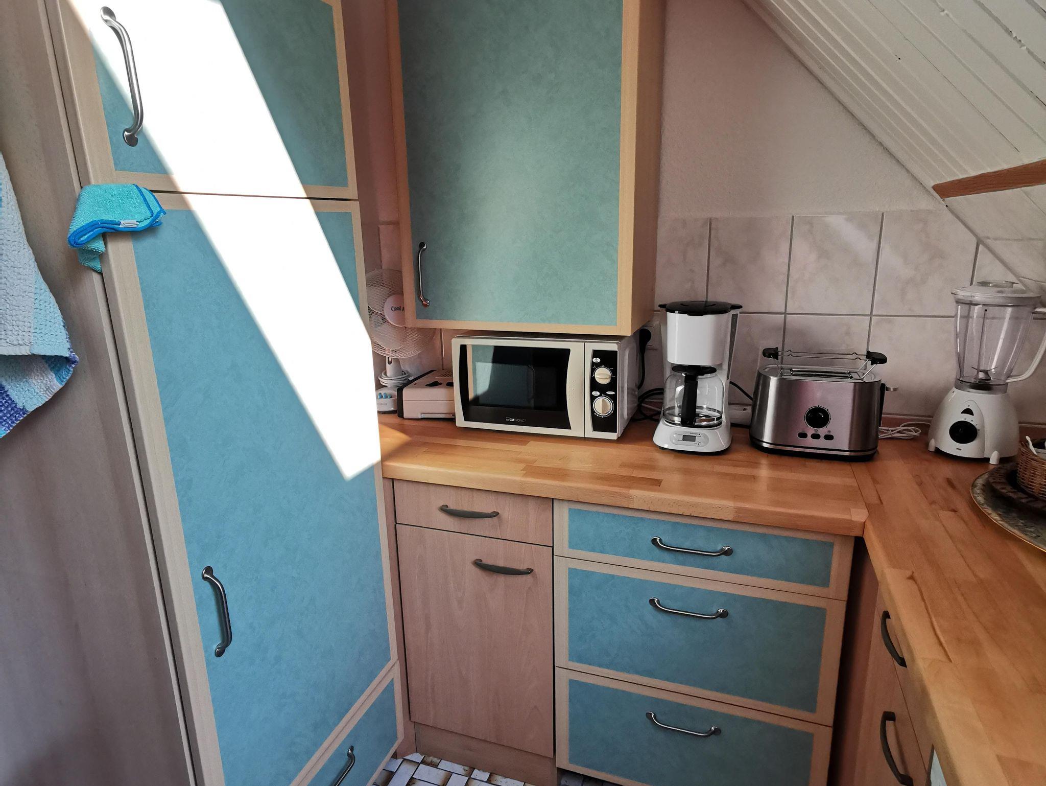 In der Ferienwohnung befinden sich zwei Schlafzimmer (1 Doppelzimmer, 1 Zweibettzimmer), sowie ein großes Wohnzimmer mit Spielecke und zwei weiteren Schlafmöglichkeiten (Sofabett mit zusätzlich ausziehbarer Bettschublade), eine Essdiele, eine separate, gut ausgestattete Küche mit Spül- und Waschmaschine sowie ein Duschbad mit Badewanne.