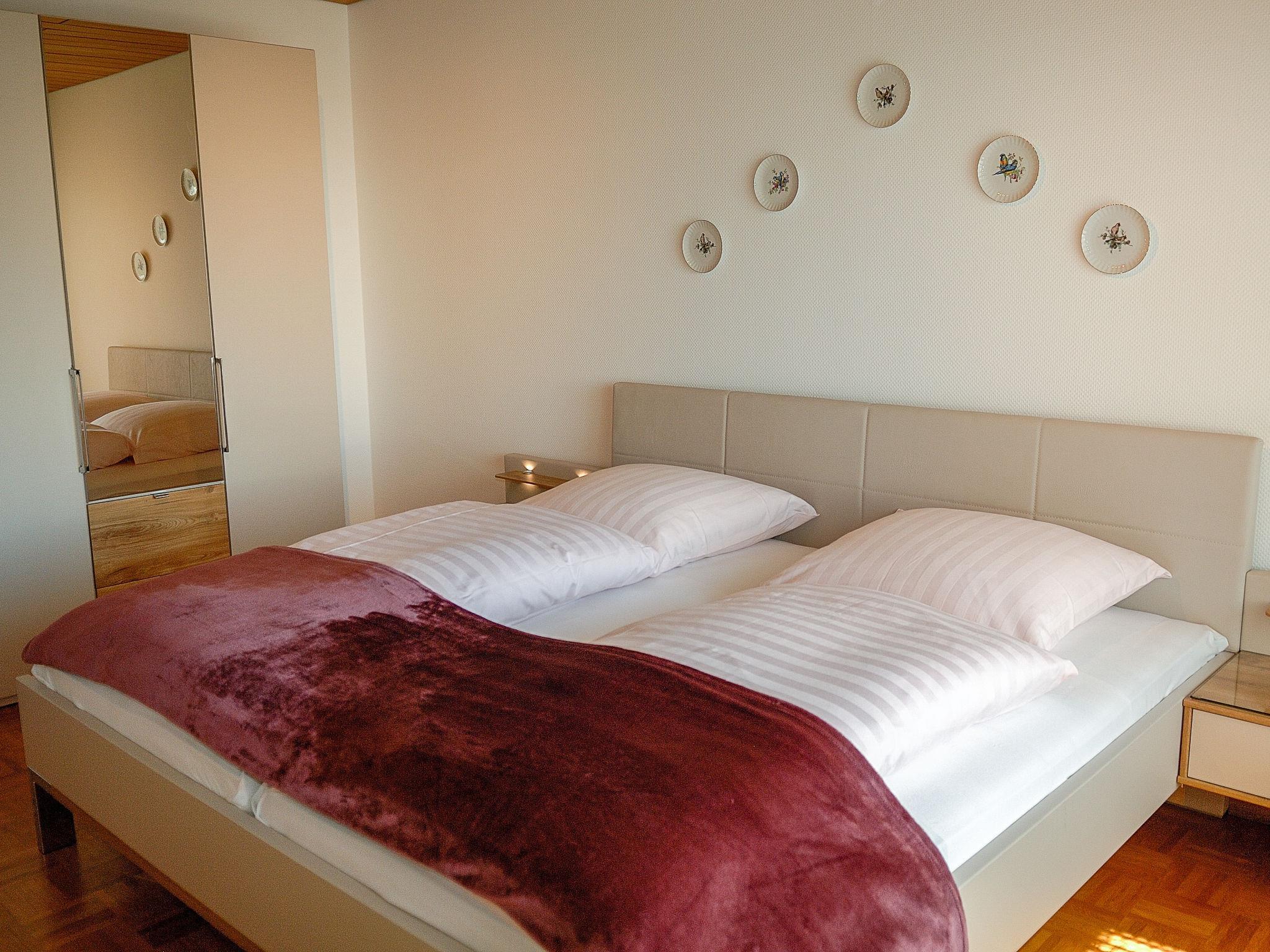 3-Zimmer-Wohnung 130 m2, im erhöhten Erdgeschoss. Geschmackvoll und gemütlich eingerichtet: Wohn-/Esszimmer 30 m2 mit Sat-TV (Flachbildschirm), CD und Stereoanlage. Ausgang zum Garten, zur Terrasse. 1 Zimmer 25 m2 mit 1 Doppelbett (200 cm, Länge 200 cm). 1 Zimmer 20 m2 mit 1 Doppelbett (200 cm, Länge 200 cm). Küche 12 m2 (4 Kochplatten, Backofen, Geschirrspüler, Wasserkocher, Mikrowelle, elektrische Kaffeemaschine). Dusche/WC, Dusche/Bidet/WC. Fussbodenheizung. Grosse Terrasse 25 m2, überdacht. Terrassenmöbel. Zur Verfügung: Internet (Wireless LAN, gratis). Bitte beachten: Nichtraucher-Haus. Rauchmelder, Feuerlöscher.