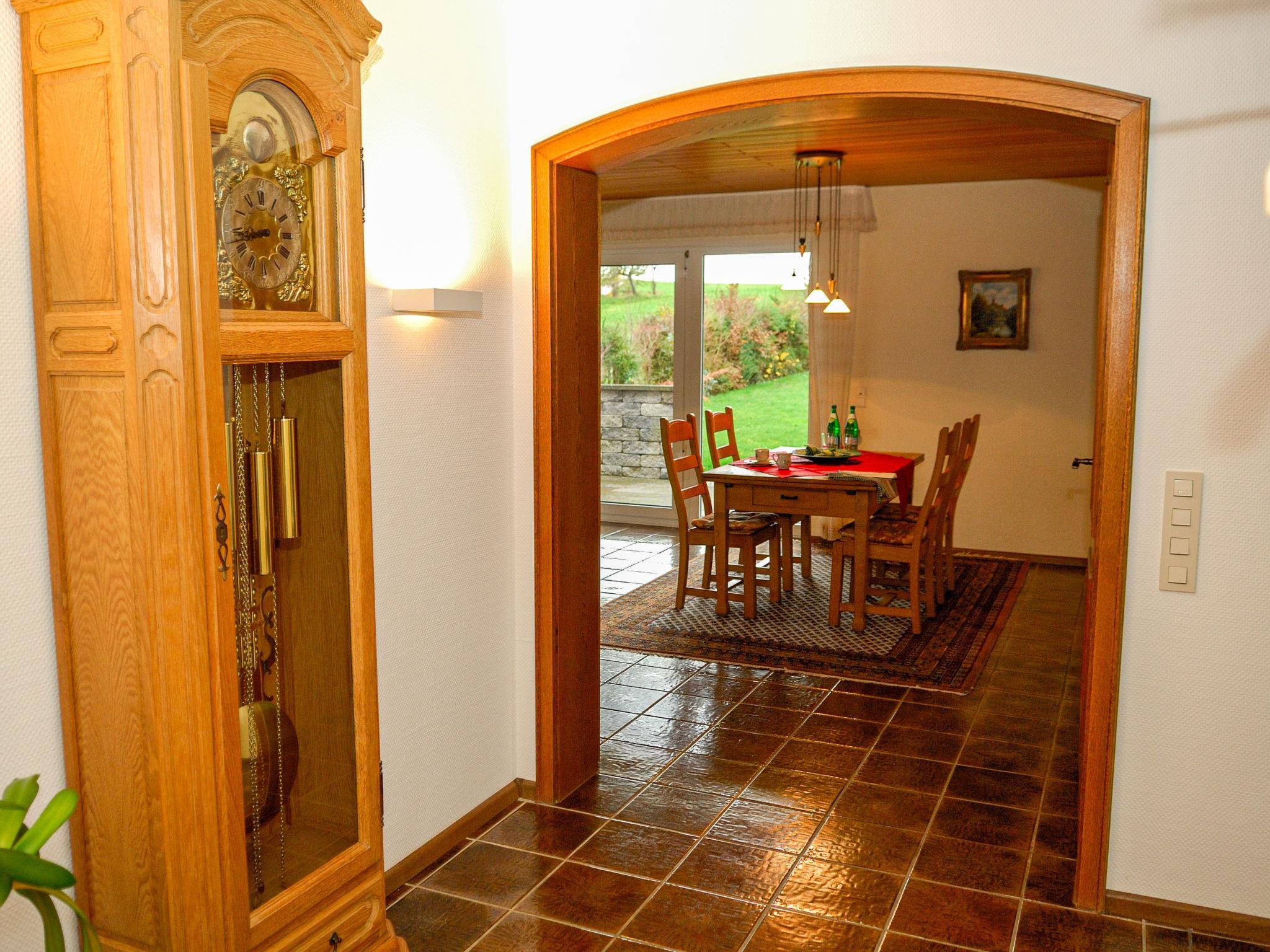 Einfamilienhaus "Belvedere", umgeben von Bäumen, Wiesen und Feldern. Am Ortsrand, 1 km vom Zentrum von Manderscheid, ruhige, sonnige Lage, verkehrsberuhigte Zone, 20 m vom Waldrand, 5 km vom See, 1 km vom Fluss. Zur Alleinbenutzung: Grundstück 1'200 m2, schöner, gepflegter Garten mit Rasen 1'000 m2 Bäumen. Im Hause: Zentralheizung. Parkplatz beim Haus. Einkaufsgeschäft 1.5 km, Lebensmittelgeschäft 1.5 km, Restaurant 1.5 km, Bäckerei 1.5 km, Café 1.5 km, Bushaltestelle 1 km, Bahnstation "Wittlich HBF" 22 km, Freibad 1.5 km, Badesee 5 km. Tennis 1.5 km, Kinderspielplatz 1 km. Nahe gelegene Sehenswürdigkeiten: Oberburg 2 km, Niederburg 2 km. Bekannte Seen in der Umgebung sind gut erreichbar: Meerfelder Maar 5 km, Windsbornkrater 5 km. Bitte beachten: Fahrzeug empfohlen. Für Kleinkinder nicht geeignet. Das 1. Stockwerk ist geschlossen und nicht bewohnt.