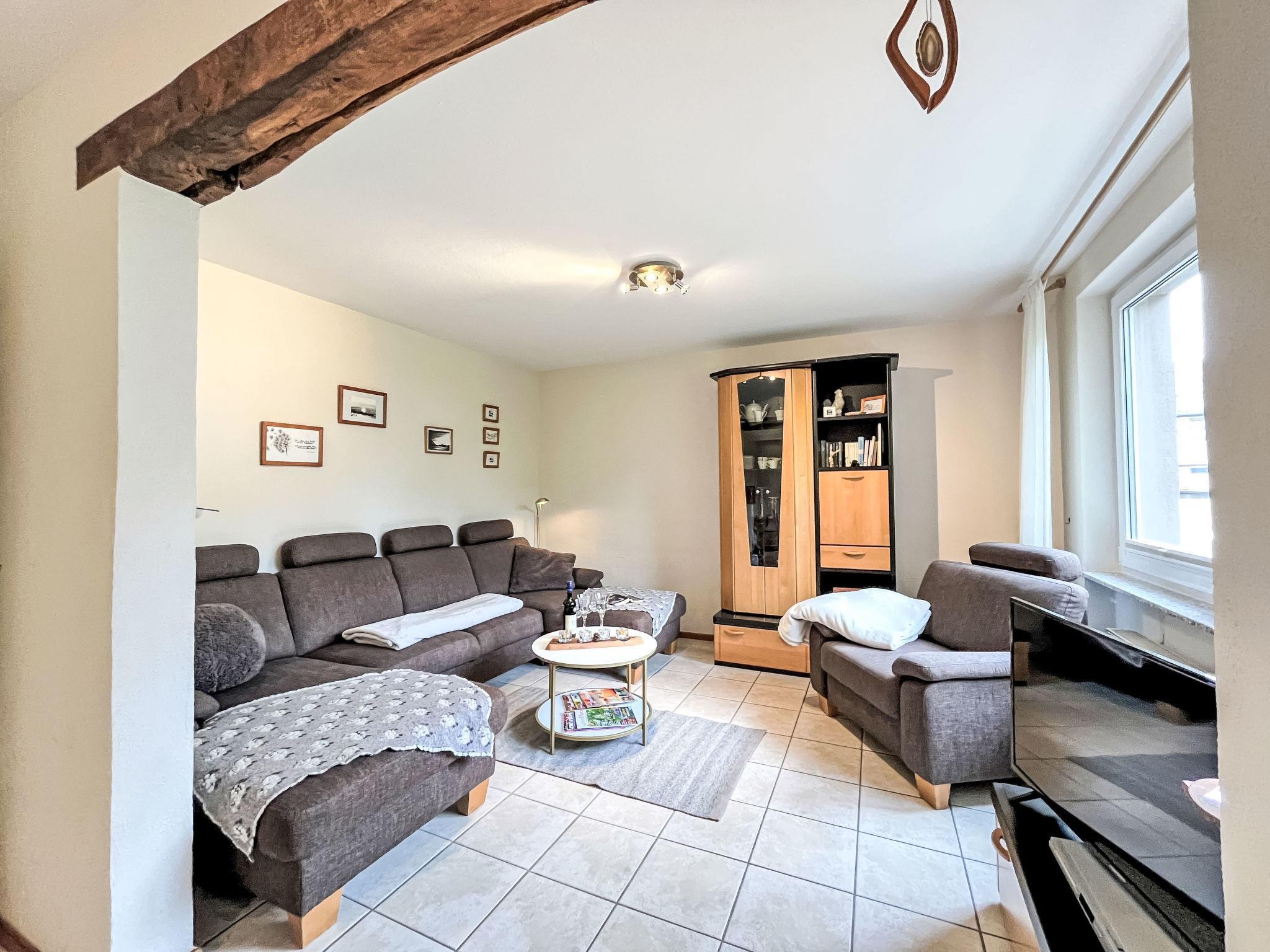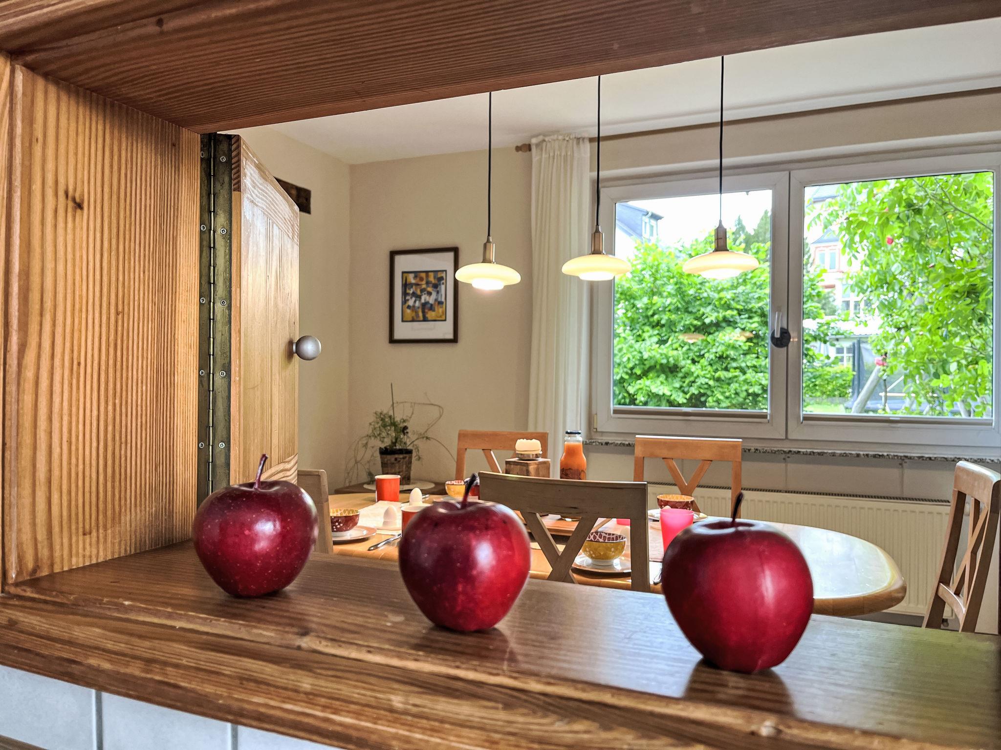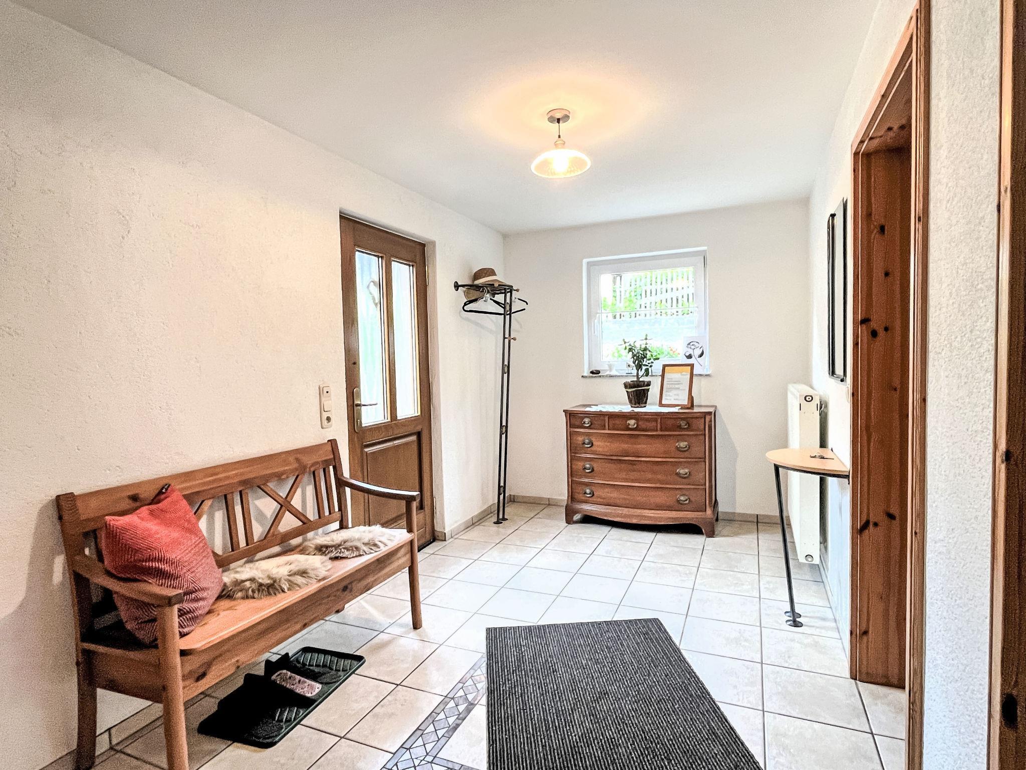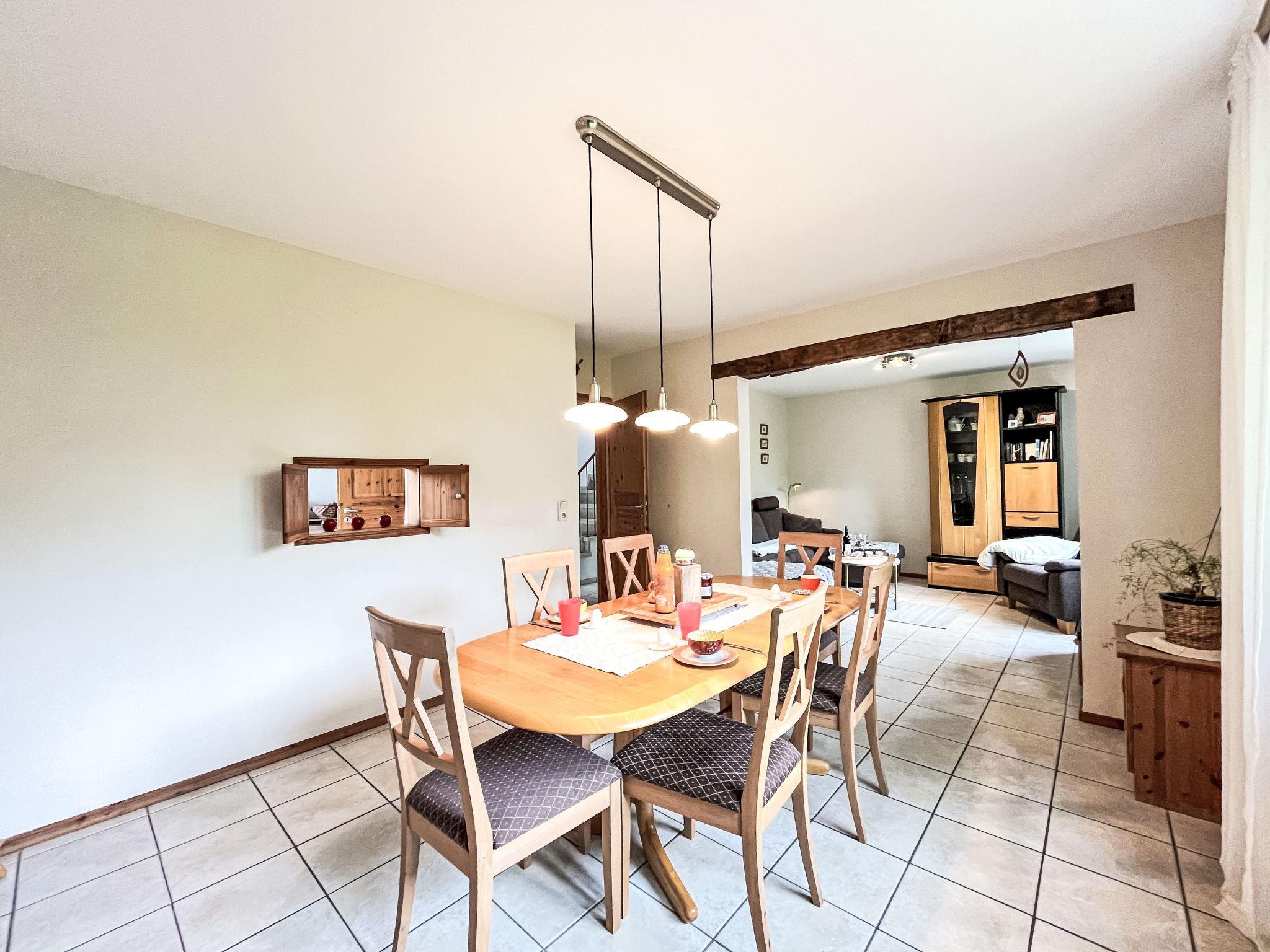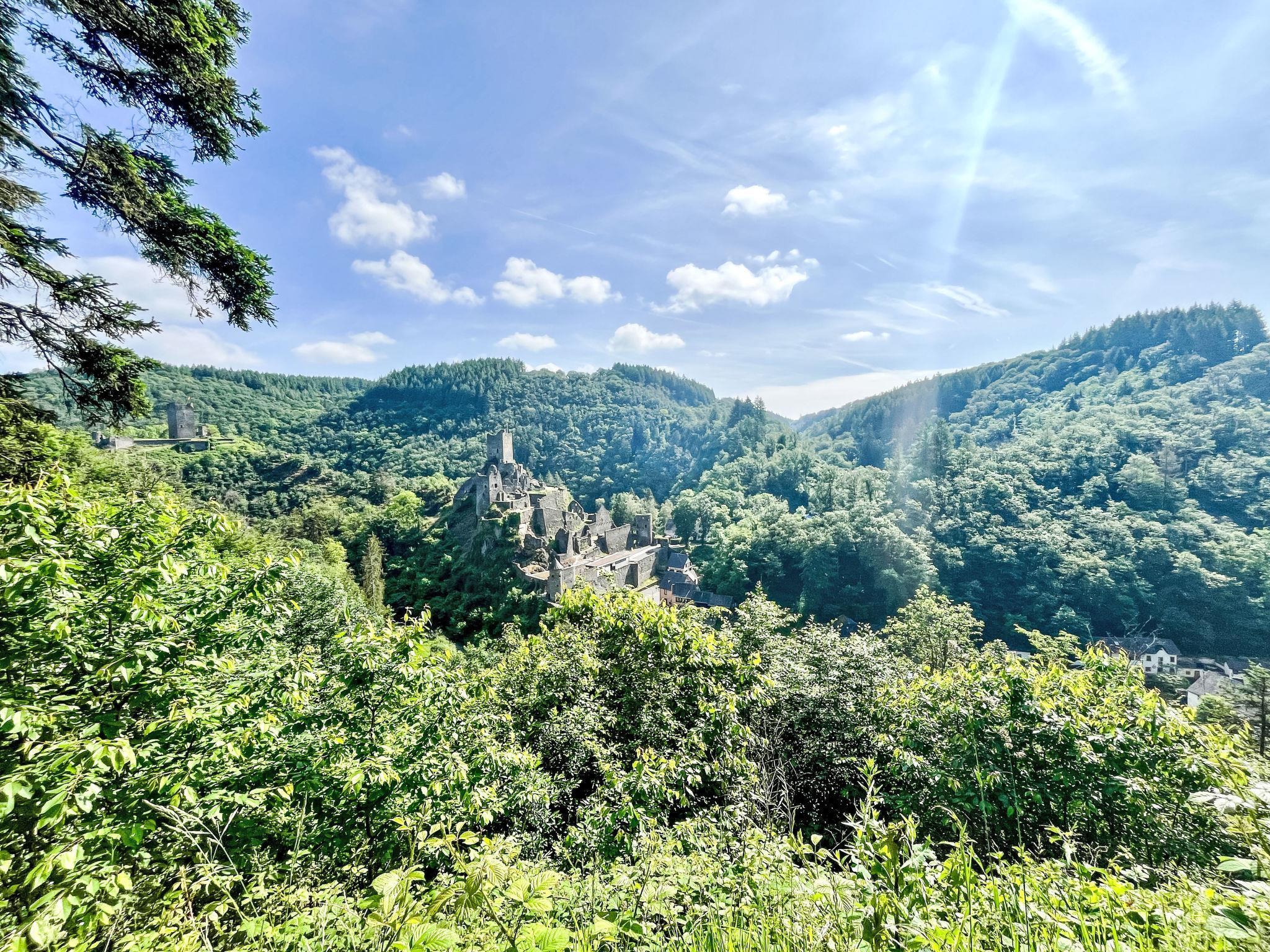 Schönes, gemütliches Einfamilienhaus "Gerberhaus", auf 3 Stockwerken. Im Ort, 200 m vom Zentrum von Manderscheid, 5 km vom See. Zur Mitbenutzung: Grundstück 600 m2, gepflegter Garten Bäumen. Tischtennis (Rutschbahn, Schaukel). In der Anlage: Sauna (extra). Einstellraum für Fahrräder. Parkplatz (für 2 Autos) beim Haus. Lebensmittelgeschäft 700 m, Restaurant 100 m, Bäckerei 300 m, Bushaltestelle 50 m, Freibad 800 m, Hallenbad 16 km, Badesee "Meerfelder Maar" 5 km. Nahe gelegene Sehenswürdigkeiten: Abtei Himmerod 16 km, Niederburg 1.5 km. Bekannte Seen in der Umgebung sind gut erreichbar: Verschiede Maare (Vulkanseen) 5 km.