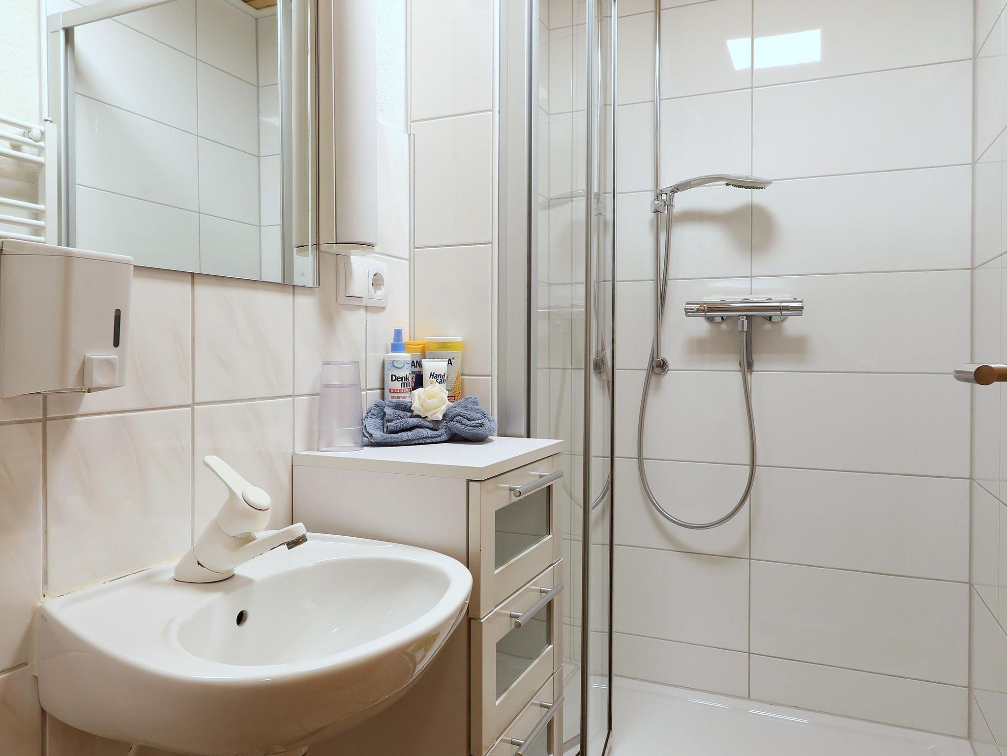 Zimmer 1.2.3, hat sein eigenes Bad, welches sich auf dem Flur befindet. Nr.4 hat das Bad im Zimmer.