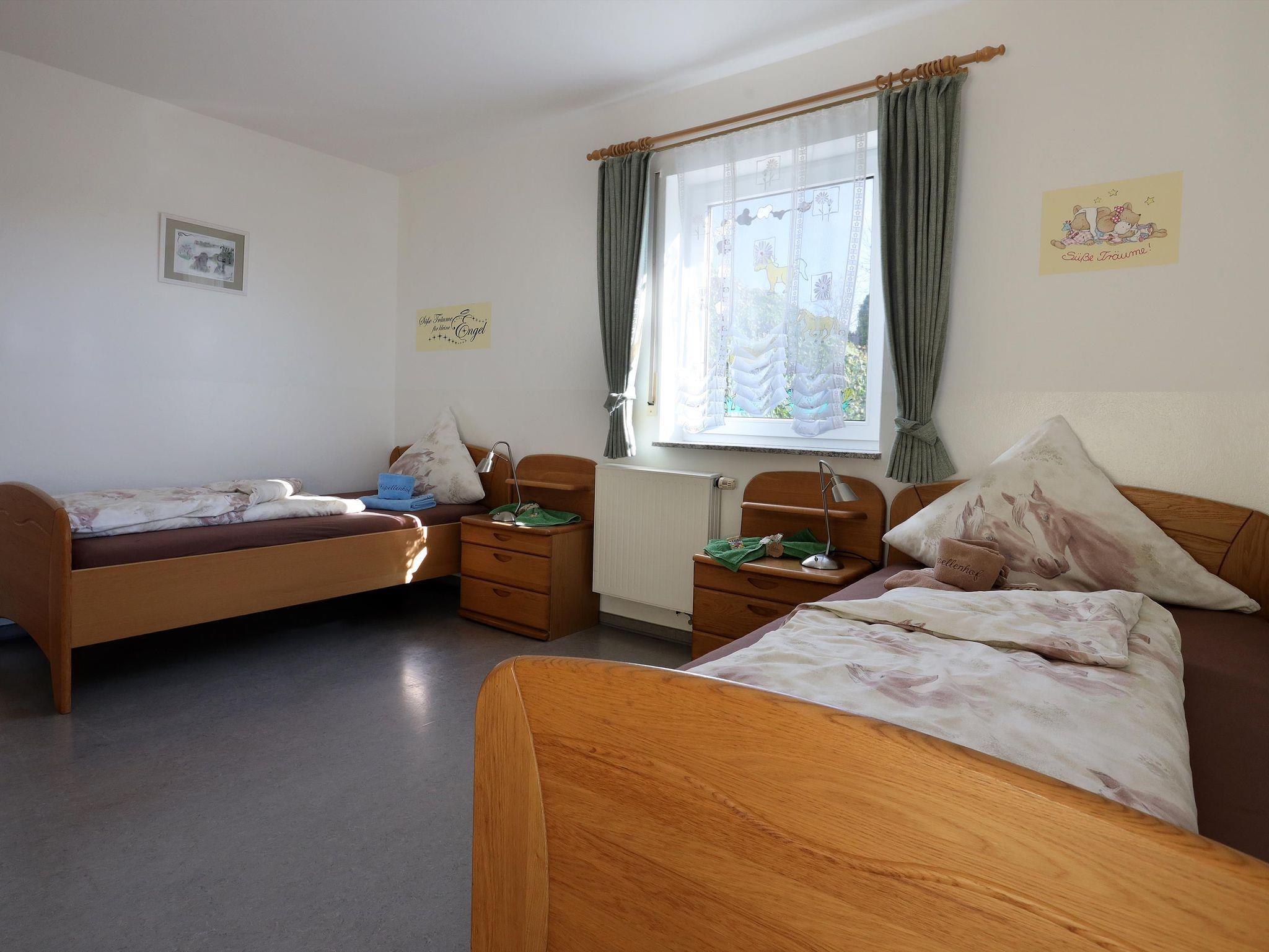 Modern geführter Vollerwerbs-Bauernhof in ruhiger, idyllischer Einzellage umgeben von Wald und Wiesen mit vielen Tieren zum Anfassen und Streicheln (Kühe, Pferde und Kleintiere). Zum Übernachten bieten wir Ihnen 4 Ferienwohnungen und 4 Familienzimmer, ideal für Familien, Reiter- und Wandergruppen, sowie Radfahrer. Aufenthaltsraum, Wintergarten,Gemeinschaftsküche für die Gäste von den Gästezimmern (Familienzimmer), Grillplatz mit Hütte und Sitzgruppen, Spielplatz und vieles mehr steht Ihnen für Ihren Urlaub zur Verfügung.Trampolin, viele Kinderfahrzeuge, Heuburg zum Toben, Frühstücksbuffet für die Gäste in den Gästezimmern überwiegend aus hofeigenen Produkten.
