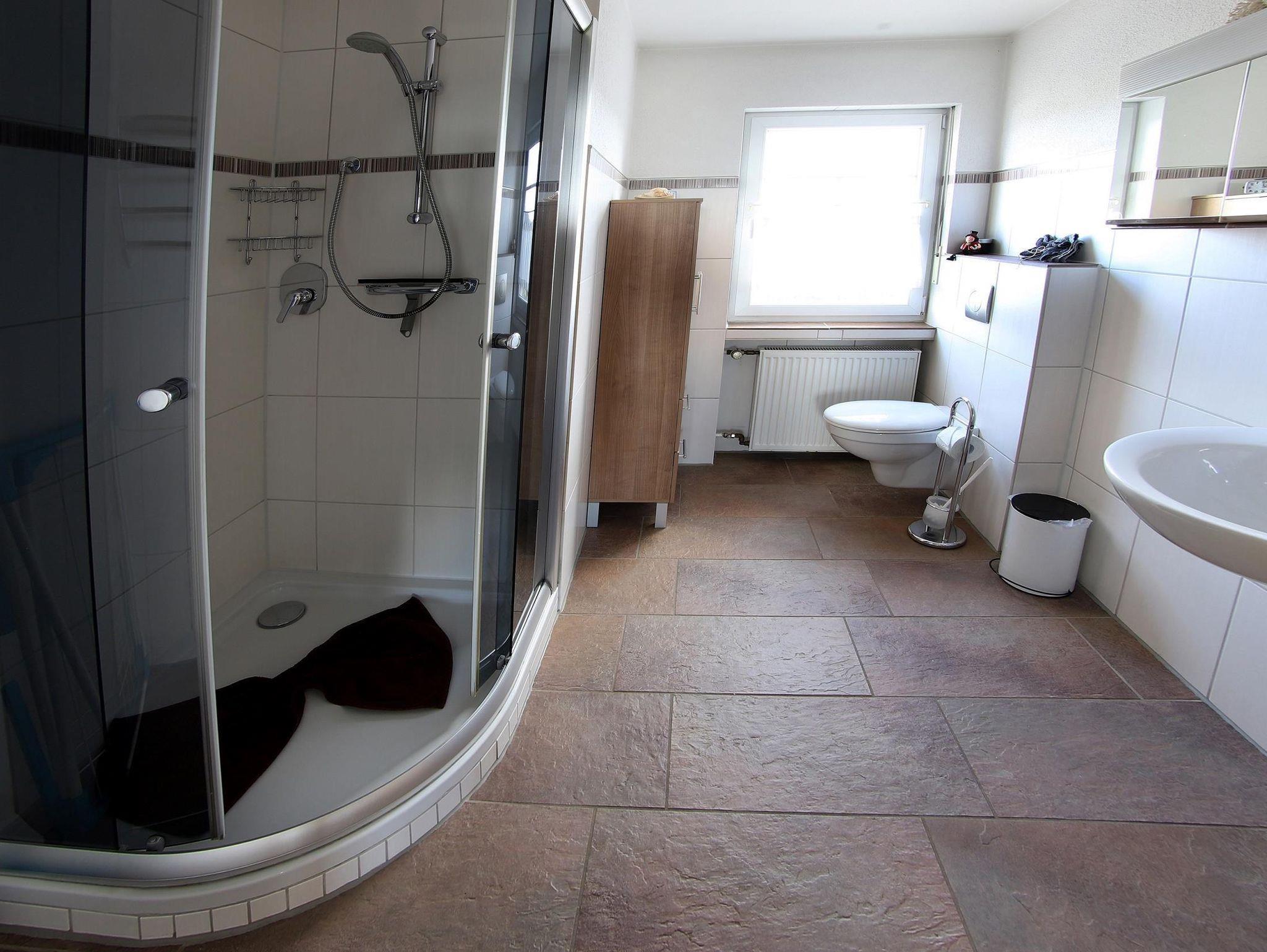 Zimmer 1.2.3, hat sein eigenes Bad, welches sich auf dem Flur befindet. Nr.4 hat das Bad im Zimmer.