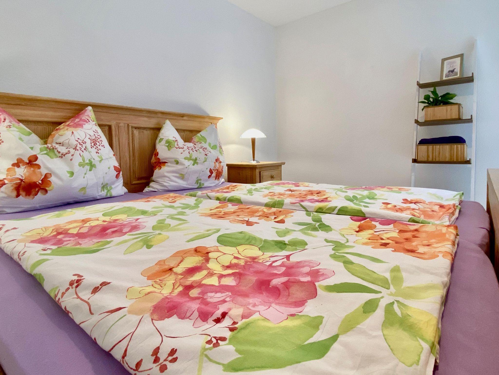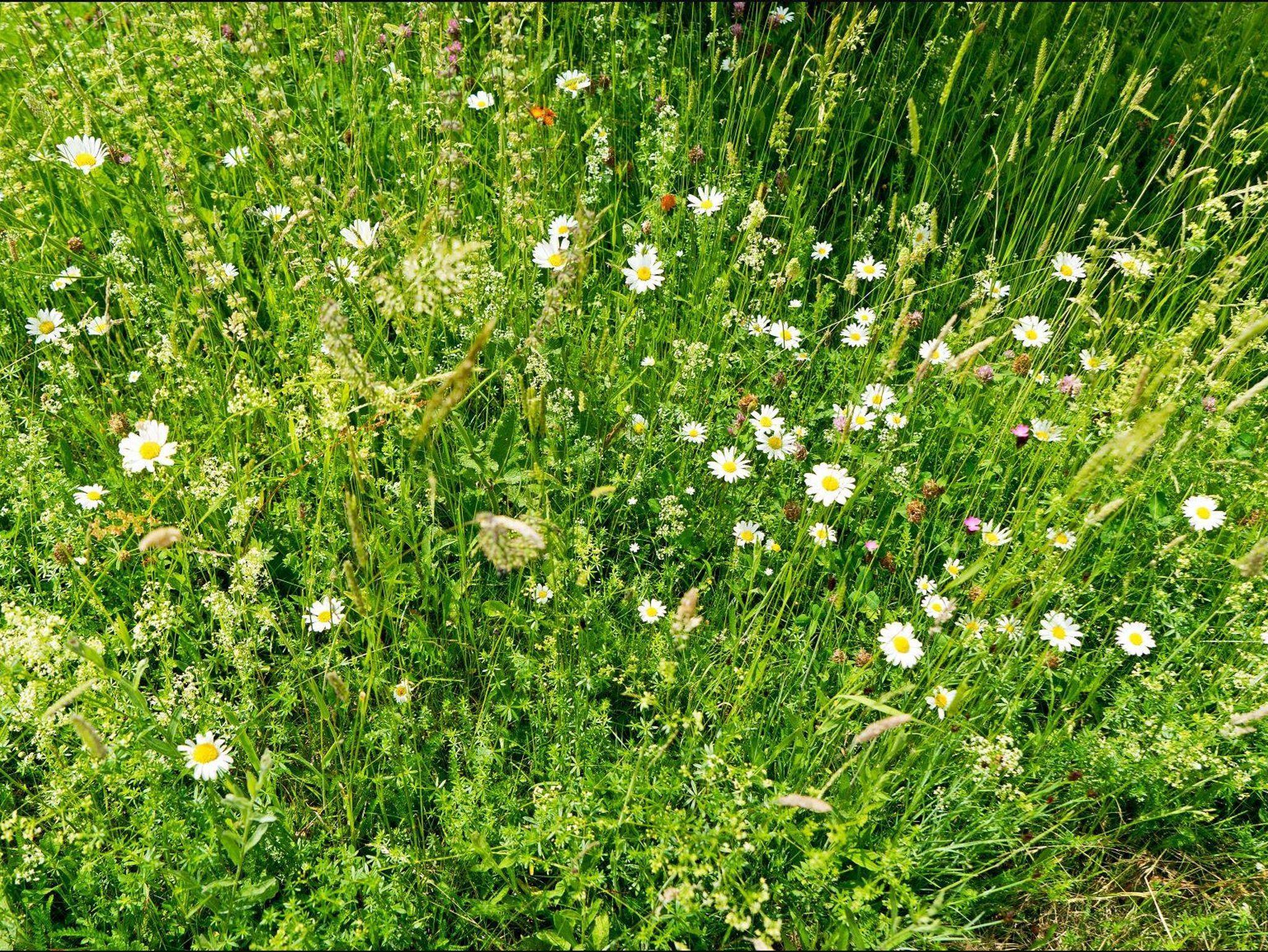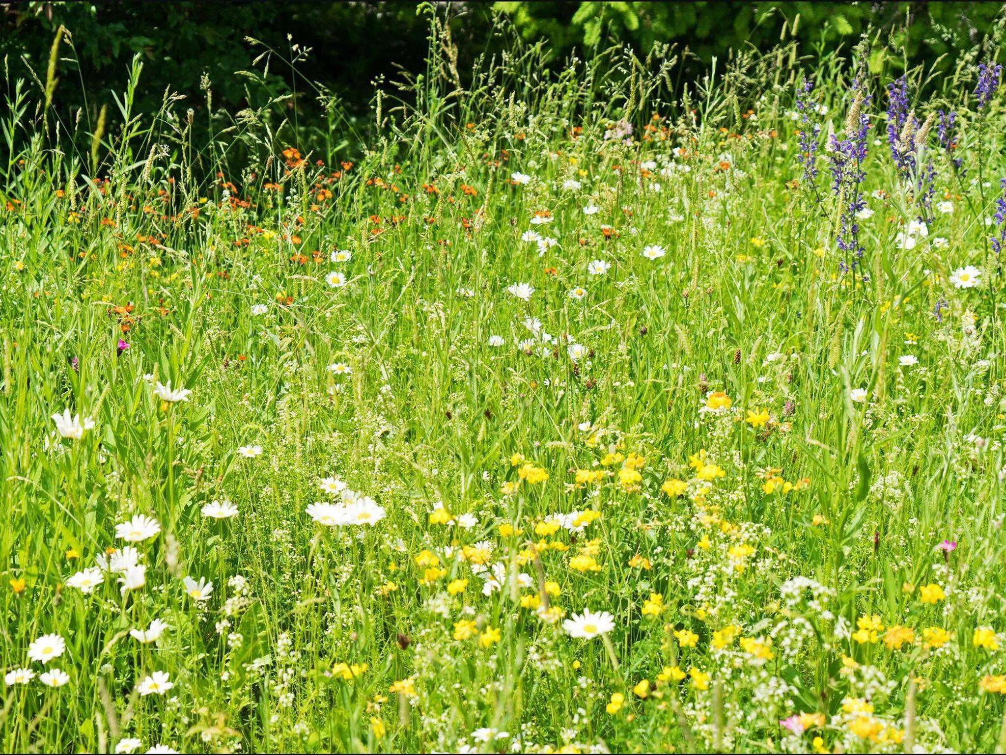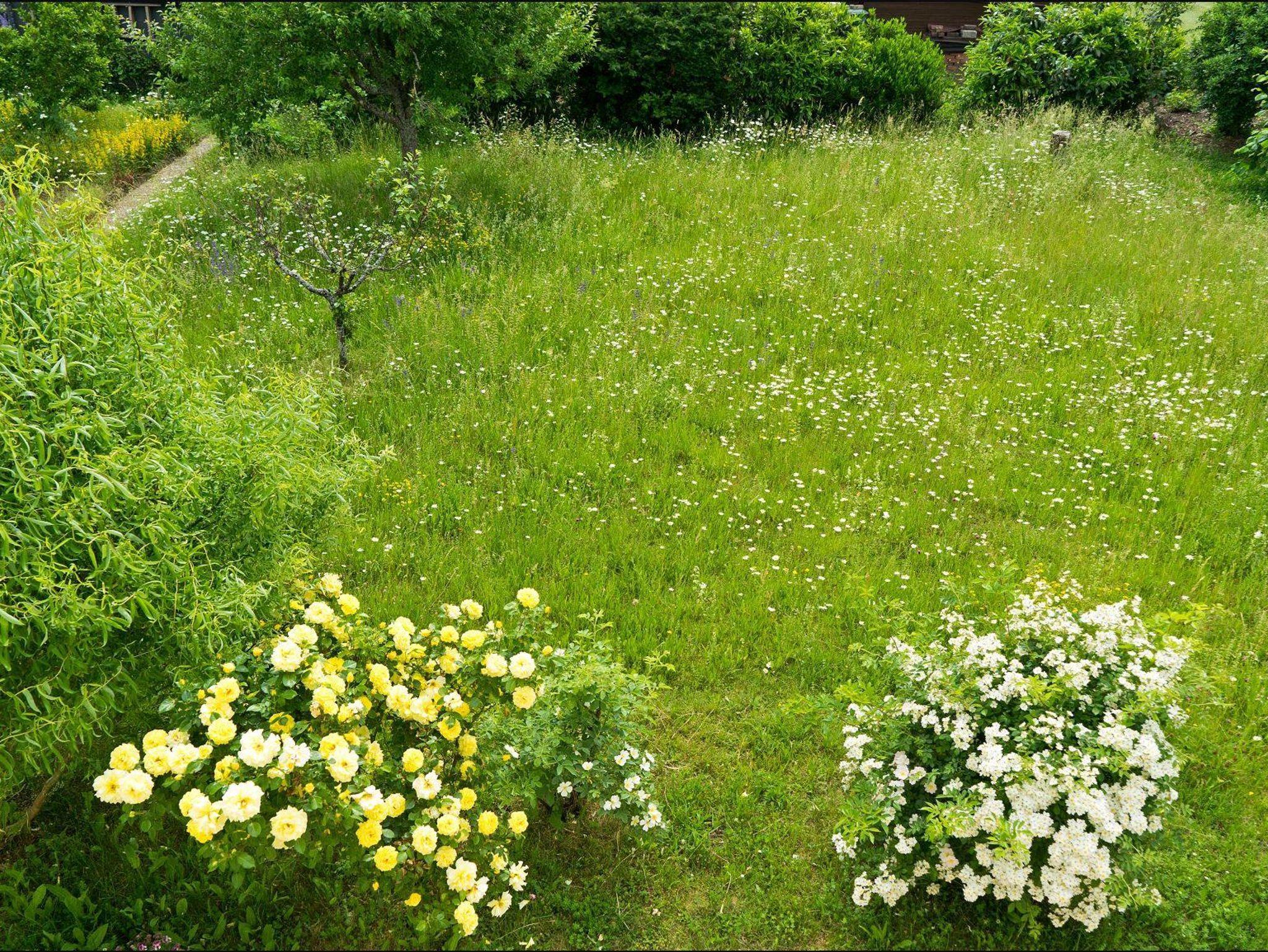 Wir haben unserem Ferienhaus diesen Namen gegeben, weil wir uns alljährlich über die bunte Blütenpracht der Wiese erfreuen, von der das Haus umgeben ist. Gerne lassen wir Sie an der natürlichen Vielfalt teilhaben, die auch von der bepflanzten Einfriedung des Grundstücks umrahmt wird. Das frei stehende Haus bietet mit seinen drei Schlafzimmern, zwei Bädern, einem Gäste WC sowie einer Küche und einem hellen Wohnzimmer viel Platz für unsere Gäste. Vom zentralen Flur gehen Gäste WC, Küche und Wohnzimmer ab, welches einen direkten Zugang zur Terrasse ermöglicht. Gartenmöbel sind vorhanden und eine Markiese schützt vor der Sonne.