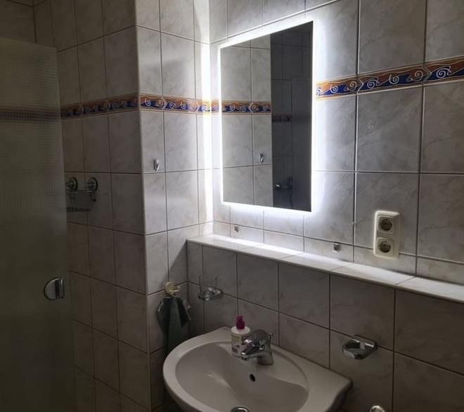 Die Doppelhaushälfte steht komplett oberirisch. Daher ist die Wohnung über 10 Stufen von der Strassenebene zu erreichen. Die Wohnung selbst ist ebenerdig ohne Stufen und besteht aus Schlafzimmer Bad, Küche mit Essbereich und geräumigem Wohnzimmer mit Fernseher und WLAN.