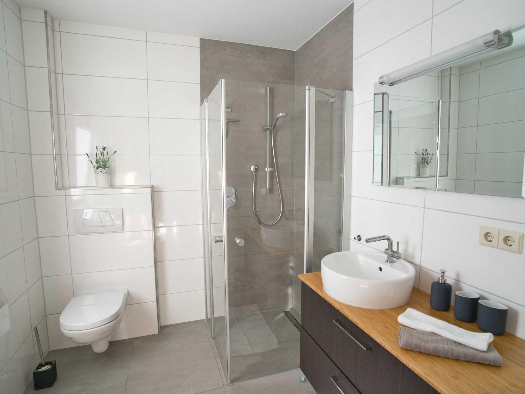 Die Wohnfläche beträgt komfortable 70 qm im Erdgeschoß und ist barrierefrei mit ruhigem Schlafzimmer (2 Pers). Der große Wohn und Essbereich besitzt eine Küchenzeile mit Mikrowelle, Kühlschrank, Geschirrspüler, Wasserkocher, Kaffeeautomat, Töpfe, Geschirr, Gläser, Besteck u.v.m. Auf der Schlafcouch sind zwei weitere Schlafplätze vorhanden. W-LAN und ein großer TV-Flachbildschirm werden ebenfalls zur Verfügung gestellt. Das Badezimmer verfügt über ein WC, Dusche u. Waschtisch. Ein Kinderbettchen kann bei Bedarf gestellt werden, somit ist Platz für 4 Erwachsene und ein Kleinkind.