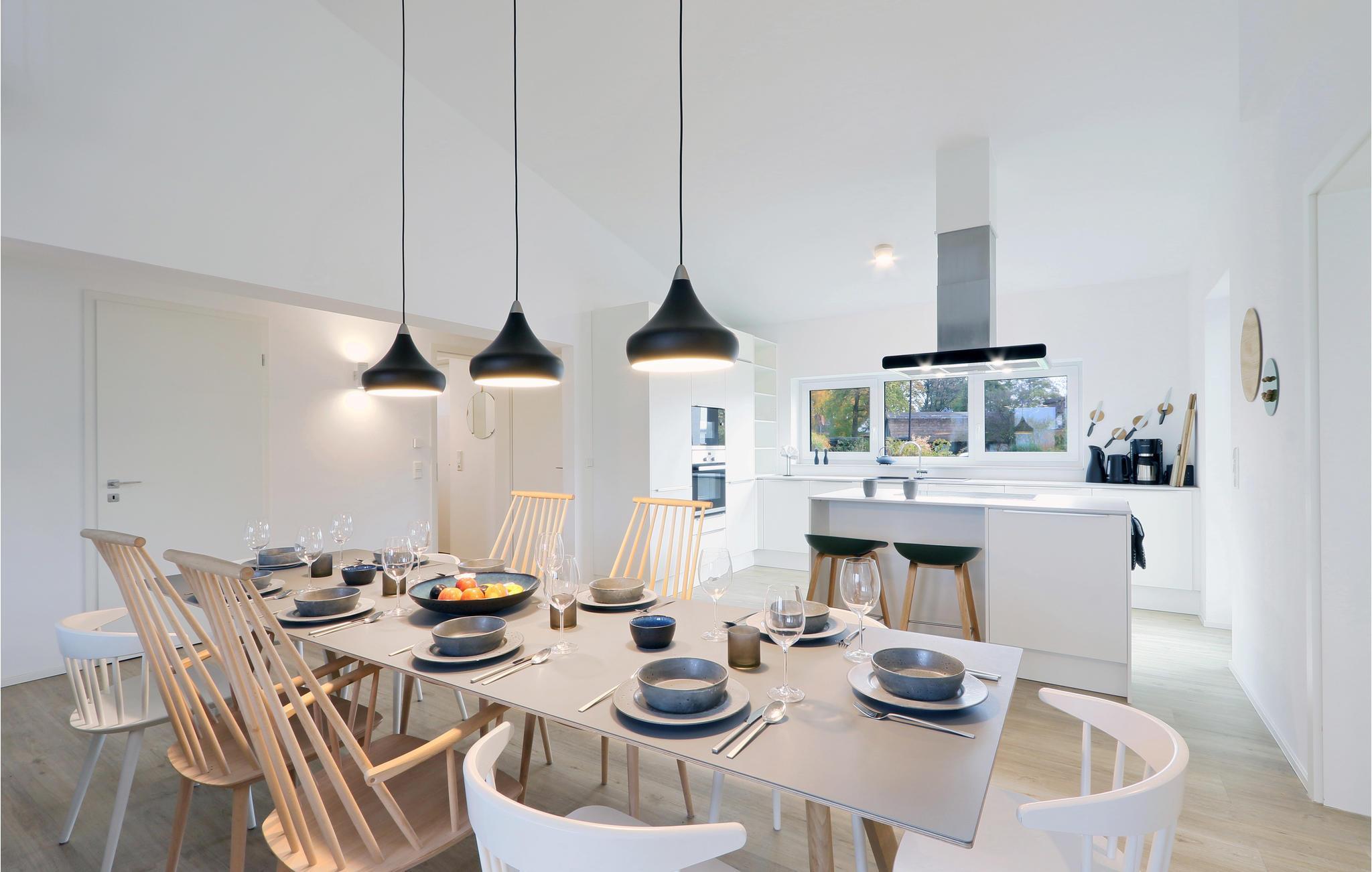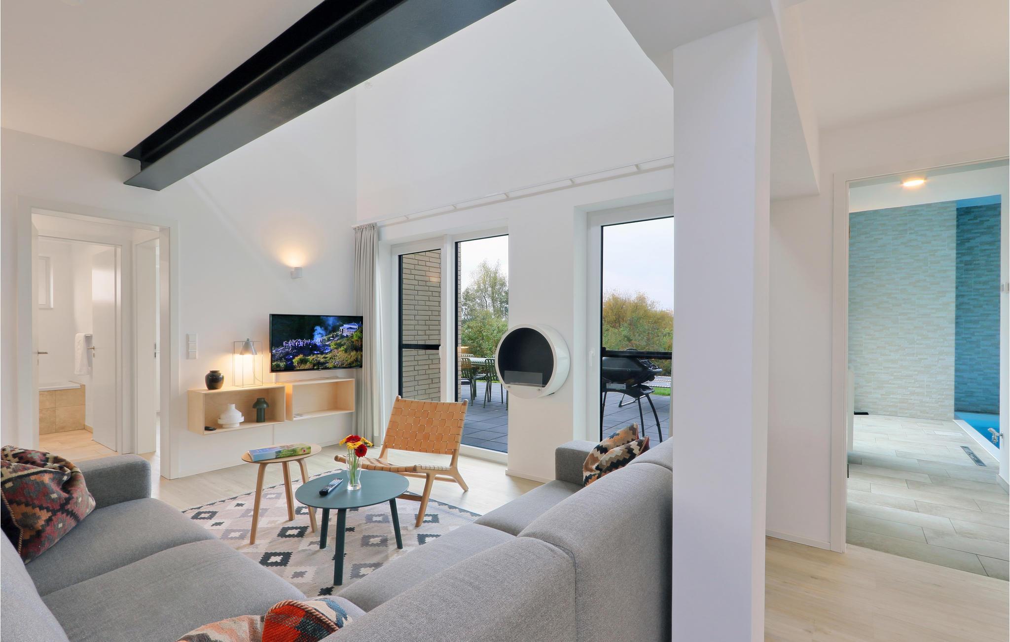 Willkommen in Ihrem Ferienhaus, das Ihnen als Familie mit Kindern oder als Freundeskreis ein gemütliches, wohnliches Ambiente im skandinavischen Einrichtungsstil bietet. Dank des eigenen Indoor-Pools und der Sauna weht ein Hauch von Luxus durch dieses Haus, dessen Wohn- und Essbereich im ersten Stockwerk Sie dank der offenen Galerie mit Loft-Charakter empfängt. Die offene Küche lädt zum Kochen und Verweilen ein, während sich auf den zwei Terrassen immer ein sonniges Plätzchen finden lässt – Bis zu 10 Gäste finden hier, dank 5 Schlaf- und 4 Badezimmern immer genügend Privatsphäre. Die Einrichtung im skandinavischen Design ist durchweg hochwertig und lässt keine Wünsche offen.