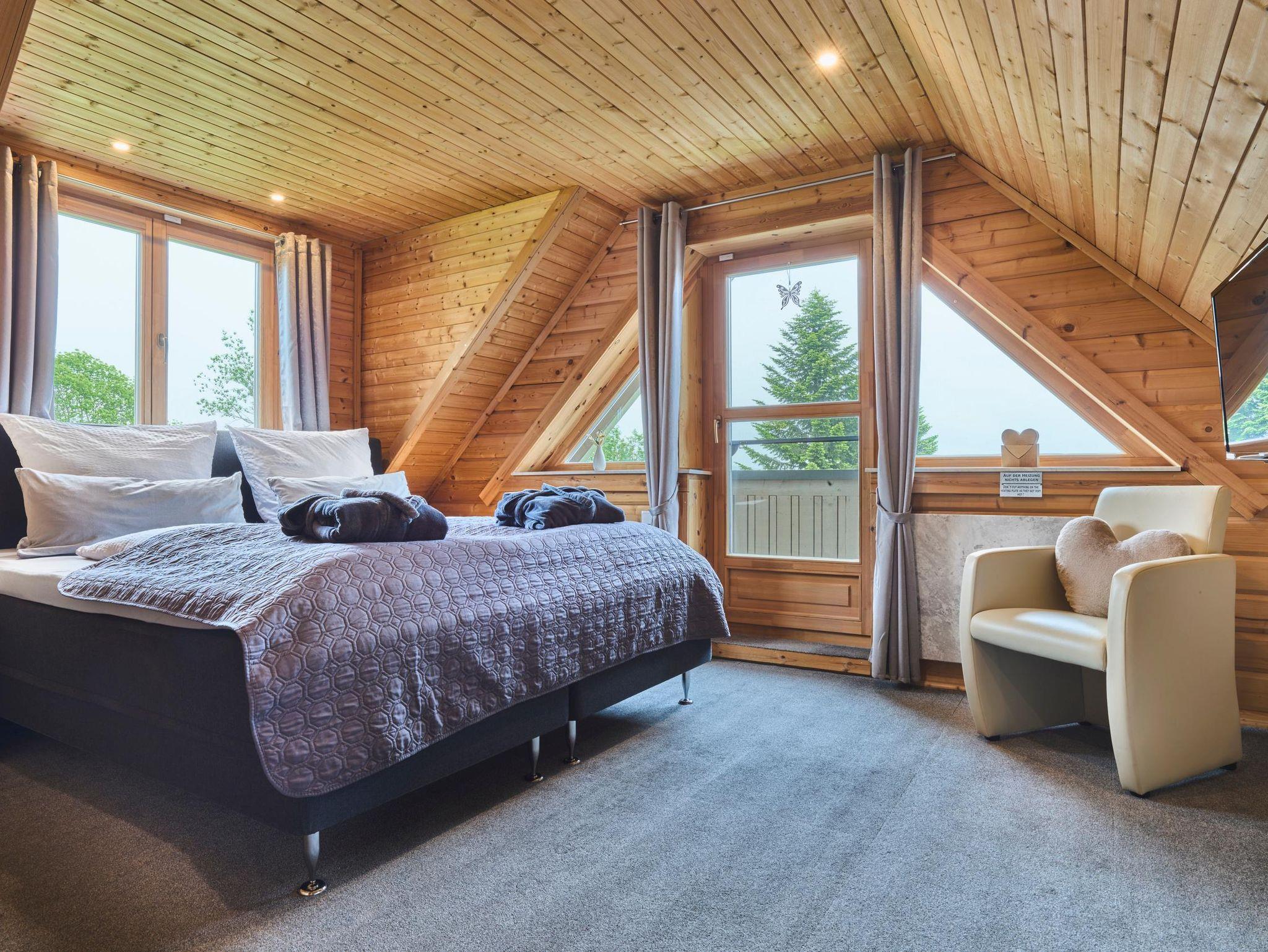 Zwei luxuriöse Chalets (jeweils für max. 2 Erwachsene und 1 Kind bis 12 Jahre) erwarten Sie in sonniger Südhanglage am Ortsrand von Mauth. Größten Wert legen wir auf Ihre Privatsphäre. Der Warmwasser-Whirlpool und die eigene Infrarot-Wärmekabine sind zur alleinigen Nutzung (ohne Aufpreis) für Sie bestimmt und lassen Sie von Beginn an entspannen! Als besonderen Service bieten wir Ihnen zudem jeweils täglich einen Frühstückskorb und Zimmerservice. Den Küchenbereich haben wir zusätzlich erweitert, so dass Sie die Möglichkeit haben, eigene Speisen zubereiten zu können. Seit der Umgestaltung des Außenbereiches konnten wir die Aussicht für Sie von der Sonnenterrasse und dem Balkon über die Hügel, Wälder und Berge des südlichen Bayerischen Waldes noch weiter verbessern. Der kostenlose NETFLIX-Empfang rundet das spezielle Übernachtungsangebot in unseren Chalets ab. Als neuen Service bieten wir Ihnen E-Ladesäulen zum Auftanken Ihrer Autos. Mit unserer eigenen Stromerzeugung unterstützen wir Ihren nachhaltigen Urlaubsaufenthalt und schonen unsere Umwelt!