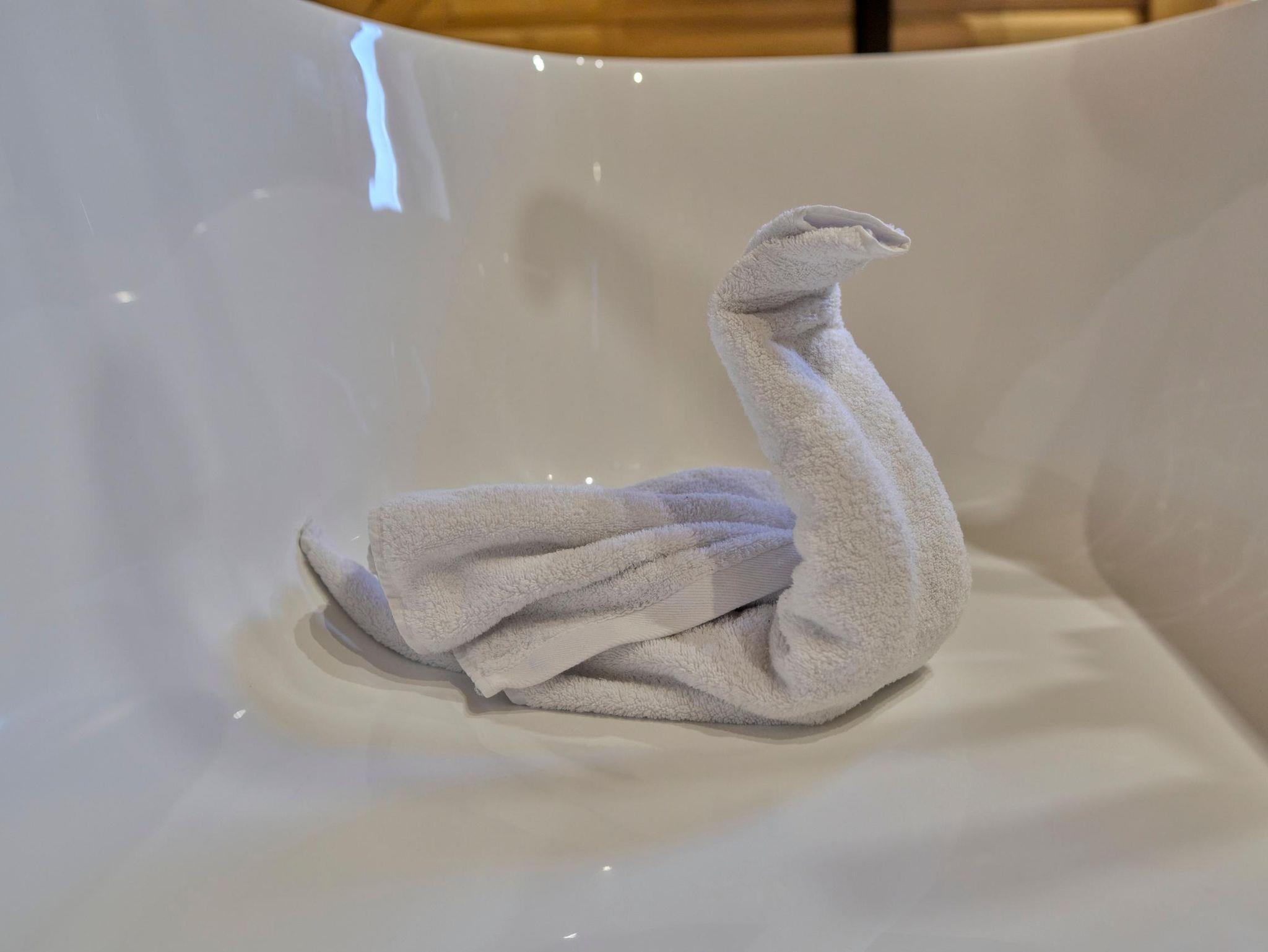 mit einer Badewanne, Dusche, WC inkl. Waschtisch, einem LED-TV (22‘‘, Satellit)