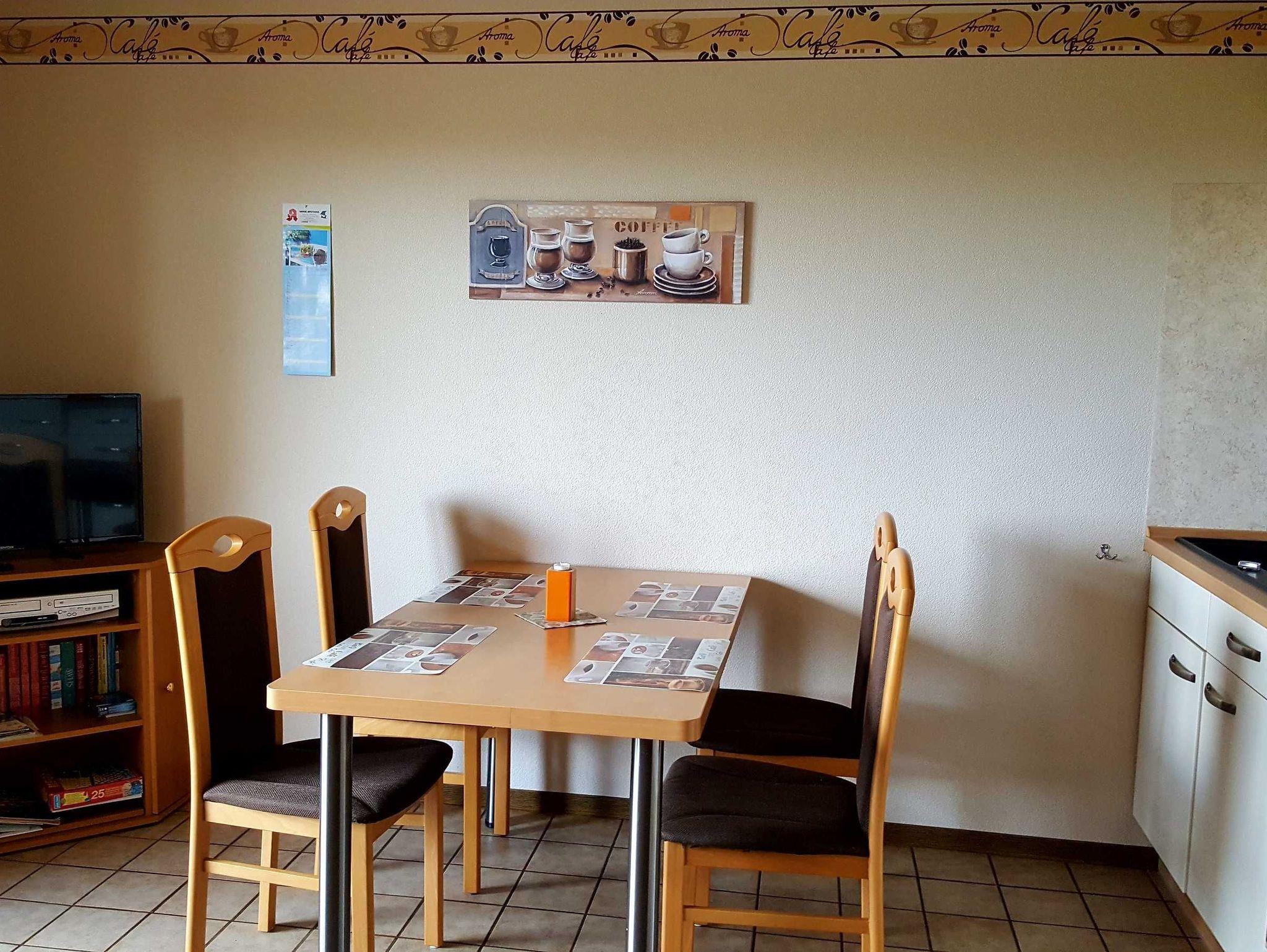 Ruhige, unverbaute Südlage. Voll ausgestattete Küche. Fußbodenheizung. Große Terrasse (hier darf auch geraucht werden). Großer Parkplatz. Treppe zu den Wohnungen. Rauchmelder.