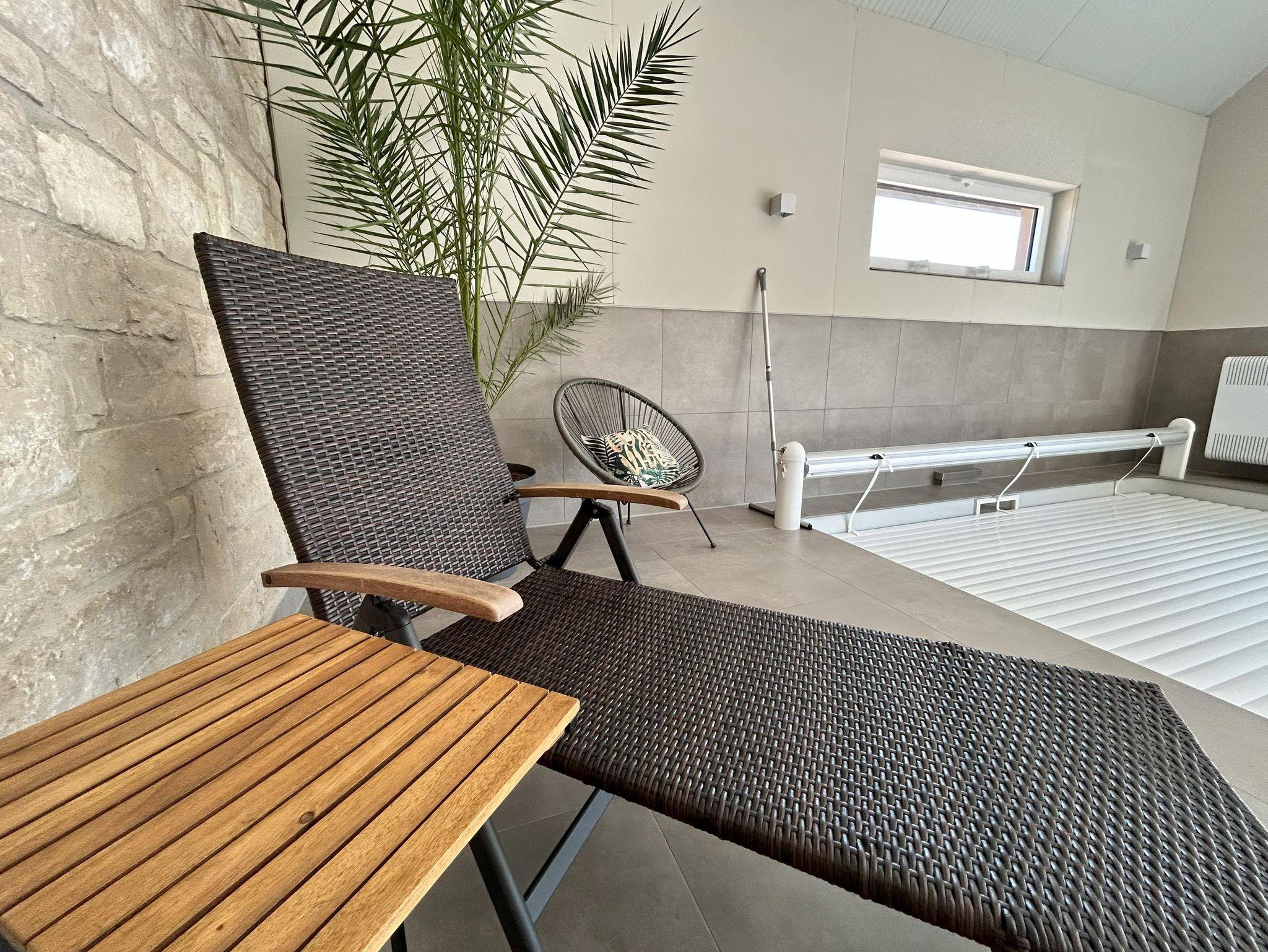 Hier befindet sich in unserer Wellnessscheune ein 8x3,75x1,55 tiefer, ganzjährig auf 28°C beheizter Salzwasserpool.